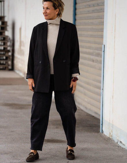 FRAUENSACHE – Stretchige Barrel Jeans – schwarz (H22)