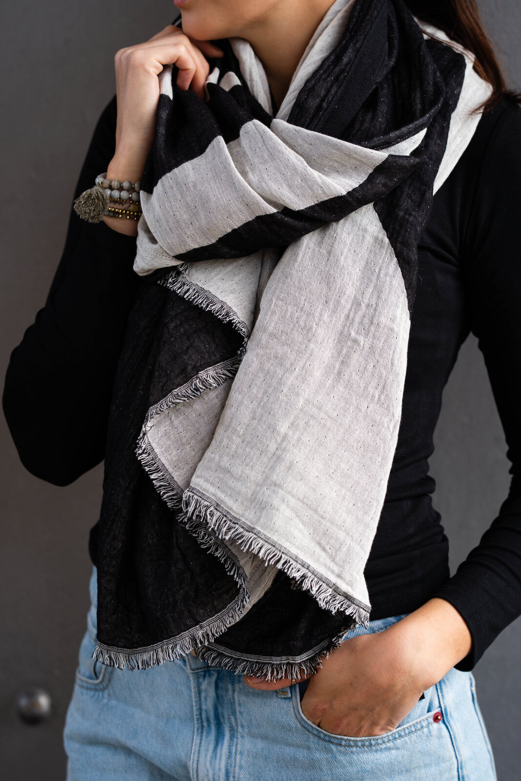 Ein luftiger Baumwollschal von 10DAYS, der durch seine lässige Eleganz überzeugt. Gefertigt aus leichter, atmungsaktiver Baumwolle, fällt er locker und angenehm weich – perfekt für jede Jahreszeit. Ein besonderes Highlight ist das großflächige Jacquard Logo „10DAYS“, das sich dezent, aber markant über den Schal zieht und ihm eine moderne, individuelle Note verleiht. Kleine Fransen an den Enden runden das Design ab. Ideal als stilvolles Accessoire für entspannte Casual-Looks oder als Statement-Piece zu minimalistischen Outfits.