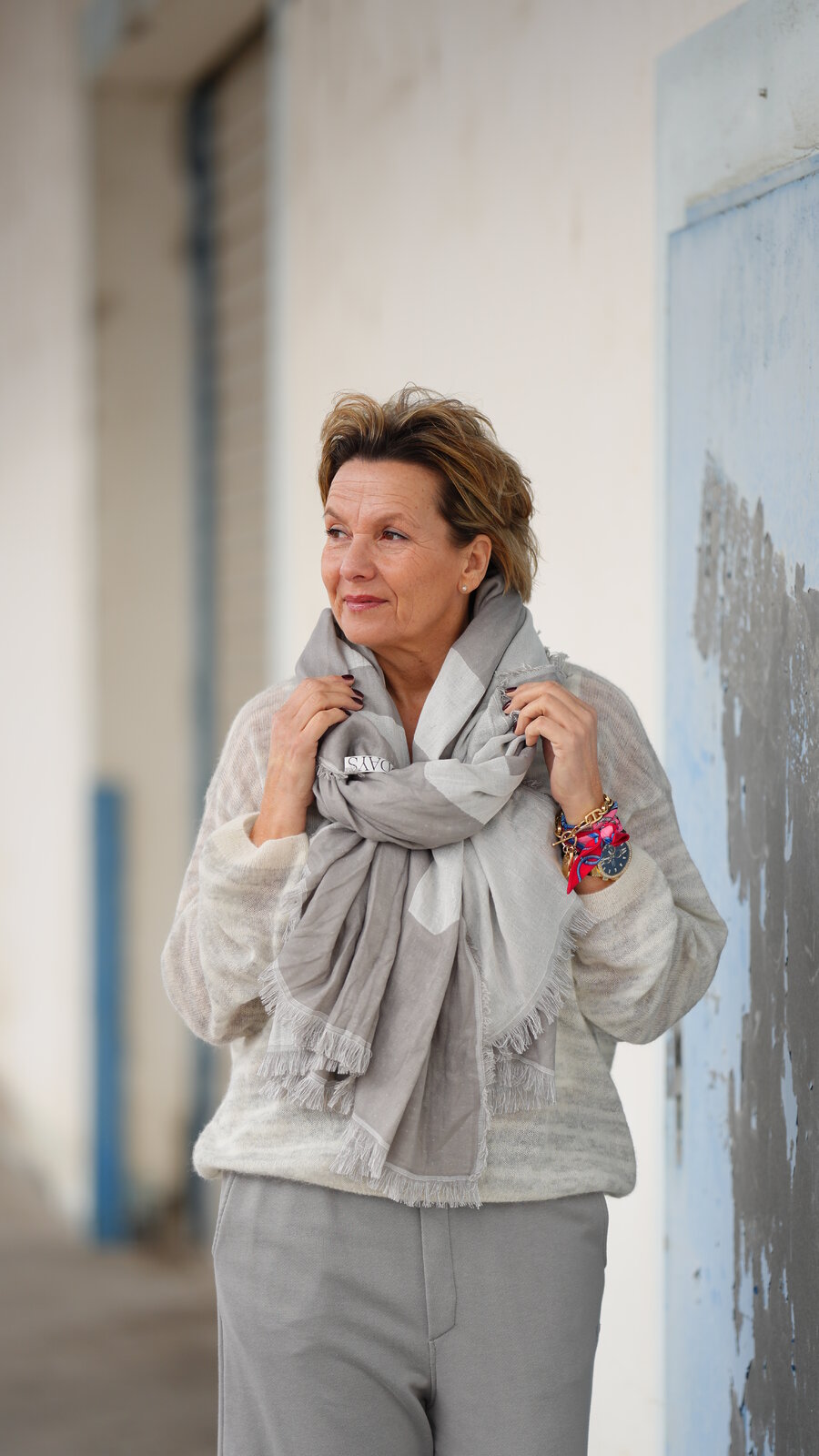 Ein luftiger Baumwollschal von 10DAYS, der durch seine lässige Eleganz überzeugt. Gefertigt aus leichter, atmungsaktiver Baumwolle, fällt er locker und angenehm weich – perfekt für jede Jahreszeit. Ein besonderes Highlight ist das großflächige Jacquard Logo „10DAYS“, das sich dezent, aber markant über den Schal zieht und ihm eine moderne, individuelle Note verleiht. Kleine Fransen an den Enden runden das Design ab. Ideal als stilvolles Accessoire für entspannte Casual-Looks oder als Statement-Piece zu minimalistischen Outfits.