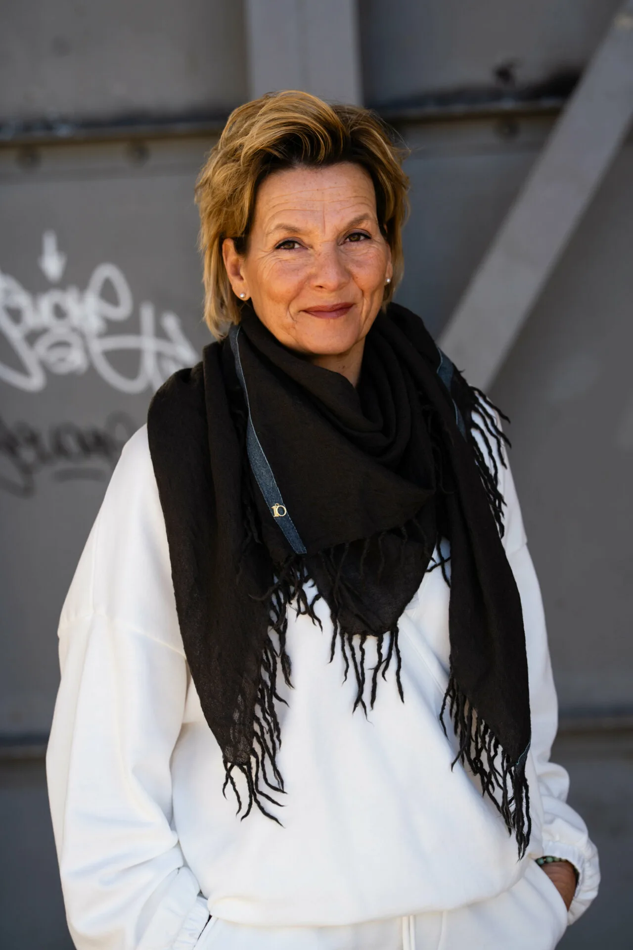 - einer in der Ecke des Schals applizierten Monogramm-Perle