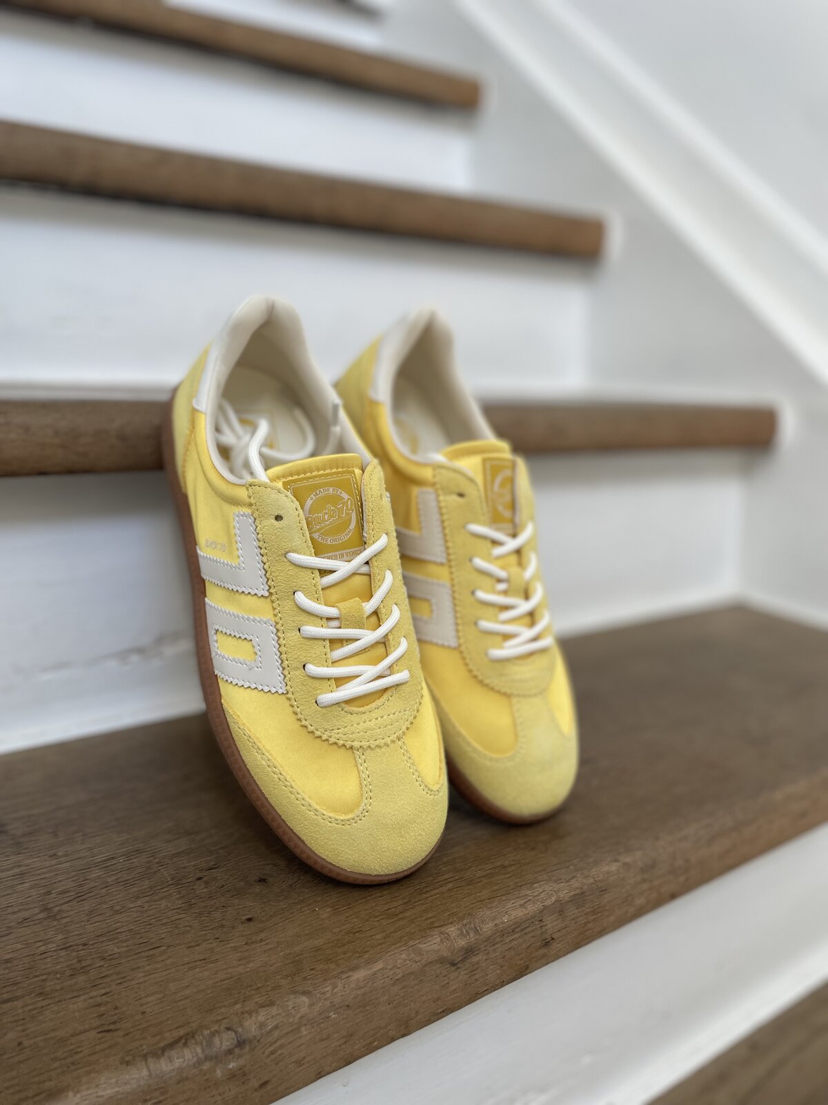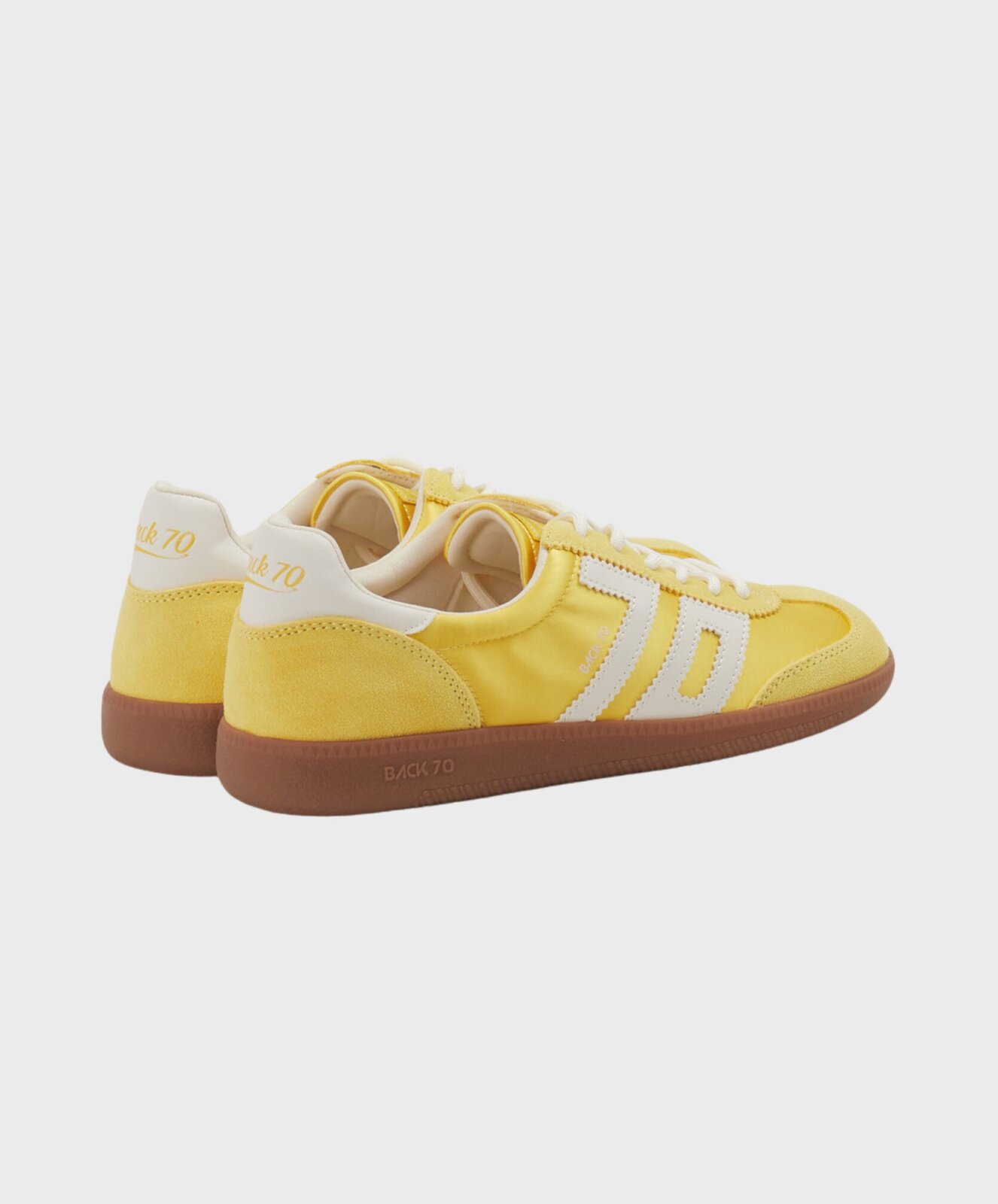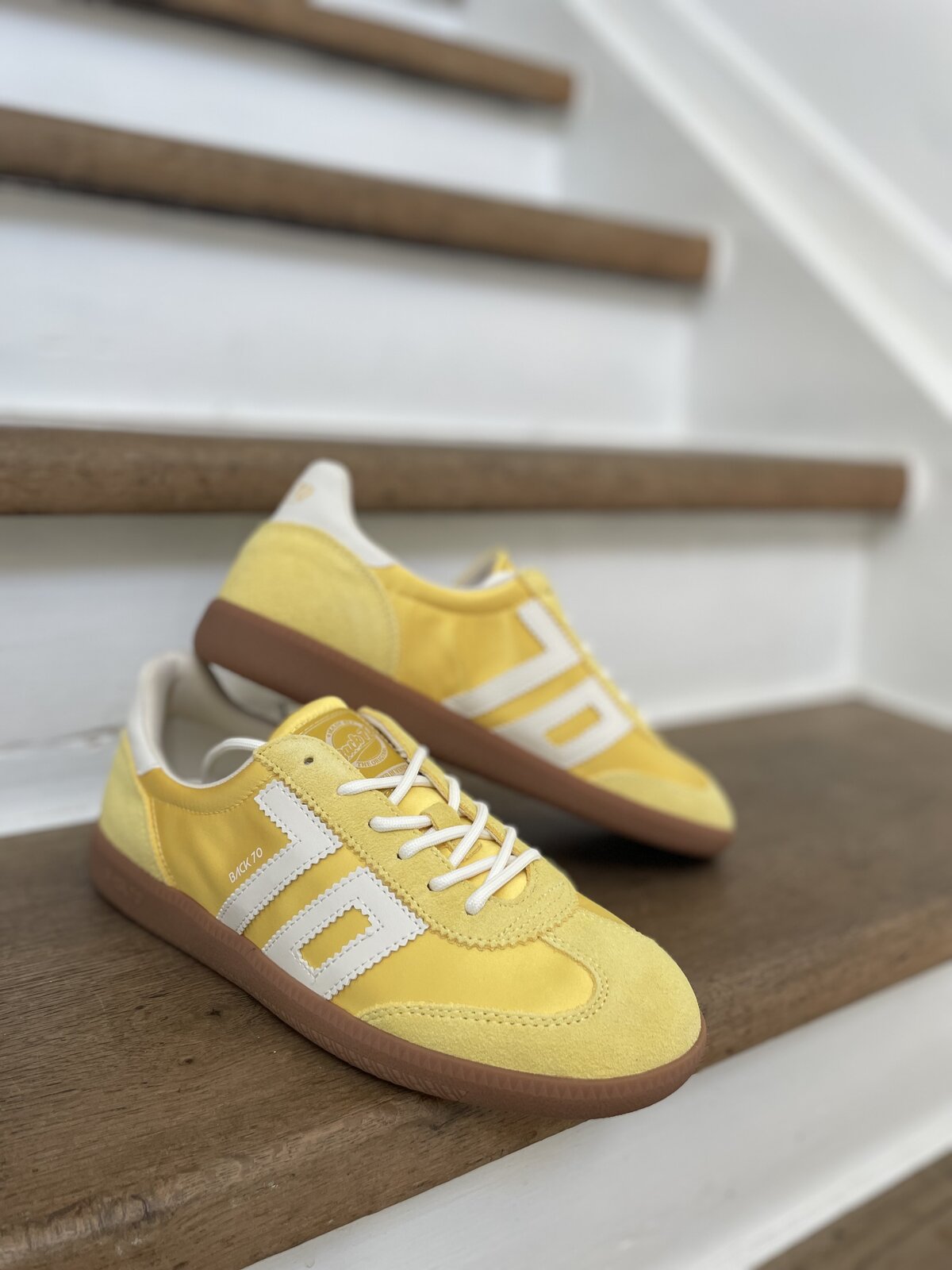 Dieser coole Sneaker von BACK70 zieht alle Blicke auf sich – mit einer edlen Satin-Optik in satin banana, die deinem Outfit eine luxuriöse Note verleiht. Die Zunge und der Kragen sind samtweich gepolstert, sodass du jeden Schritt mit einem sanften, komfortablen Gefühl genießt. Im inneren befindet sich eine bequeme Memory-Schaum-Einlegesohle, die sich perfekt an deine Fußform anschmiegt und dir einen unvergleichlichen Halt schenkt. Ob Alltag oder besondere Anlässe – dieser Sneaker verbindet Stil mit Tragekomfort und begleitet dich mit Leichtigkeit durch den Tag.