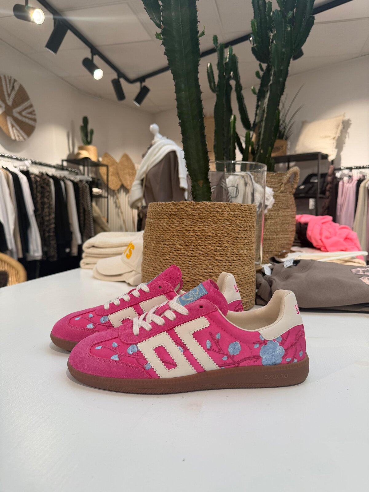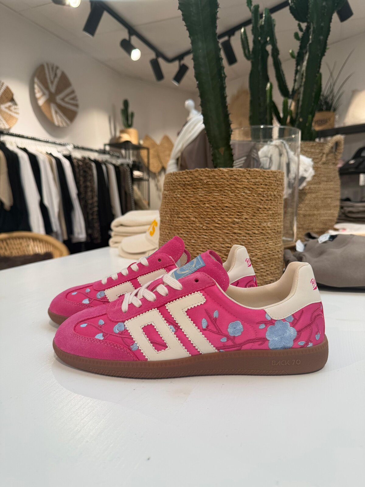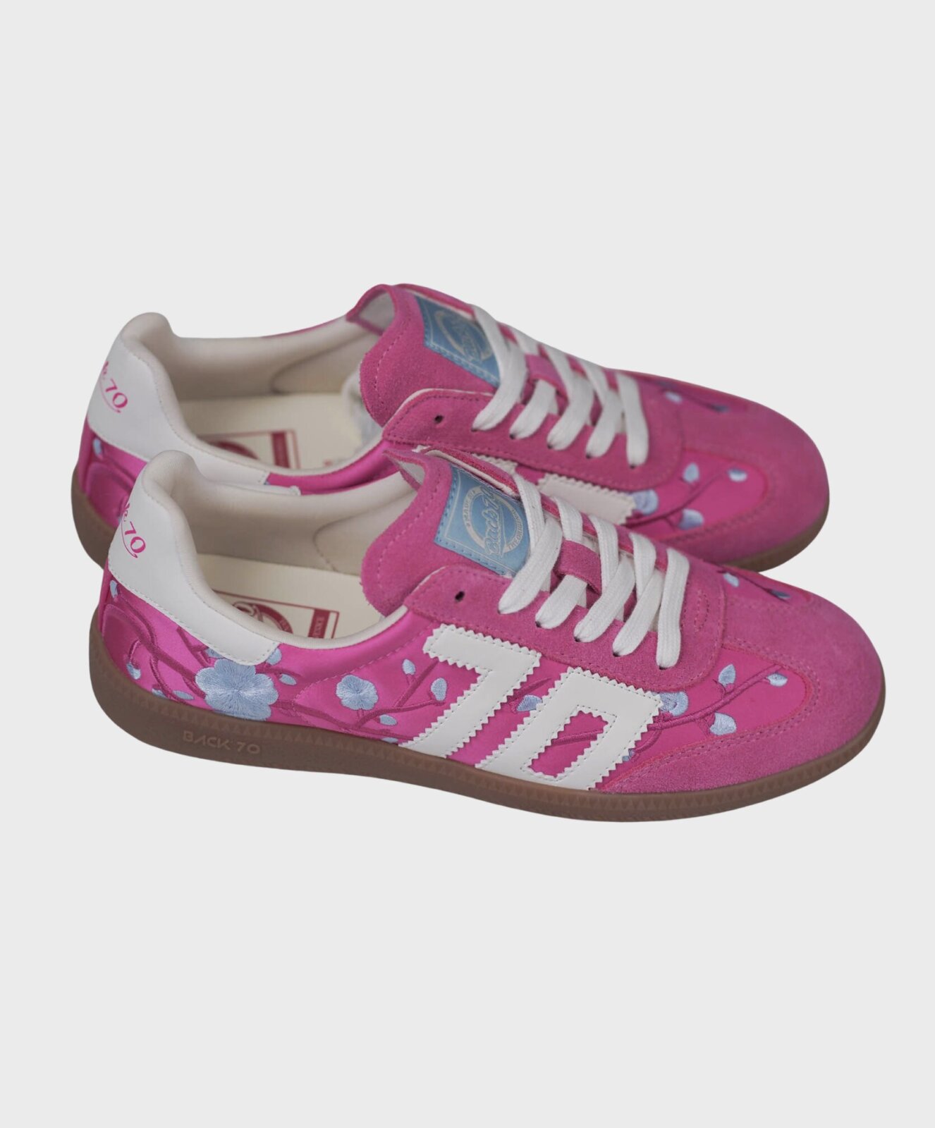 Dieser coole Sneaker von BACK70 zieht alle Blicke auf sich – mit einer edlen Satin-Optik in satin flower fuxia , die deinem Outfit eine luxuriöse Note verleiht. Farbig aufgestickte Blütendetails setzen stilvolle Akzente. Die Zunge und der Kragen sind samtweich gepolstert, sodass du jeden Schritt mit einem sanften, komfortablen Gefühl genießt. Im inneren befindet sich eine bequeme Memory-Schaum-Einlegesohle, die sich perfekt an deine Fußform anschmiegt und dir einen unvergleichlichen Halt schenkt. Ob Alltag oder besondere Anlässe – dieser Sneaker verbindet Stil mit Tragekomfort und begleitet dich mit Leichtigkeit durch den Tag.