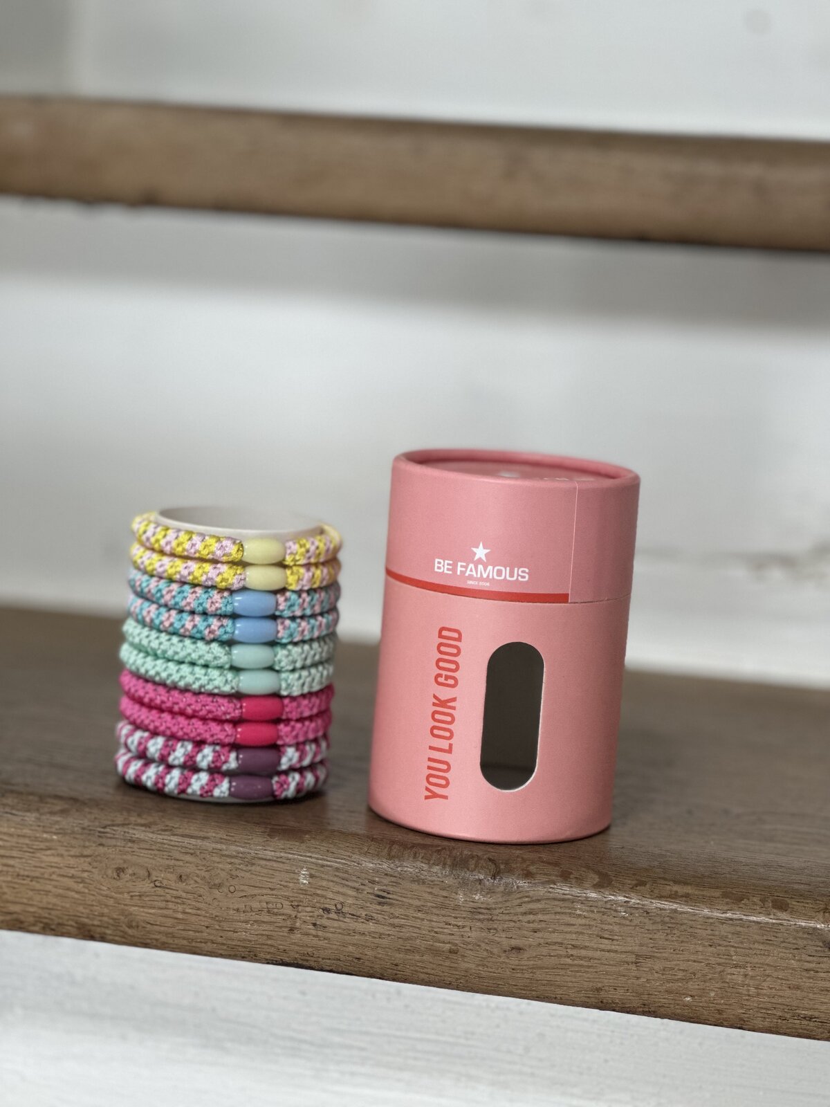 Vielseitig & Stylisch – Für Haare und Handgelenk! Das Set von BE FAMOUS enthält 10 elastische Haarbänder, die schonend für das Haar sind und sich perfekt für alle Haartypen und -längen eignen. Sie bieten starken Halt, ohne zu ziepen oder das Haar zu beschädigen – ideal für Alltag, Sport oder elegante Frisuren. Die Haarbänder lassen sich auch als modisches Armband tragen – praktisch und stylisch zugleich!