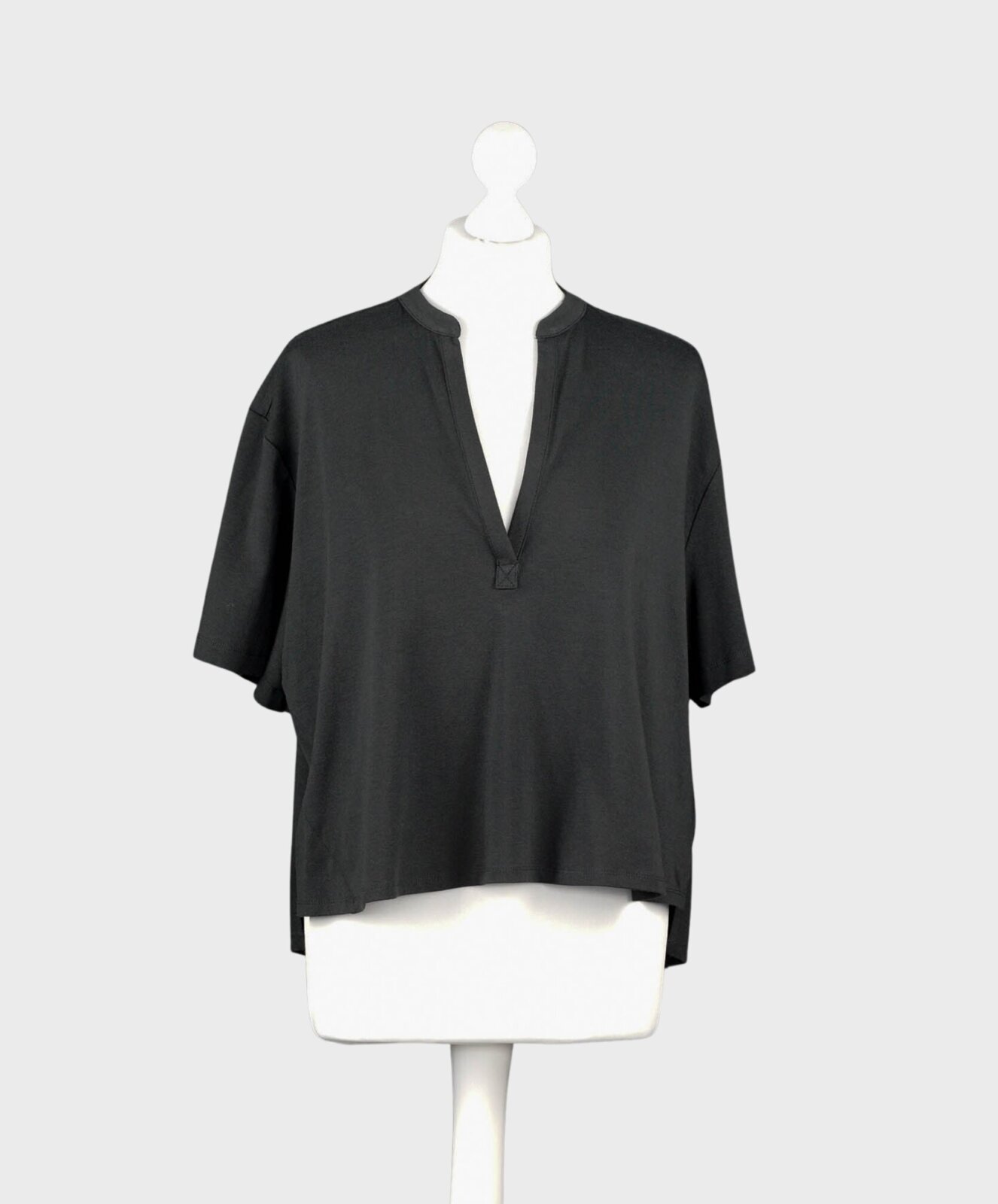 - zarter Stehkragen mit schmaler Deko-Leiste entlang des tiefen V-Ausschnitts