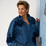 - Rechte Gesäßtasche in veganem, pinken Leder mit Logo Druck