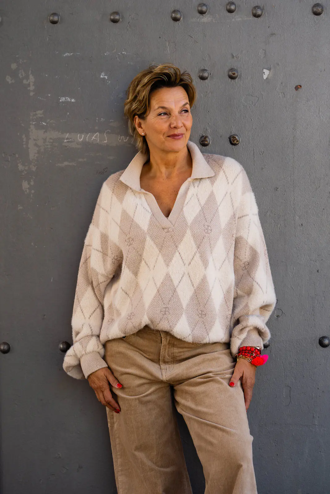 - tiefer, schmaler V- Ausschnitt mit Leiste