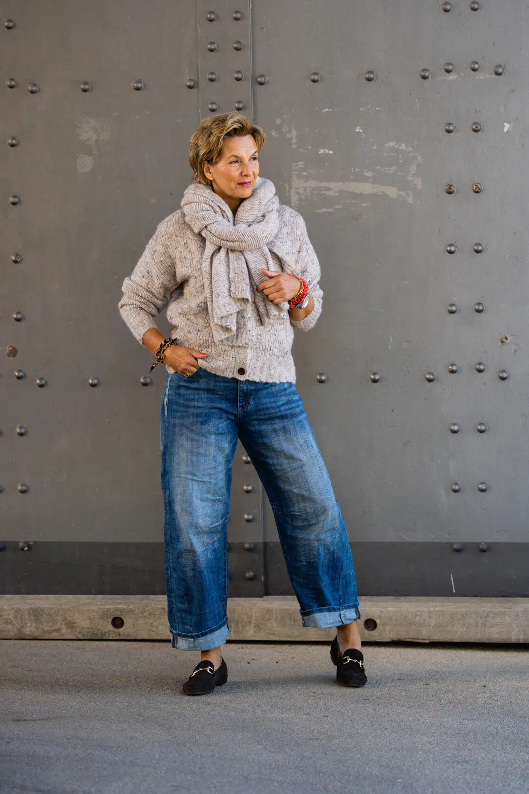 - weites Bein mit Naht Details am Knie