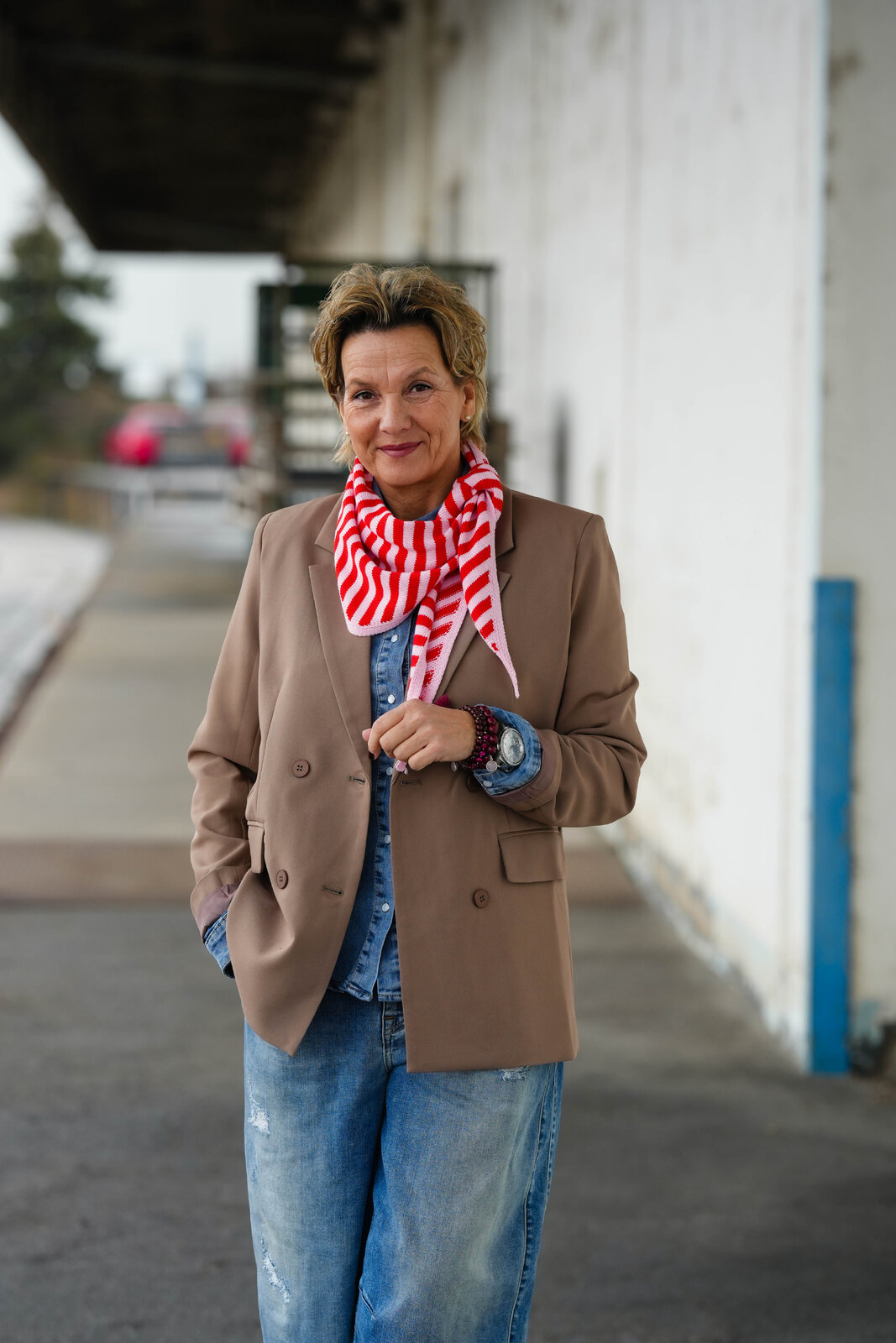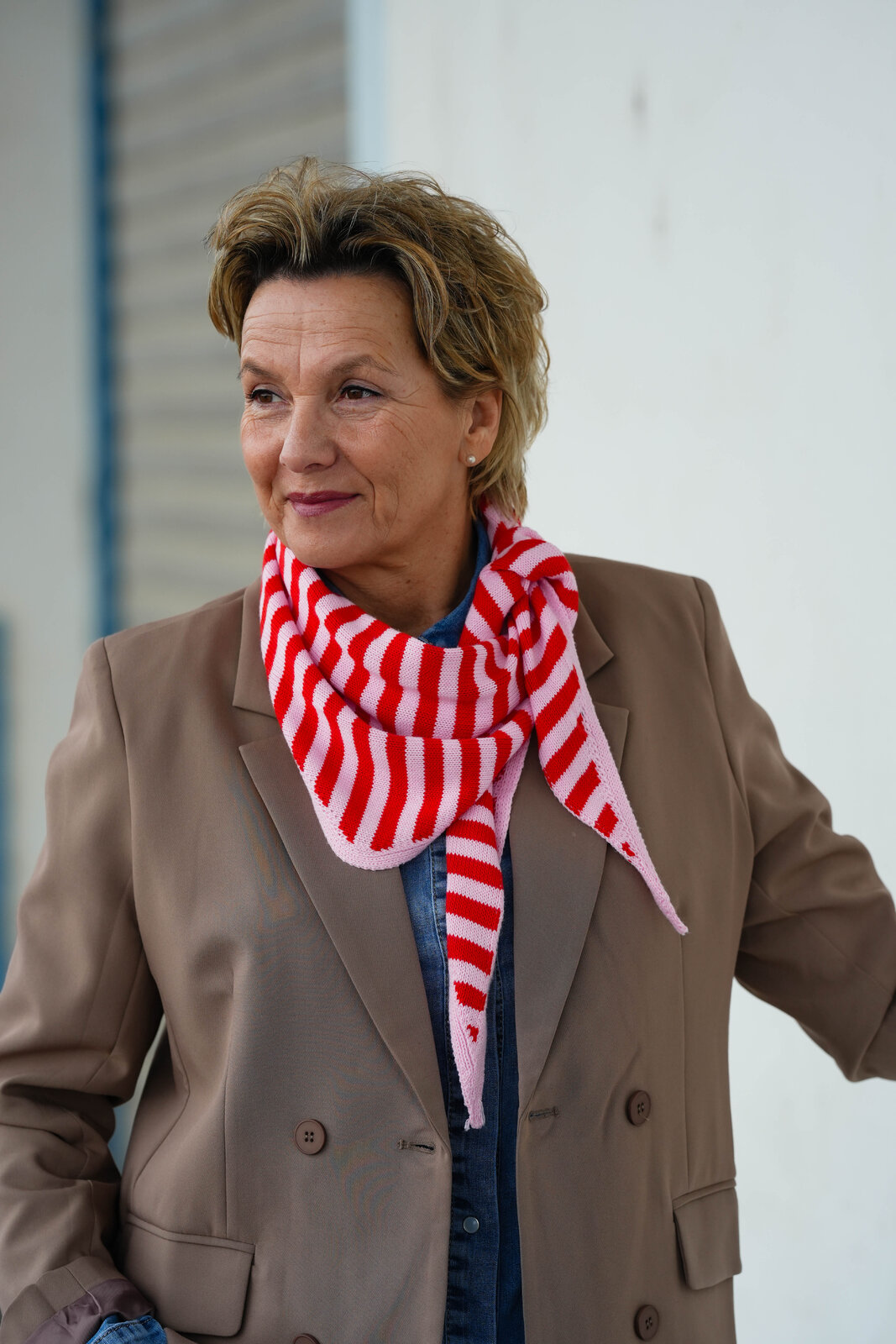 Dieser Schal in modischer Streifen-Optik ist ein stilvolles Accessoire für jeden Look. Die klassische Dreiecksform ermöglicht vielseitige Tragevarianten und macht den Schal zum perfekten Begleiter für Alltag und Freizeit. Gefertigt aus feinem Strick, bietet er ein angenehmes Tragegefühl und eine leichte, hochwertige Optik. Das Rippenstrickbündchen fasst den Schal sauber ein und verleiht ihm einen edlen Abschluss. Die gestreifte Optik setzt modische Akzente und lässt sich ideal kombinieren. Ein zeitloses Accessoire, das jedes Outfit aufwertet.
