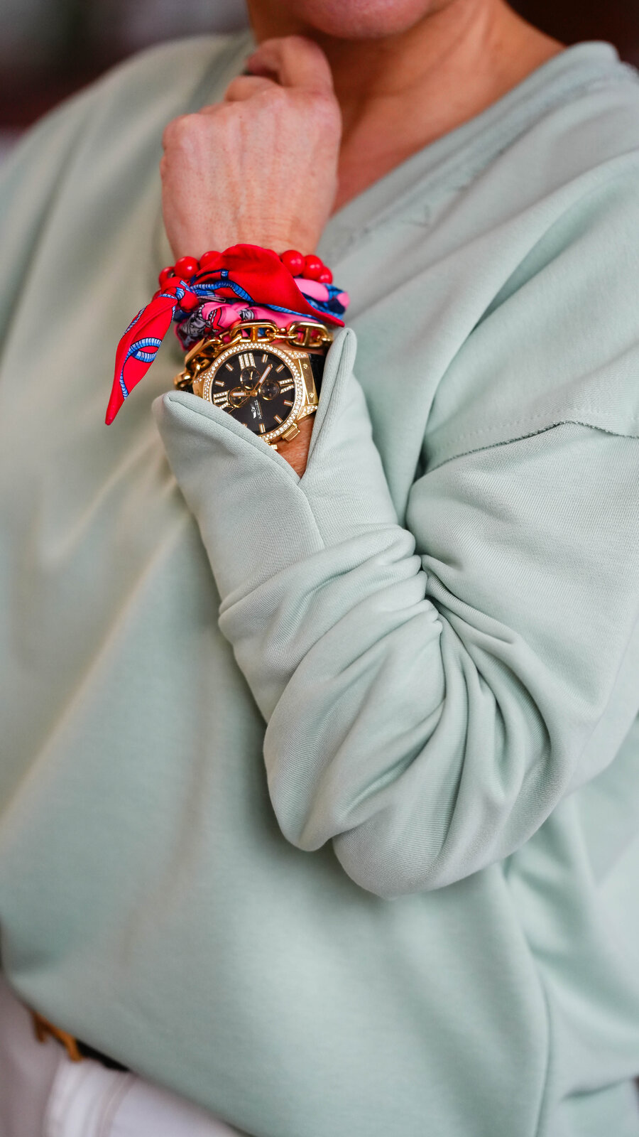 - das Tuch lässt sich auch stylisch am Handgelenk tragen