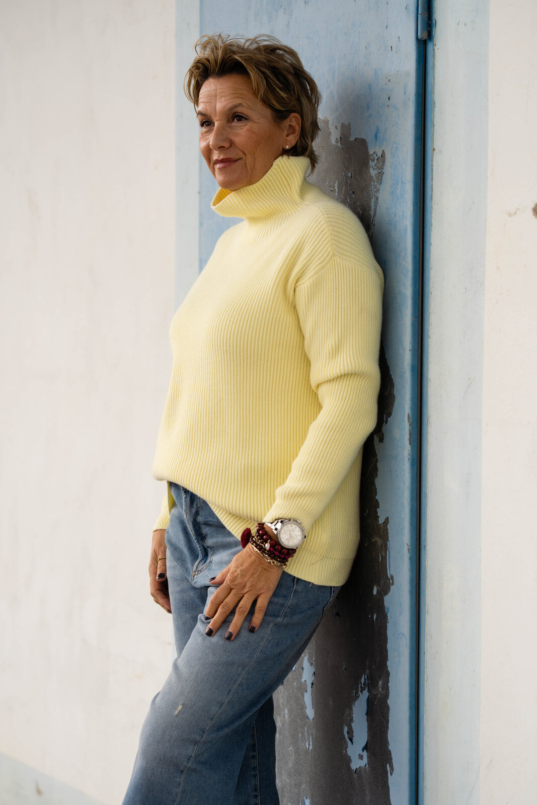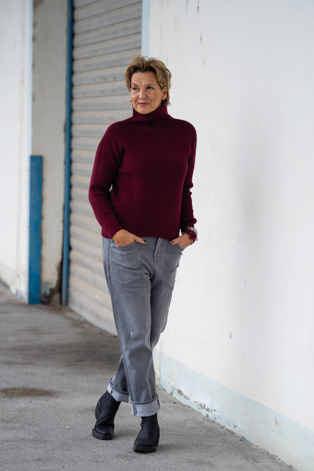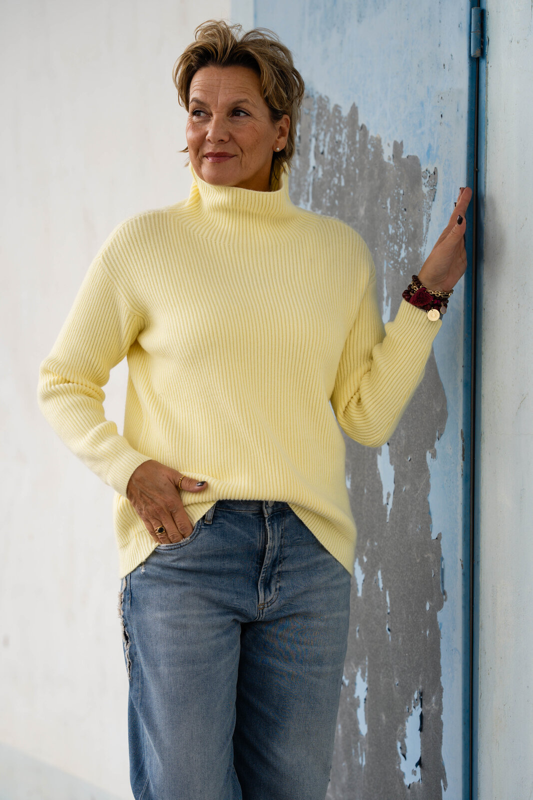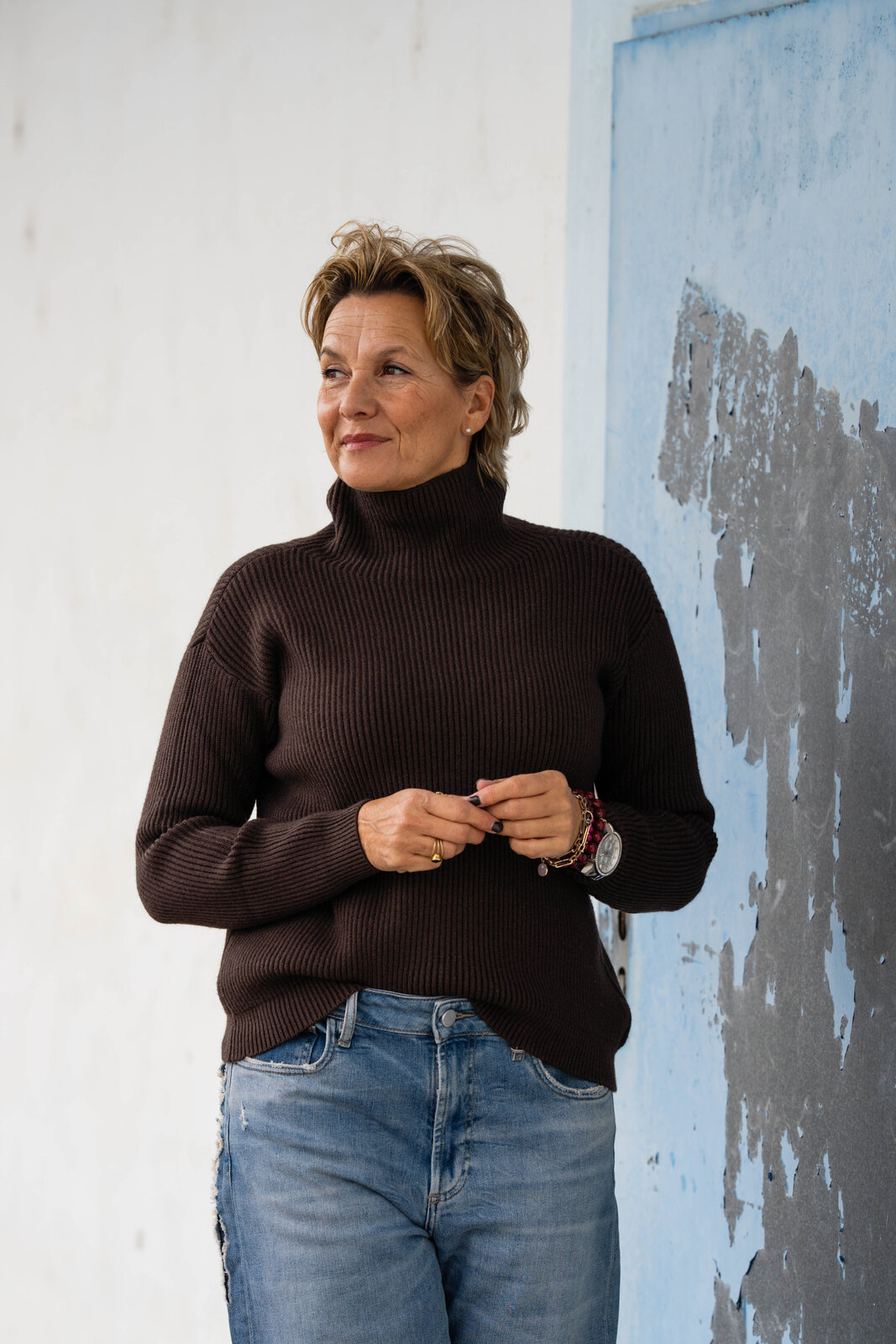 Wenn du es liebst, dich an kühlen Tagen einzukuscheln, wird dieser Strickpullover dein neuer Lieblingsbegleiter. Das grobe Strickmuster verleiht ihm einen charmant natürlichen Look, während der hohe Stehkragen dich wohlig warm hält. Mit seinem geraden Schnitt fällt er locker und bequem – perfekt, um dich einfach rundum wohlzufühlen. Kombiniere ihn ganz nach deinem Stil, ob mit Jeans für einen entspannten Tag oder elegant mit Rock und Stiefeln – dieser Pullover macht jedes Outfit besonders.