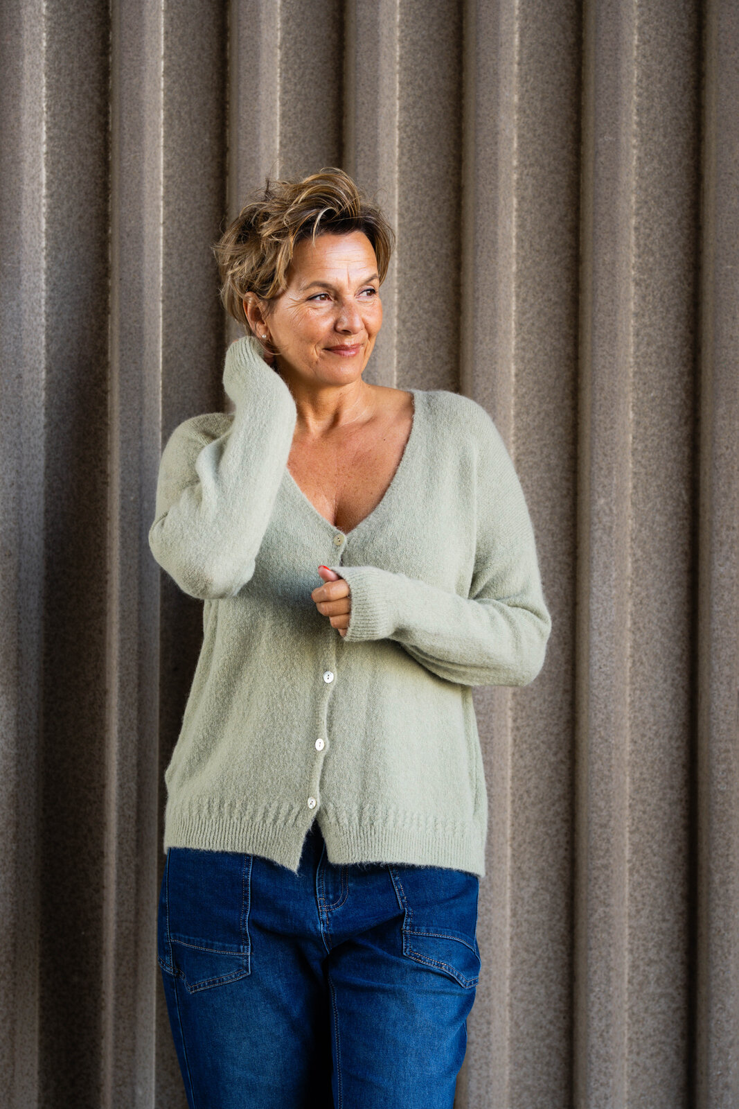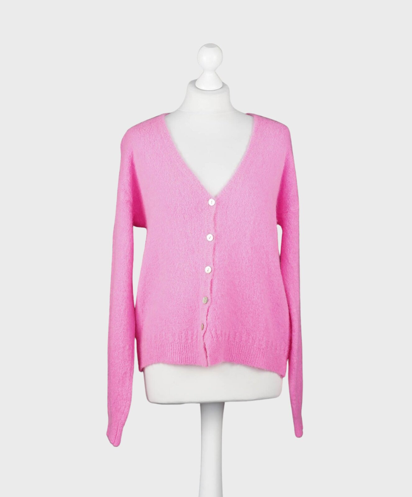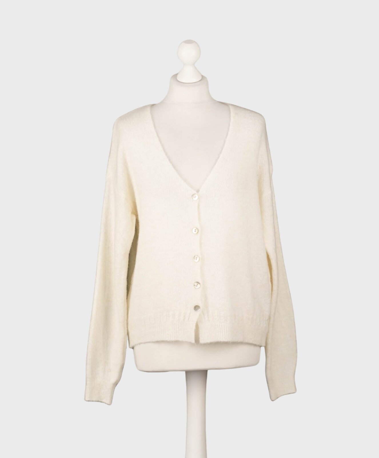 - durchgehende Knopfleiste mit schimmernden Knöpfen