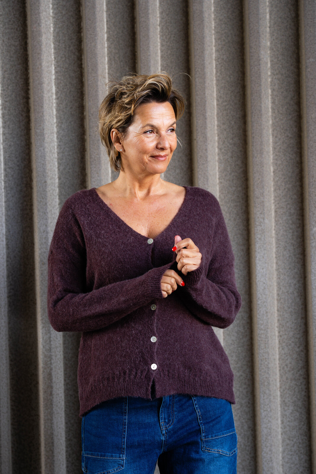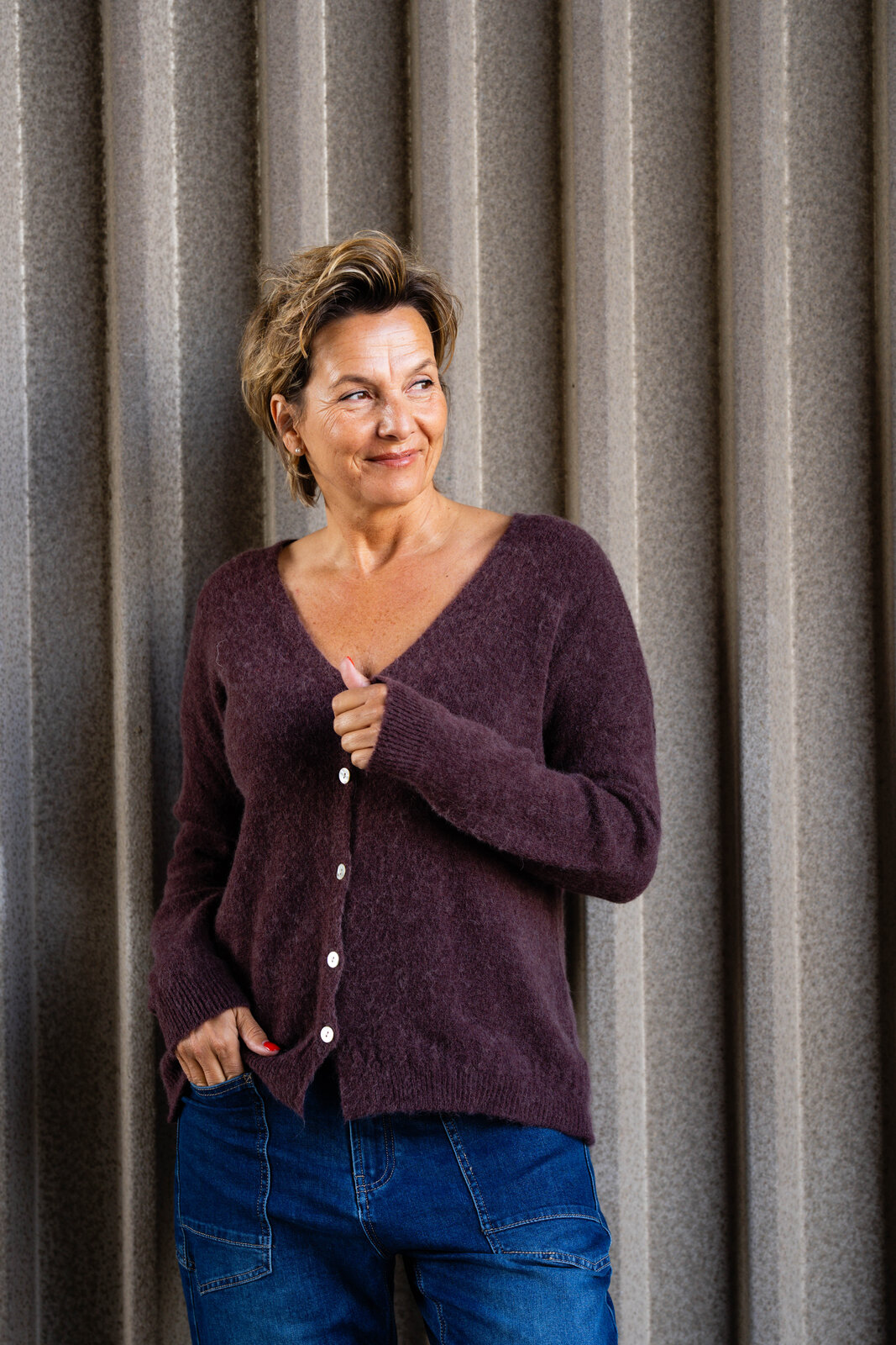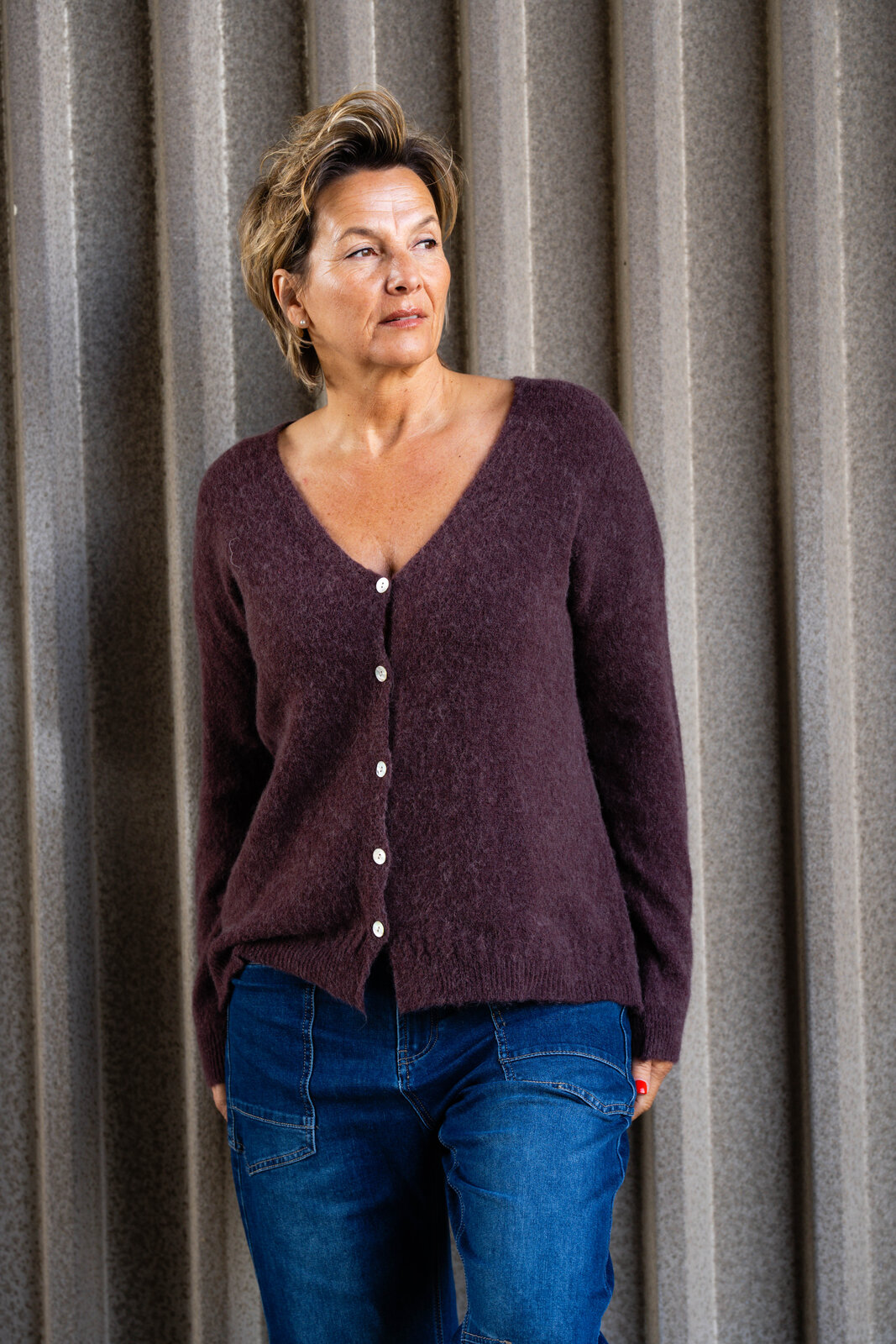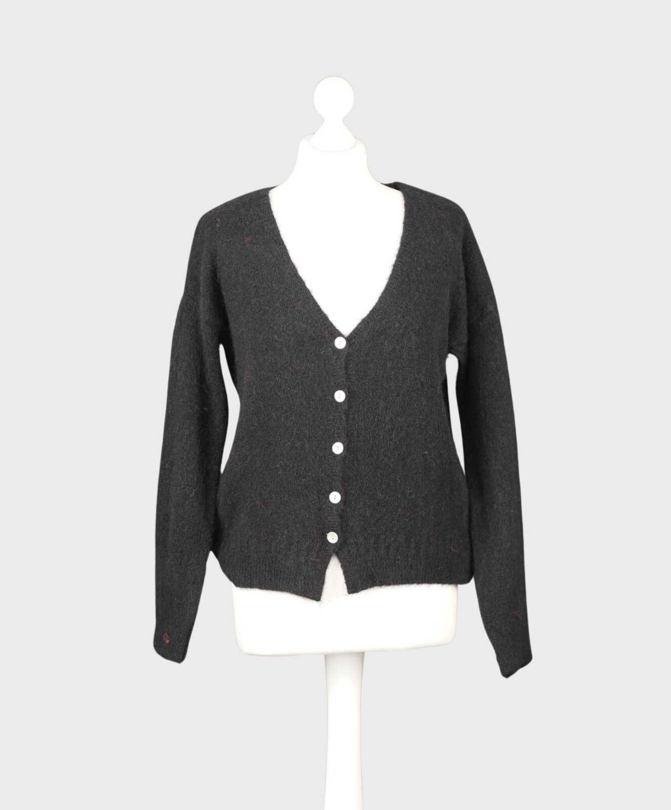 - durchgehende Knopfleiste mit schimmernden Knöpfen