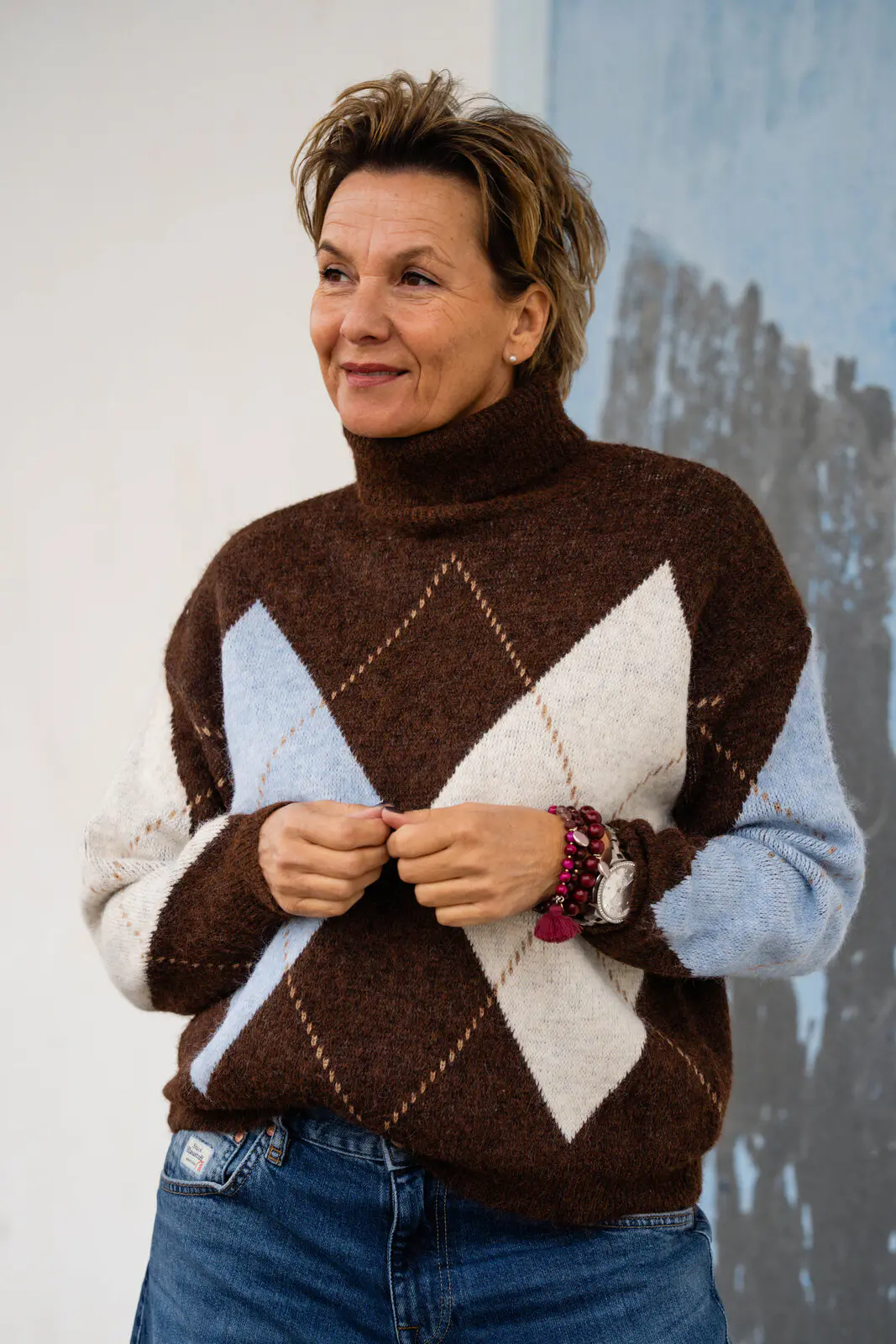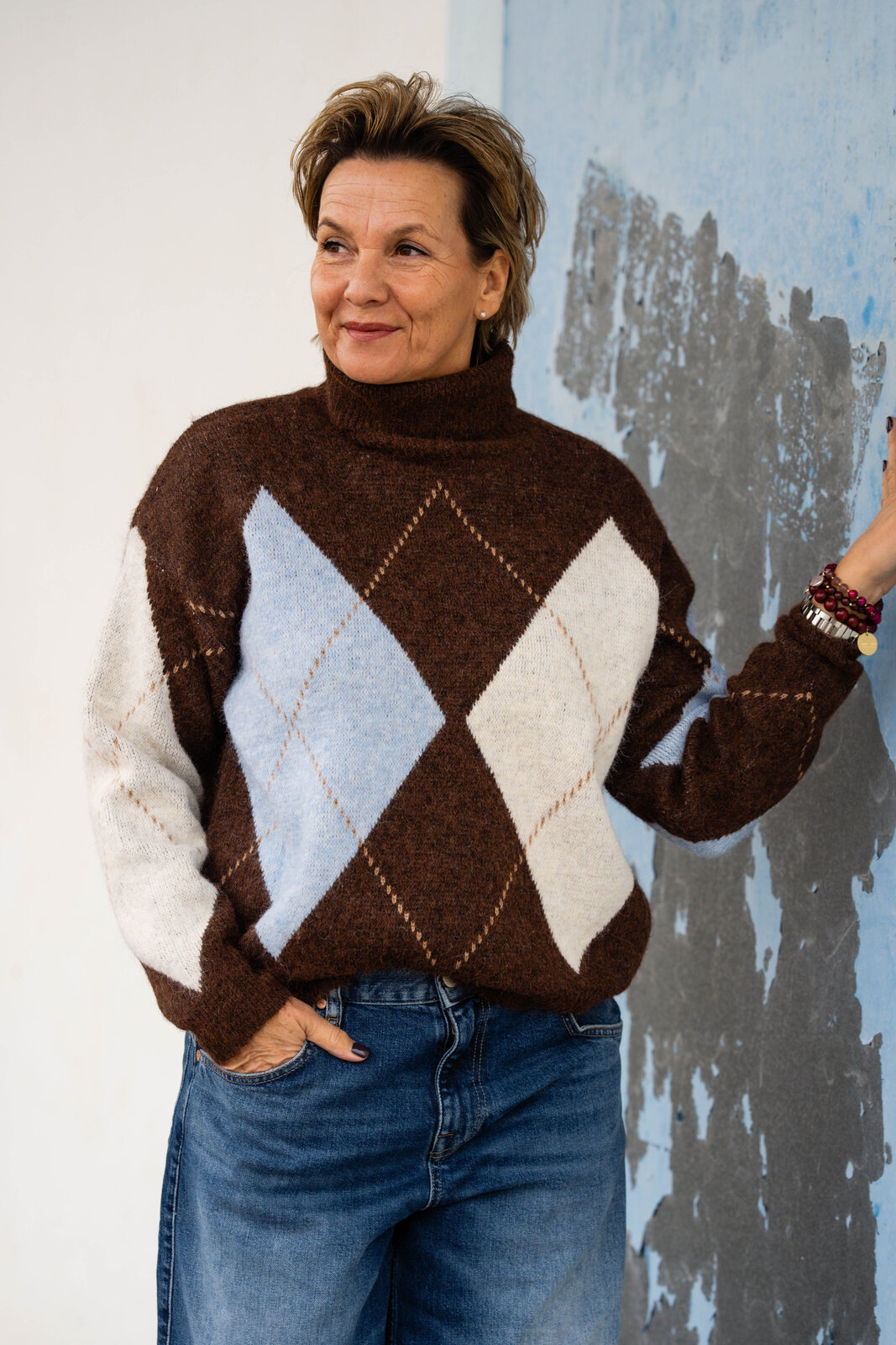 - Argyle-Muster auf der Vorderseite und Ärmel