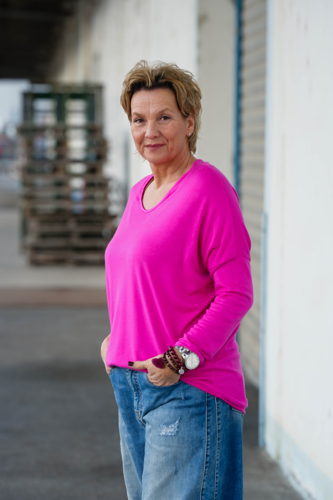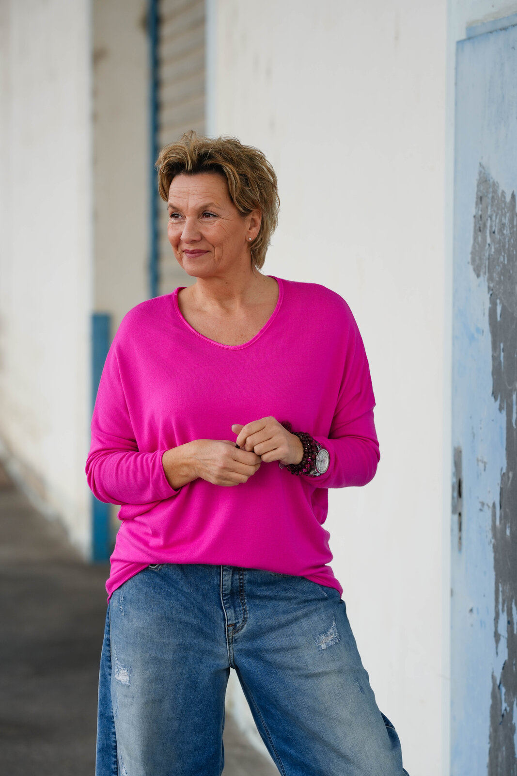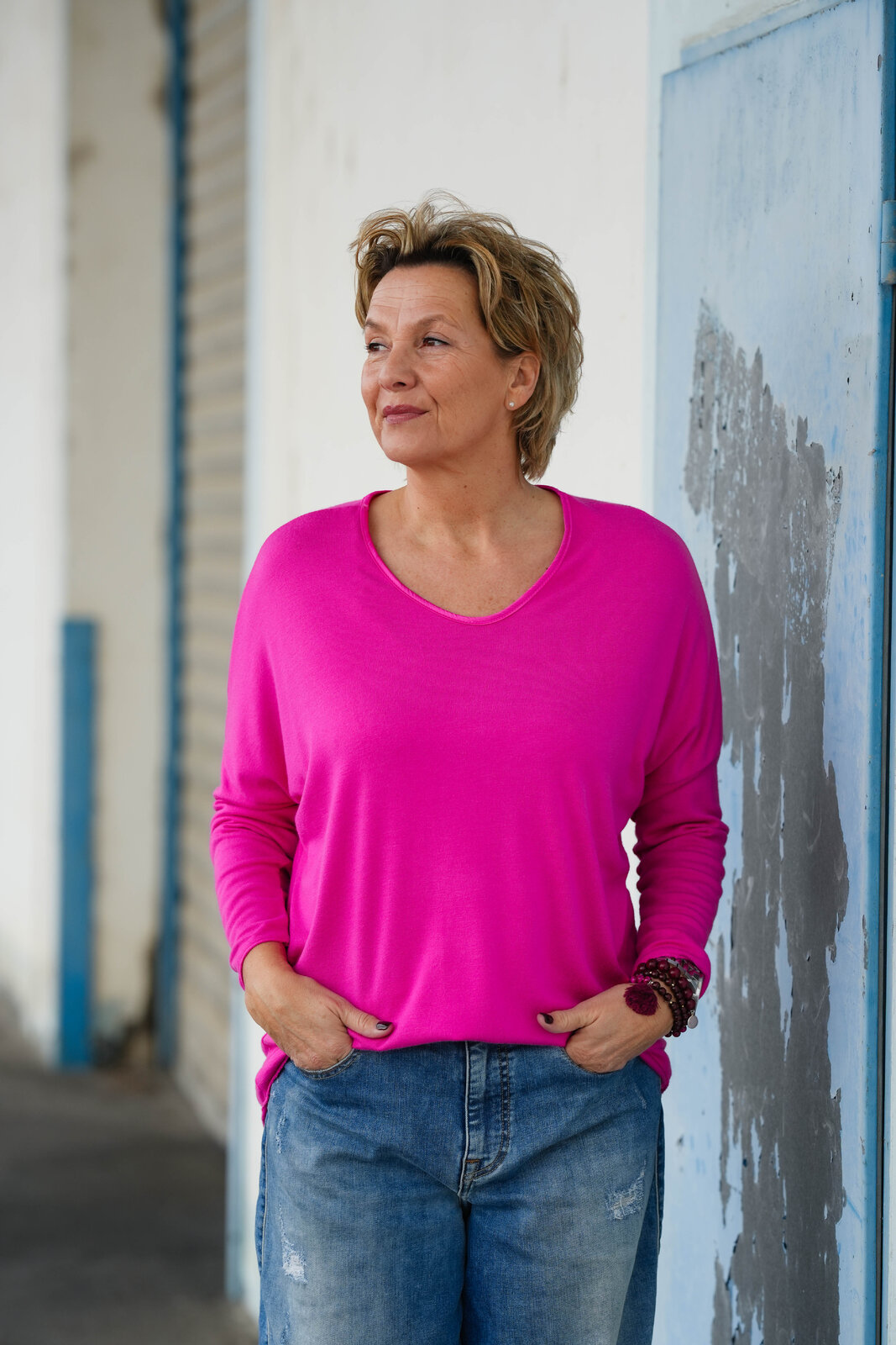 - das Shirt wird vom Schnitt her nach unten schmäler