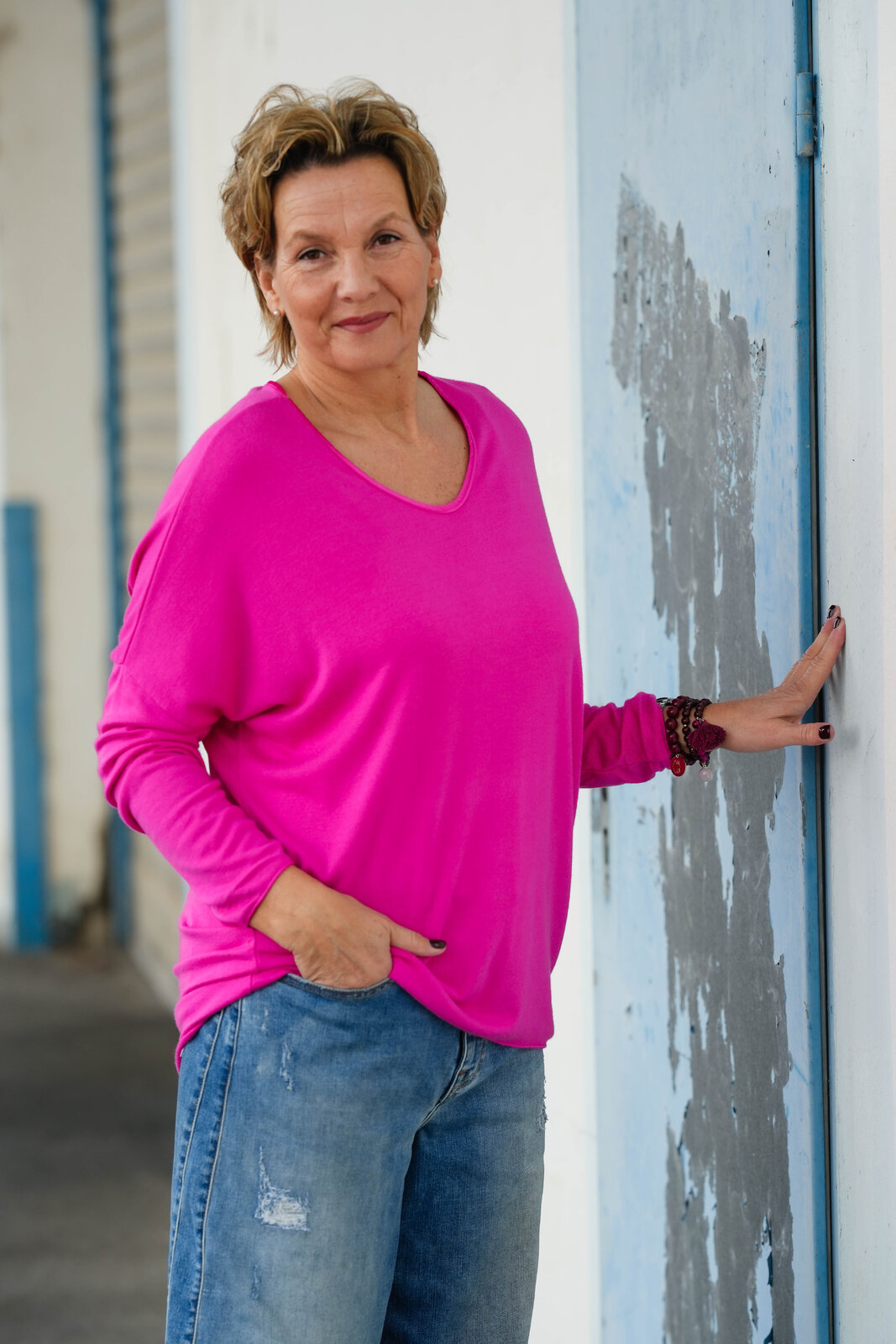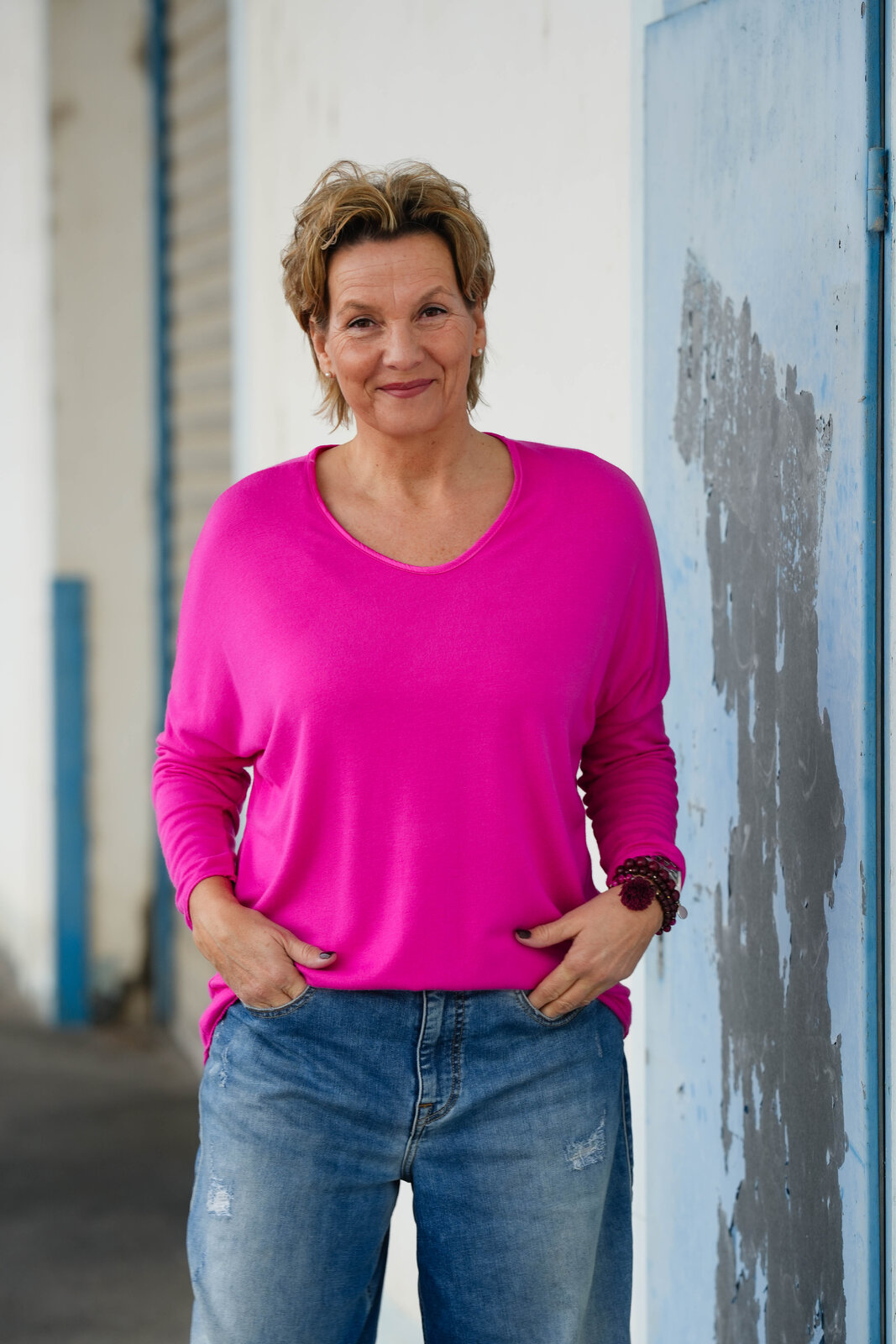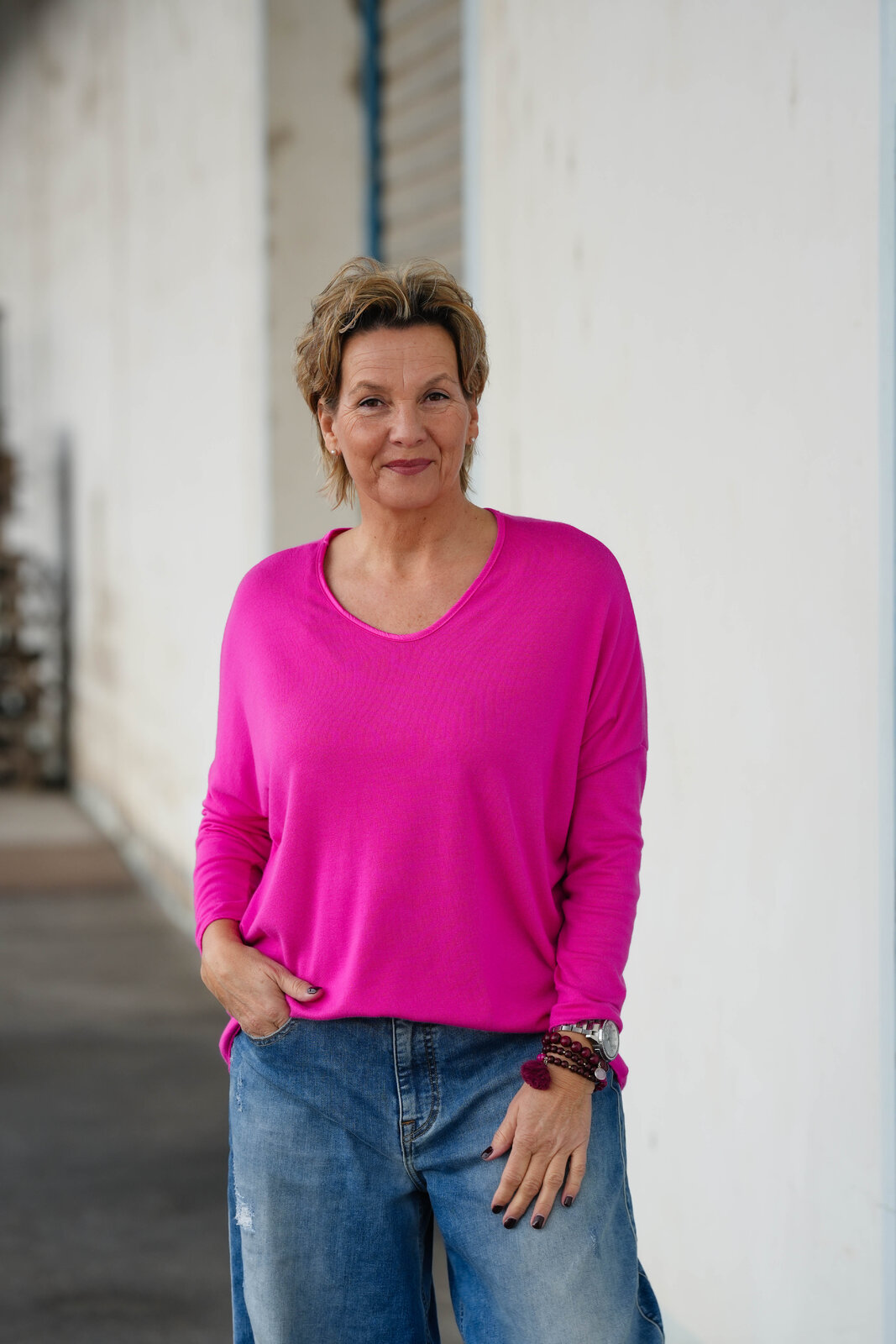 - das Shirt wird vom Schnitt her nach unten schmäler