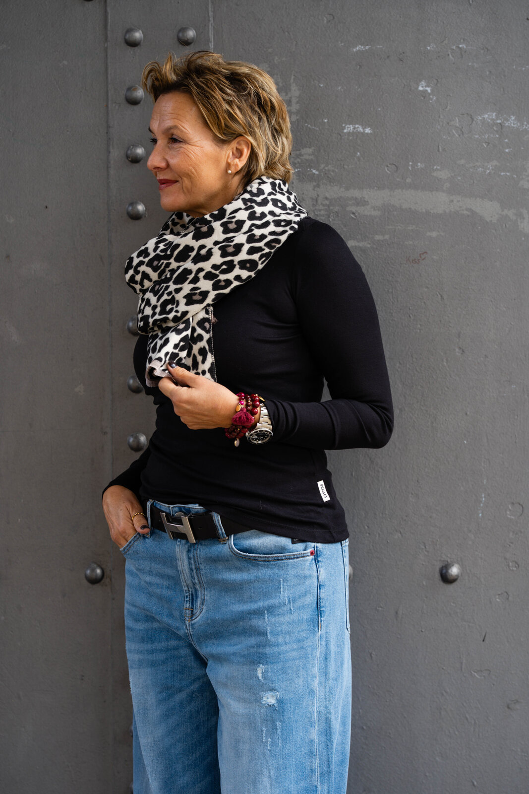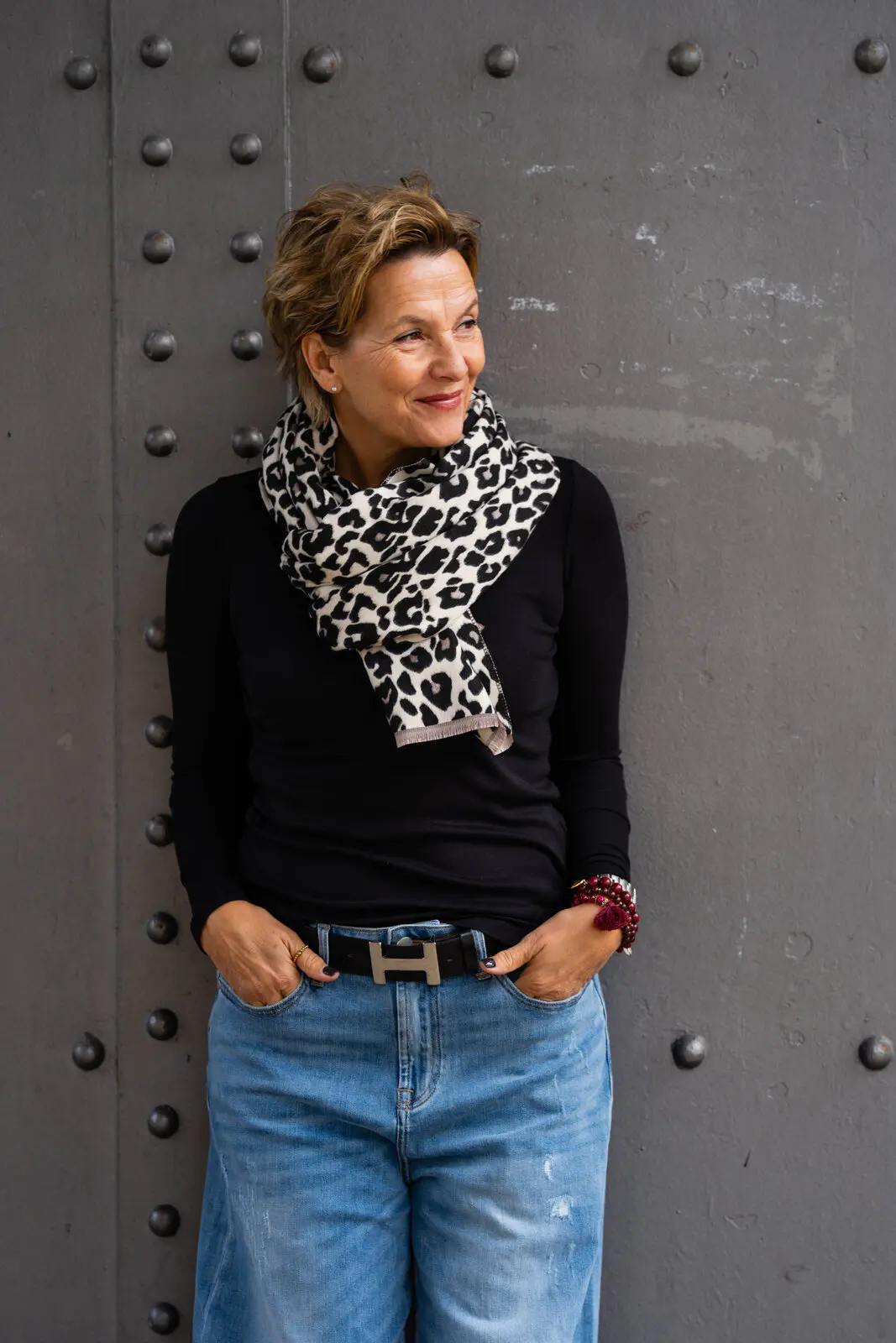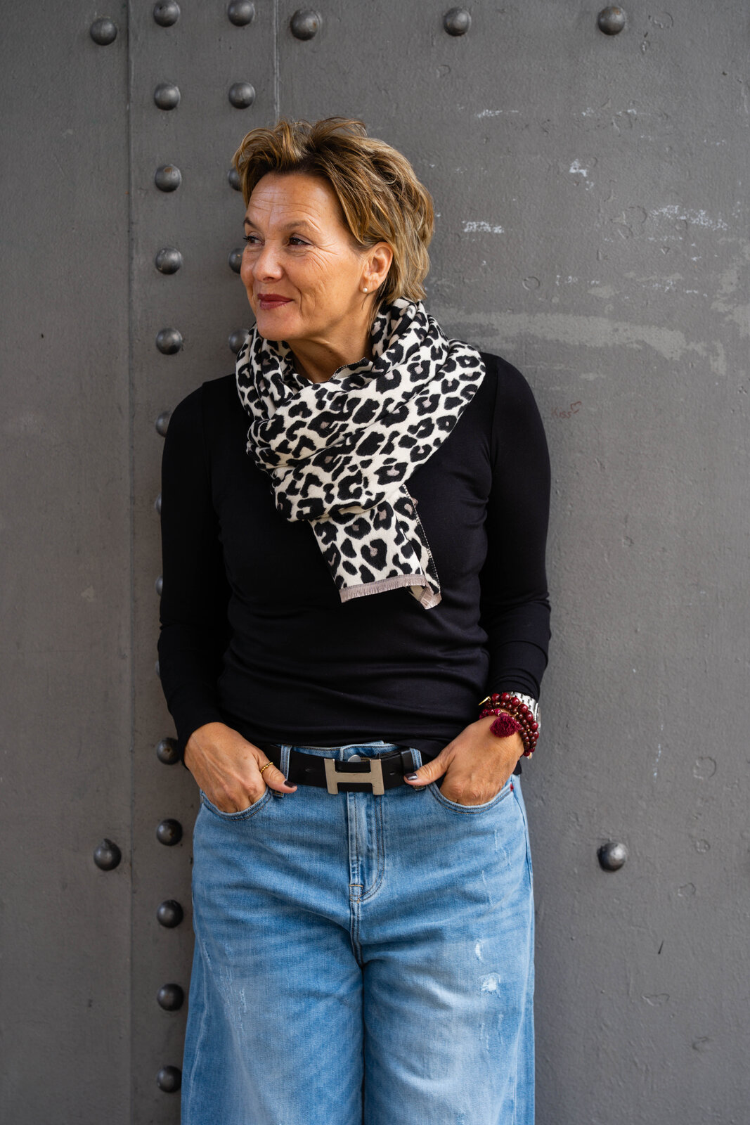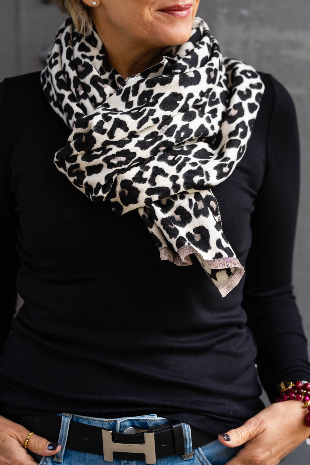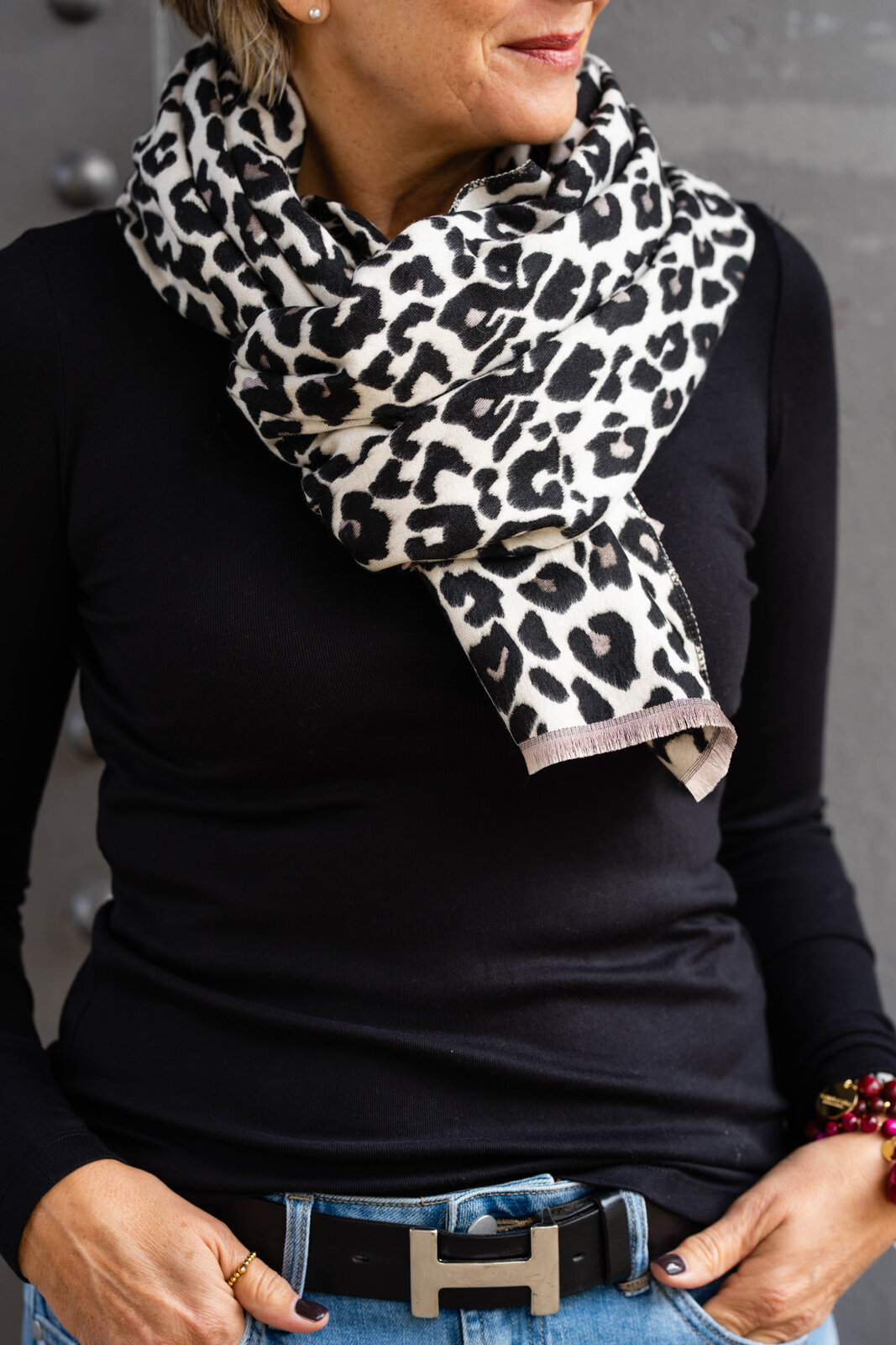 - Leoprint auf der einen Seite mit schwarz /taupe auf der anderen Seite beige/grau