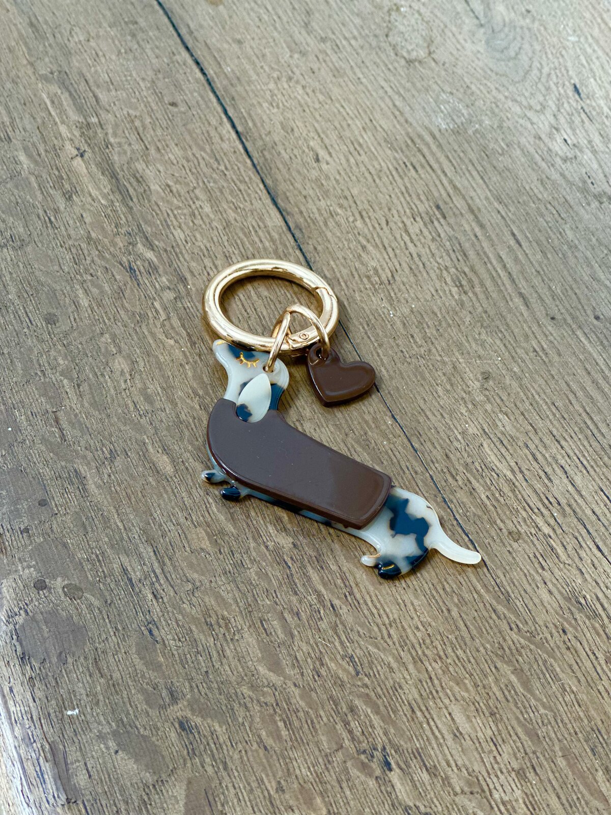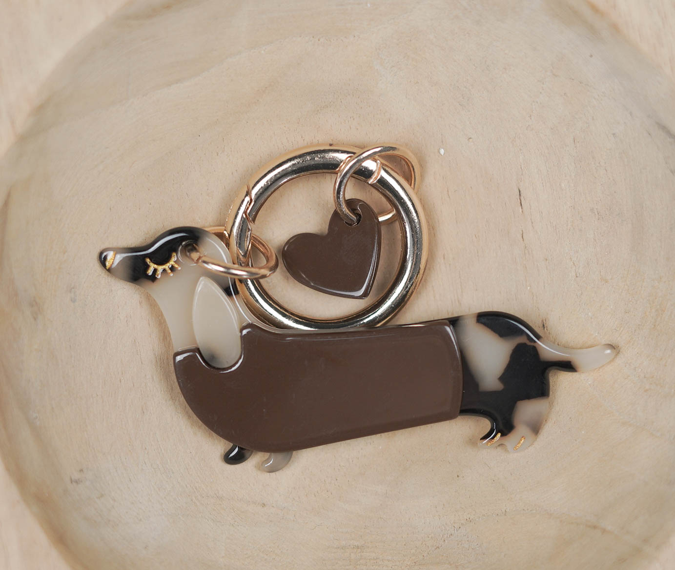 - braun/beiger Dackel Anhänger mit braunem kleinem Herz