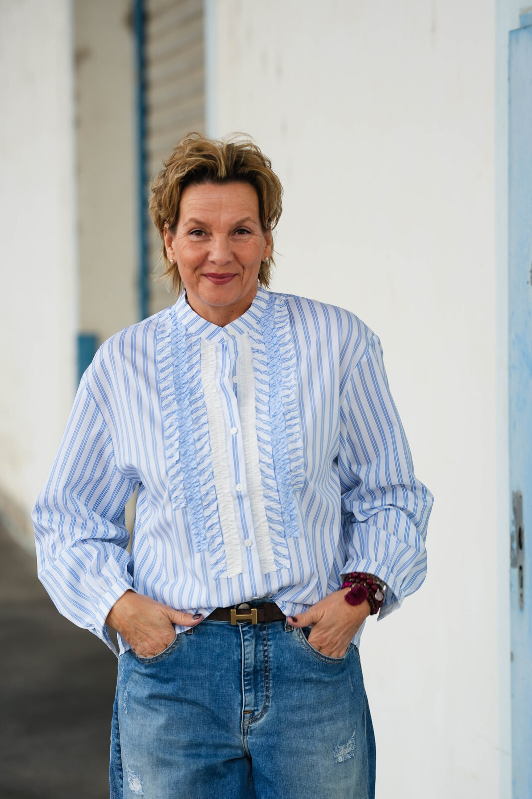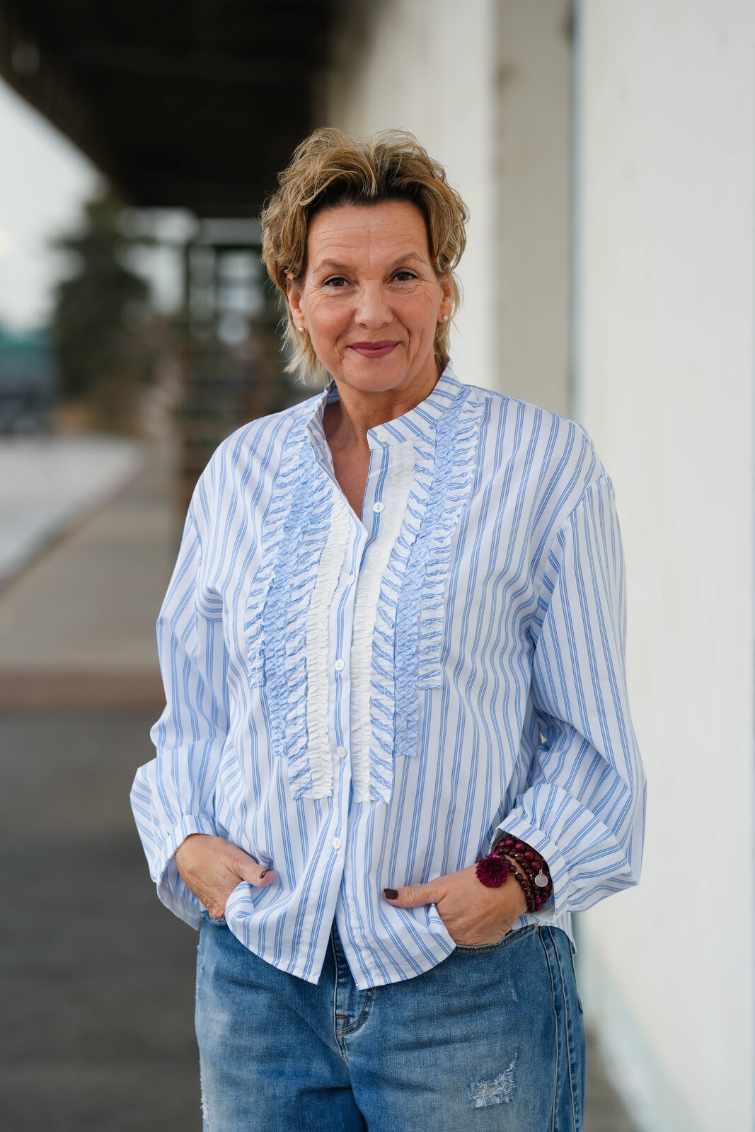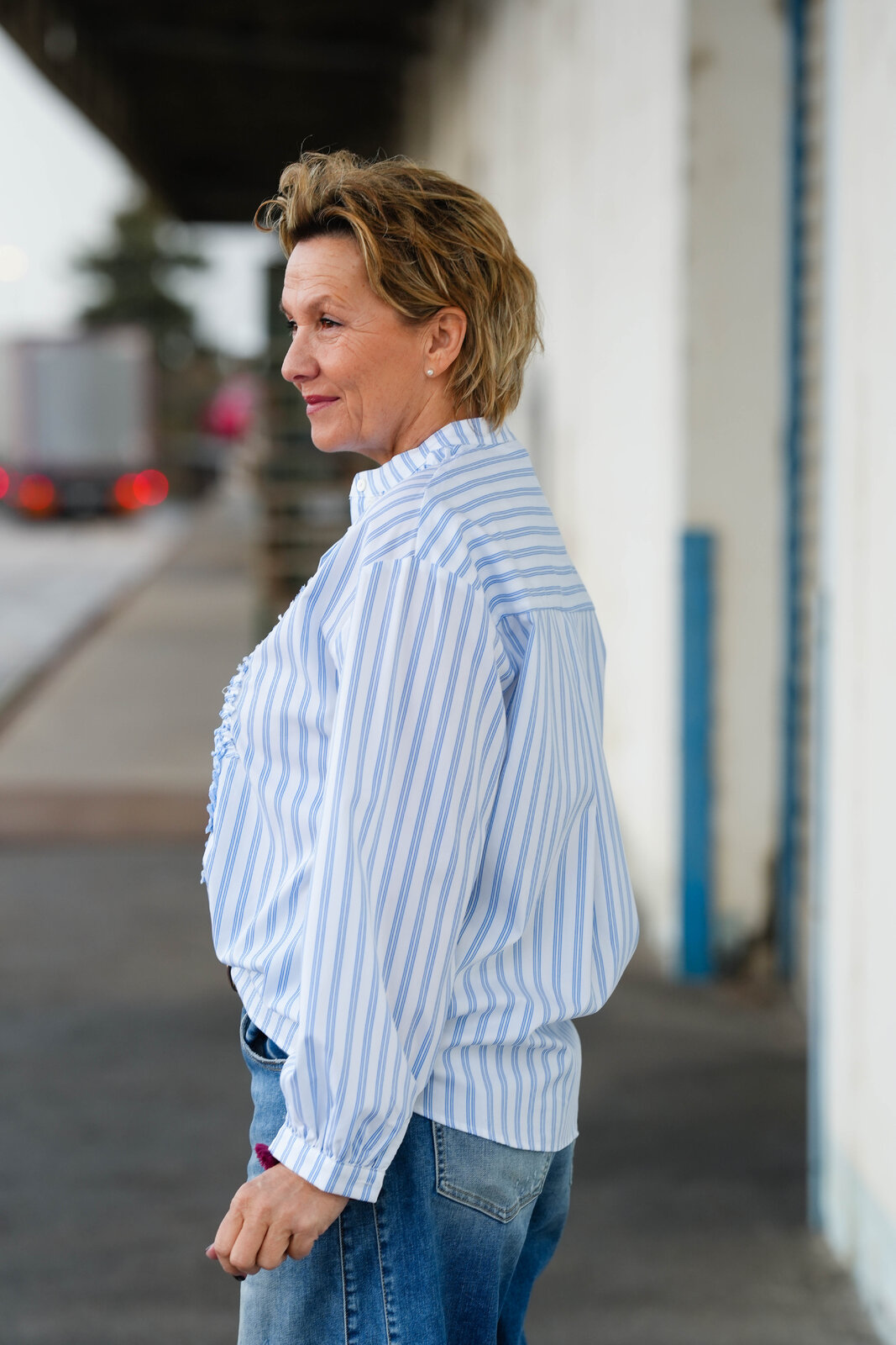 - Rüschen entlang der Knopfleiste
