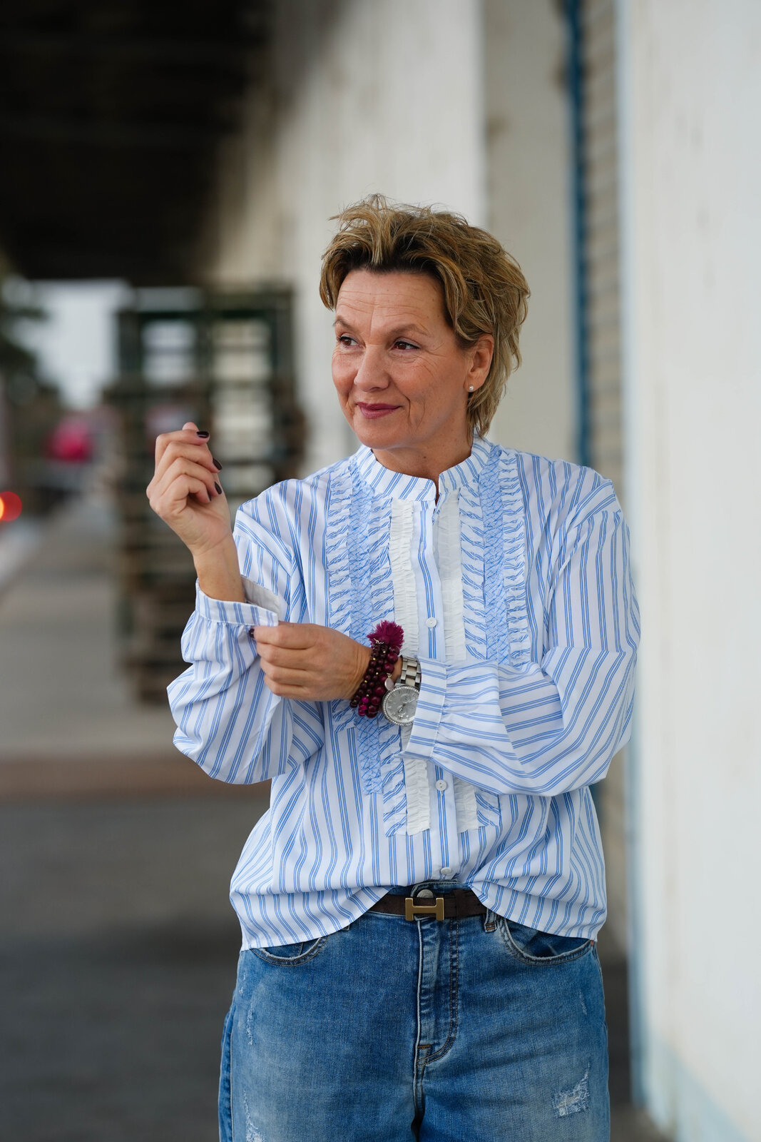 - am Ärmelende mit einem Knopf zu schließen