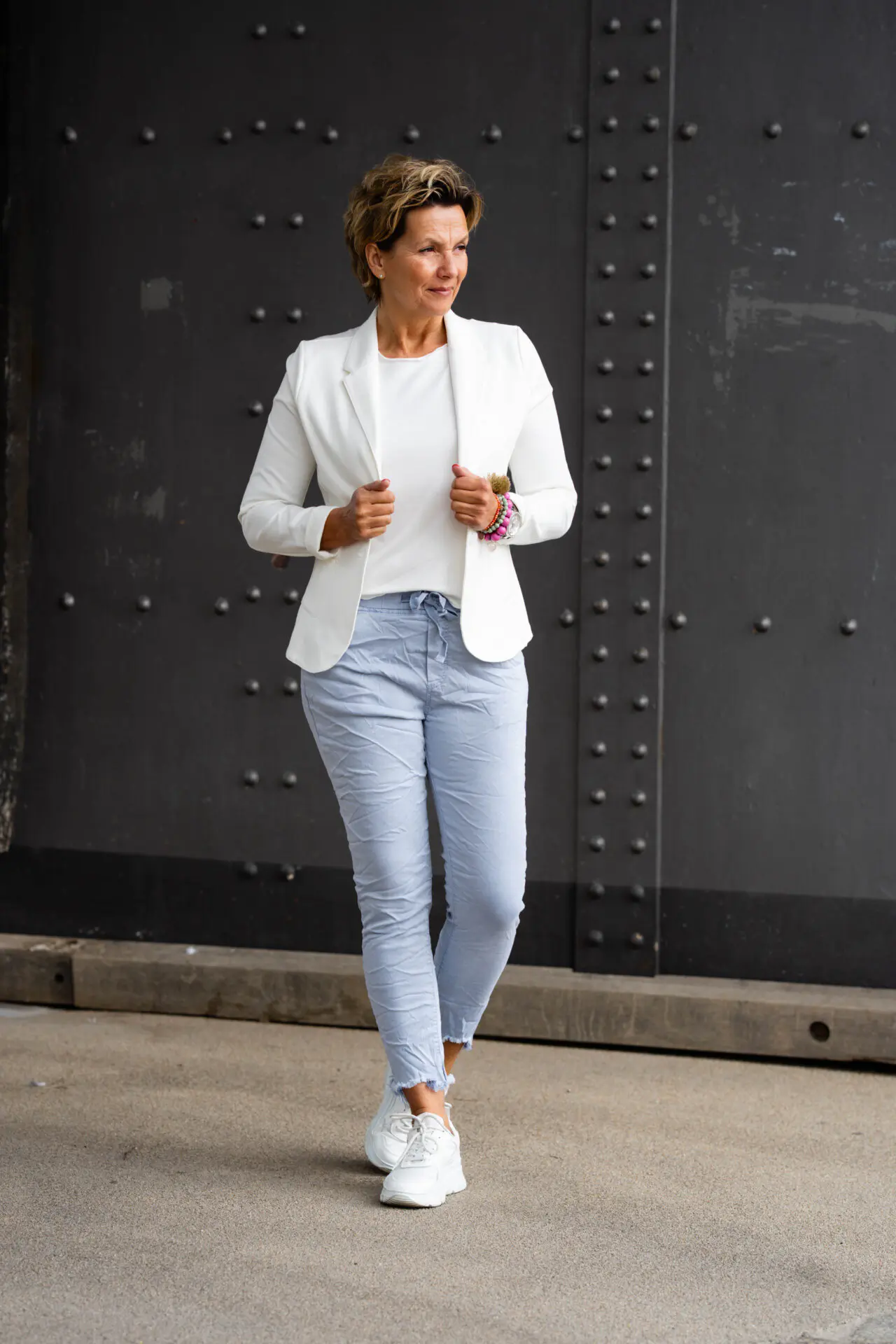 - um den Knitterlook zu erhalten solltest du die Hose im noch feuchten Zustand, gedreht oder verknotet, möglichst nahe einer Heizung trocknen lassen.