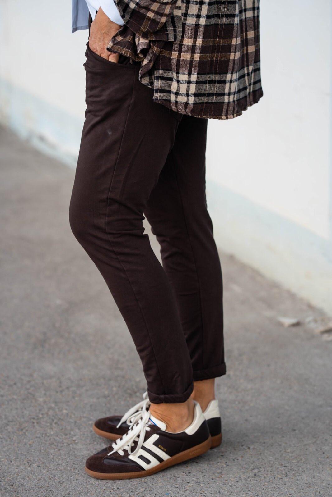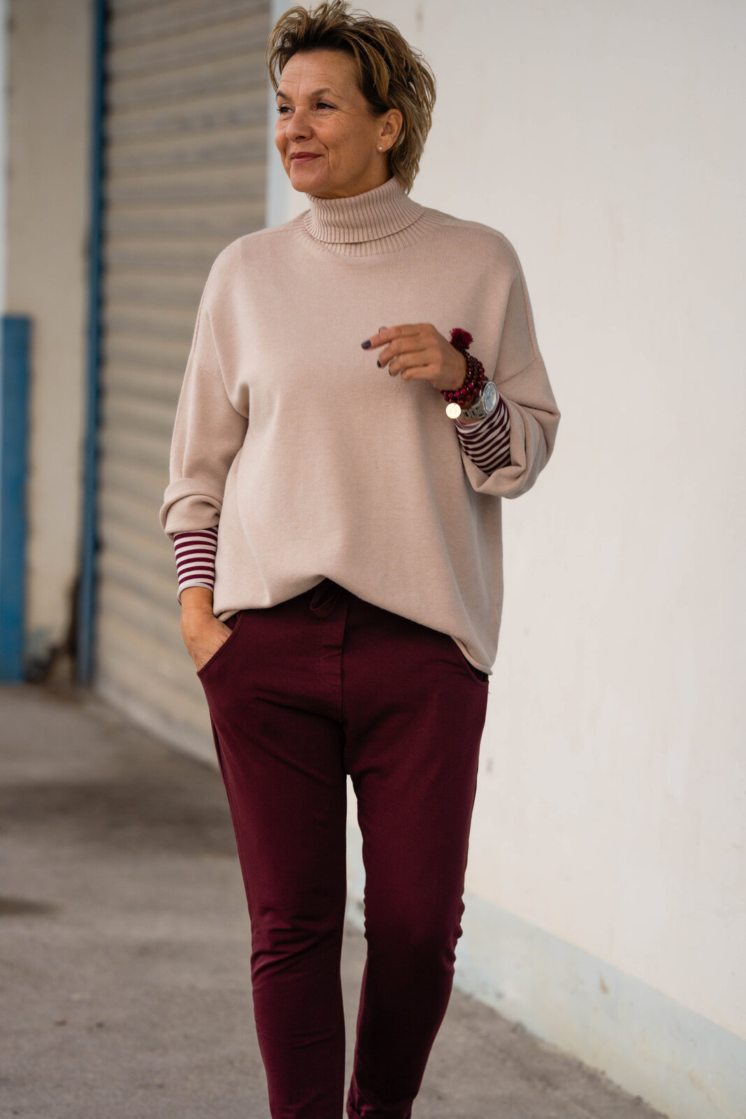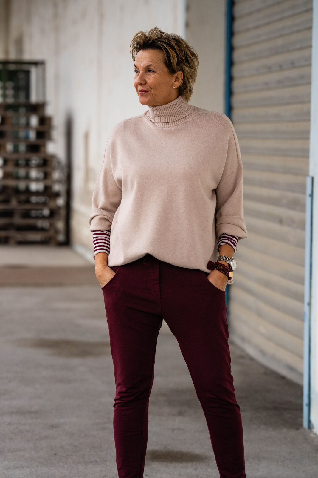 - Die Hose fällt normal aus und gibt ein wenig nach
