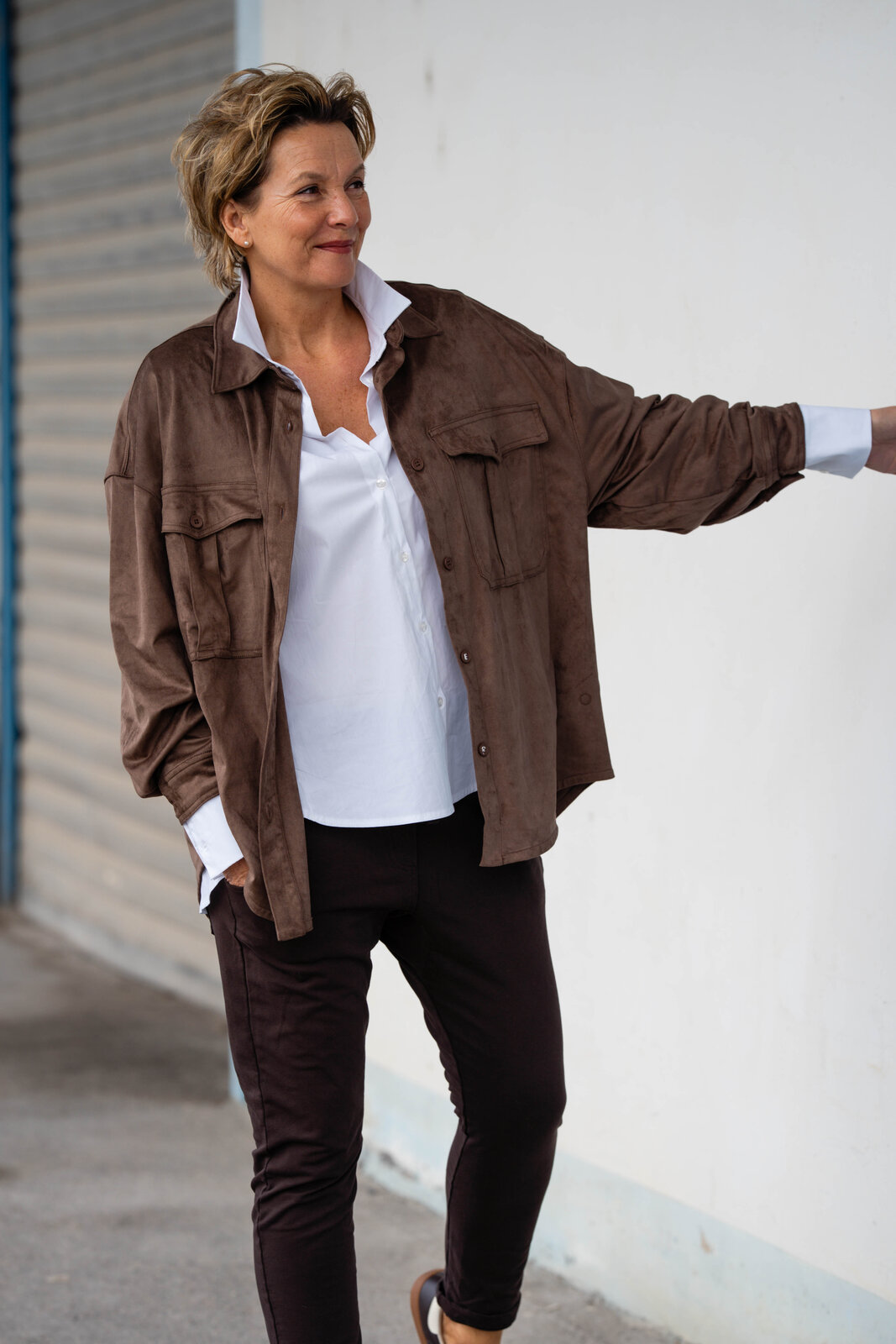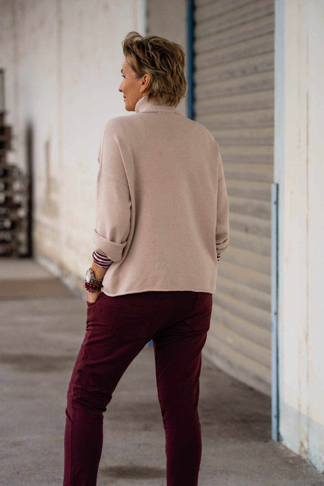 - etwas tiefer aufgesetzte Gesäßtaschen
