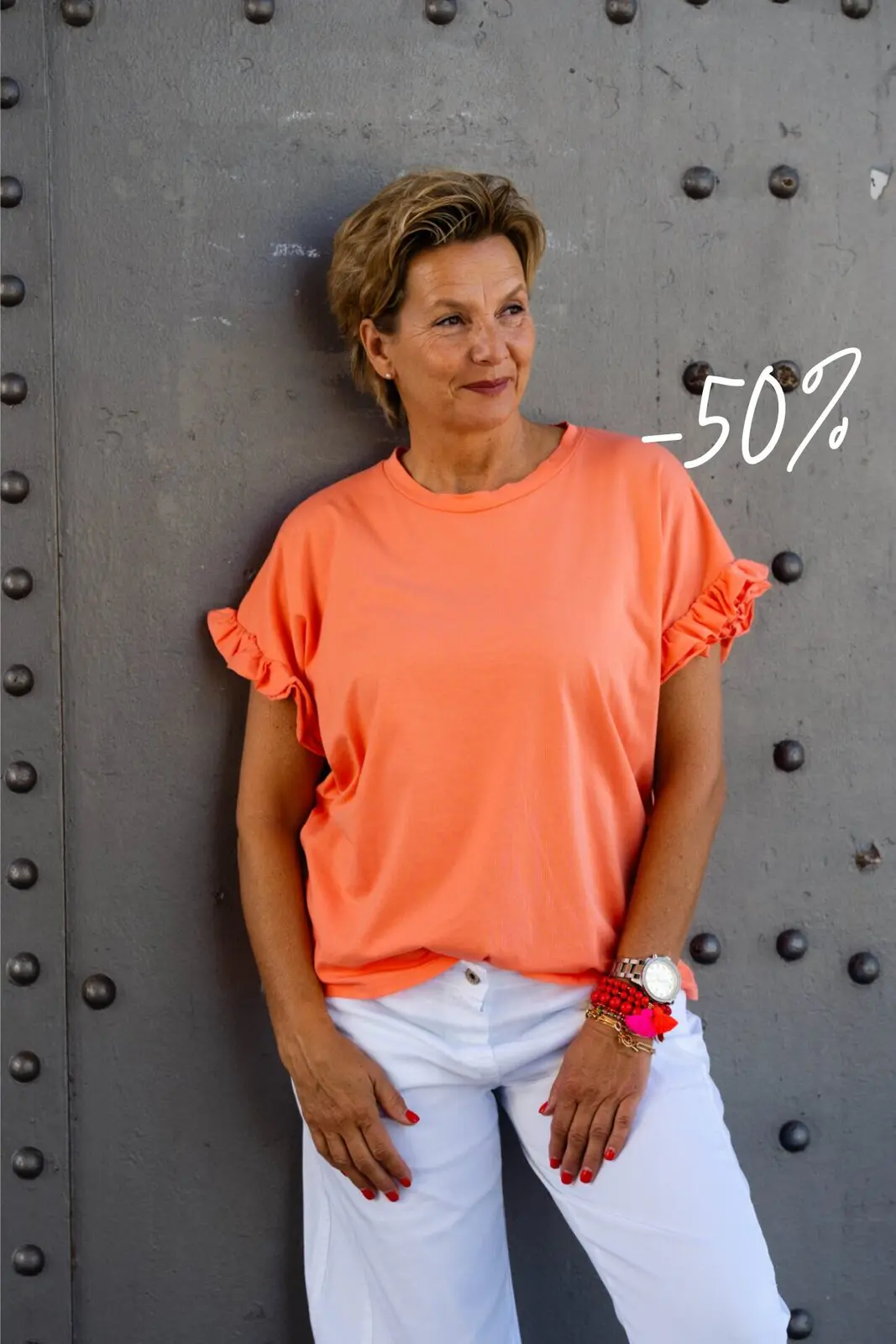 Dieses schöne Shirt vereint einen angenehmen Tragekomfort mit modernem Design. Der weiche Baumwollmaterialmix fühlt sich angenehm auf der Haut an und bietet eine bequeme Passform. Die Volant-Ärmel verleihen dem Shirt eine besondere Note. Ob mit Jeans für den Alltag oder mit einem Rock für ein schickeres Outfit, hier bleiben keine Kombinationswünsche offen. Das Shirt ist eine passende Ergänzung für jede Garderobe.