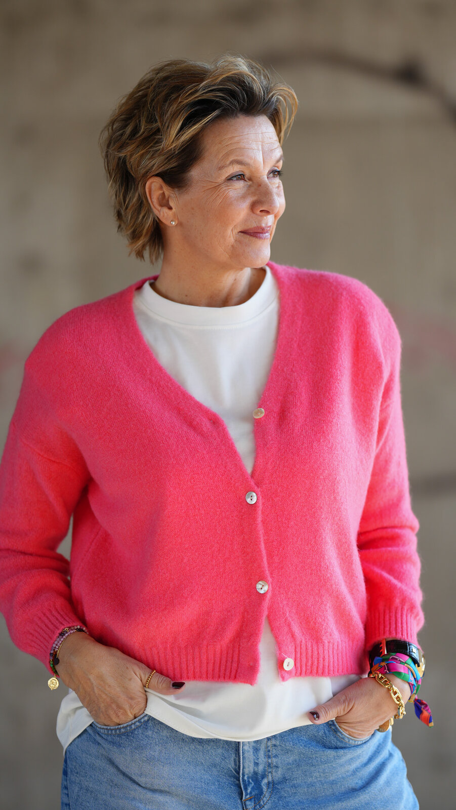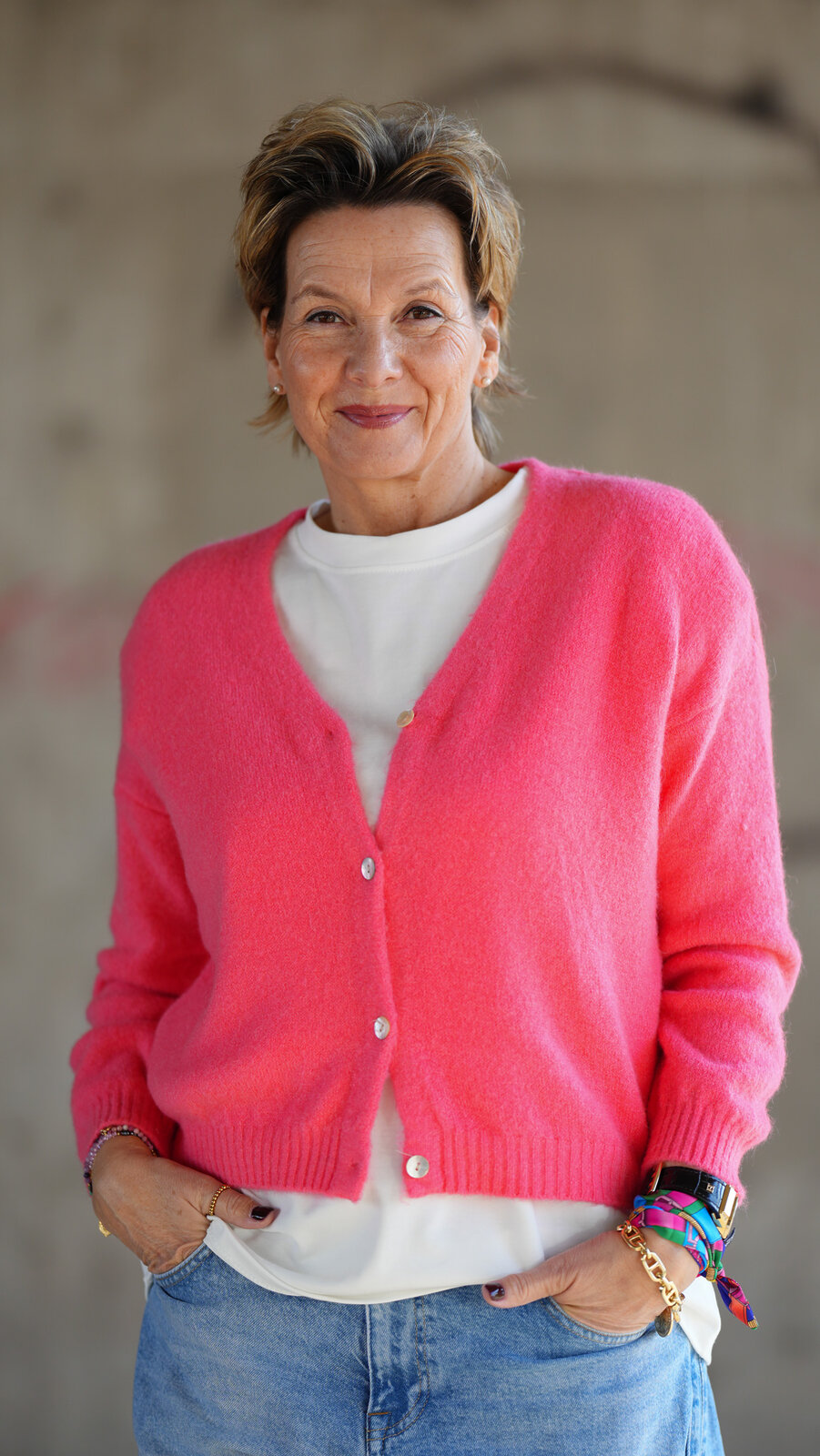 - durchgehende Knopfleiste mit schimmernden Knöpfen