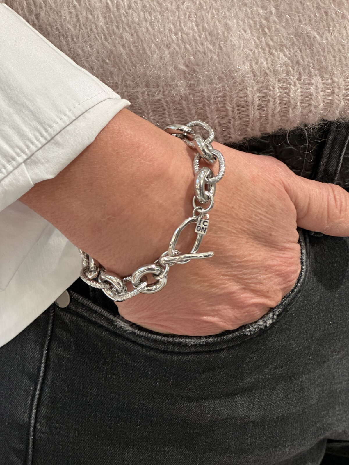 Dieses tolle Armband von ICON, mit seinen verschiedenen auffallenden Glieder ist genau das Richtige für dich. Ein tolles Armband was deinem Outfit das gewisse Etwas verleiht und es ist garantiert ein Hingucker.