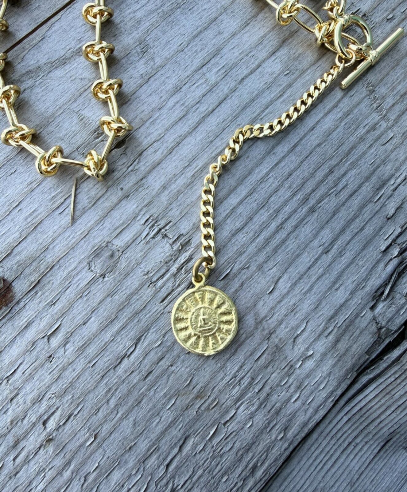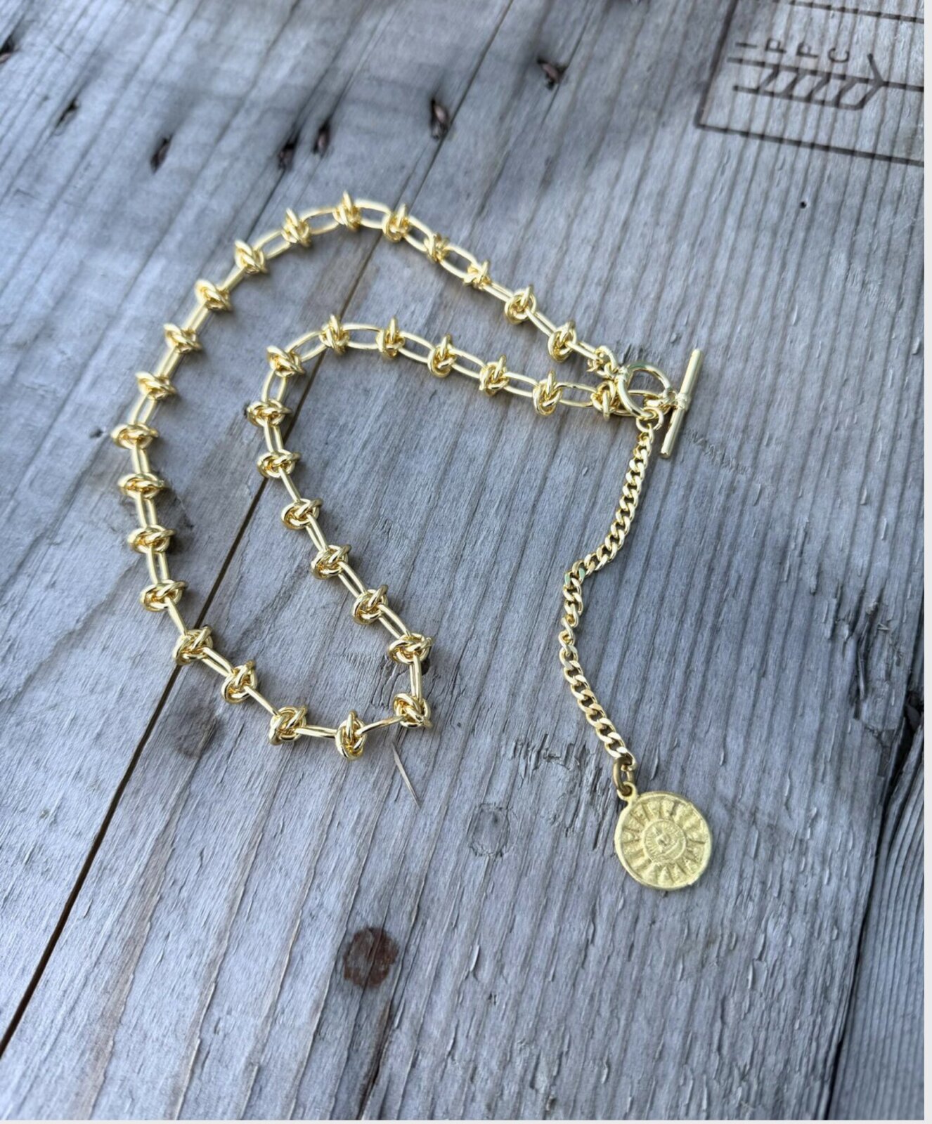 Necklace von ICON mit markanten, ovalen Gliedern und integrierten Knotendetails, die dem Design eine besondere, moderne Struktur verleihen. Ein Medaillon Anhänger fungiert als stilvoller Blickfang und verleiht dem Schmuckstück eine persönliche Note. Der Knebelverschluss sorgt nicht nur für ein einfaches An- und Ablegen, sondern unterstreicht zugleich den charakteristischen Look der Kette. Ausdrucksstarkes Accessoire, das jedem Outfit eine individuelle und elegante Note verleiht.