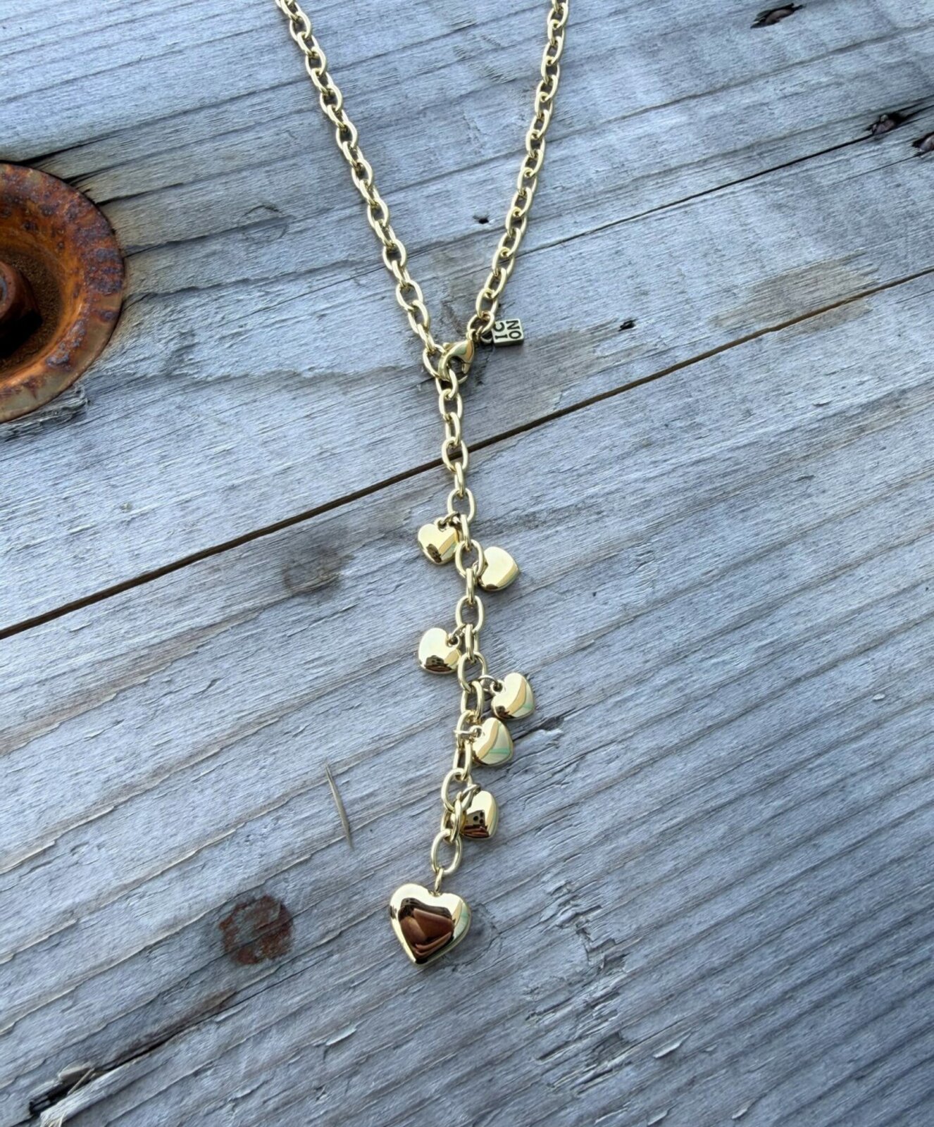 ICON Necklace mit feinen, kleinen runden Gliedern, die für eine filigrane und zugleich moderne Optik sorgen. Herzanhänger – darunter ein größerer als zentrales Highlight sowie kleinere ergänzende Elemente – verleihen dem Schmuckstück eine verspielte und elegante Ausstrahlung. Stimmiges Design macht die Kette zu einem vielseitigen Accessoire, das sowohl im Alltag als auch zu besonderen Anlässen stilvoll getragen werden kann.