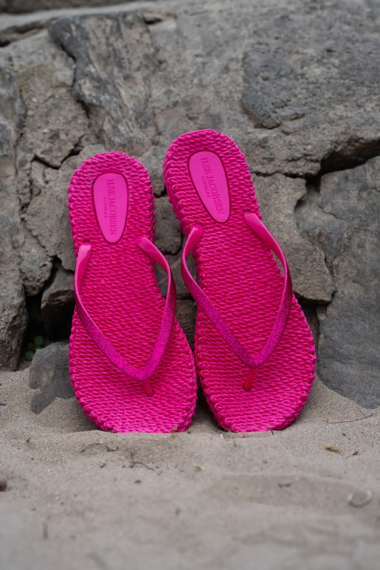 Diese fröhlichen Flip Flops von ILSE JACOBSEN machen den Sommer perfekt. Die Cheerful Flip Flops bestehen aus Luftgummi und induzierter Luft, um sie leicht und flexibel zu machen. Die gemusterte Innensohle ist äußerst bequem und erzeugt einen sanften Massageeffekt. Farblicher Glitzer auf dem String-Riemen verleihen den Flip Flops einen luxuriösen Look und machen sie perfekt für einen Strandspaziergang oder einen sommerlichen Anlass.
