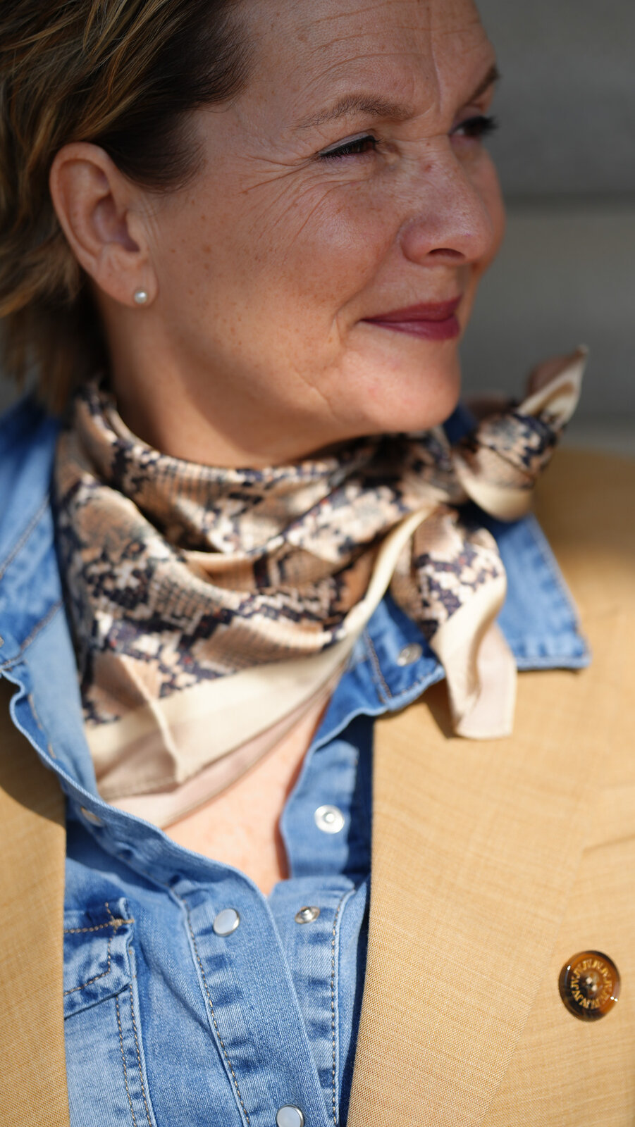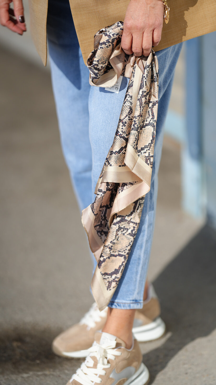 Dieses wunderschöne Tuch von JOSH V überzeugt mit einer luxuriösen Schlangenoptik und einer besonders seidigen Haptik. Das elegante Design verleiht jedem Outfit einen stilvollen Akzent – ob klassisch um den Hals gebunden, lässig über die Schultern gelegt oder als modisches Accessoire an Tasche oder Haar. Das angenehm leichte Material schmiegt sich sanft an die Haut und sorgt für hohen Tragekomfort. Ein vielseitiges Must-have für alle, die zeitlose Eleganz mit einem Hauch Extravaganz lieben.