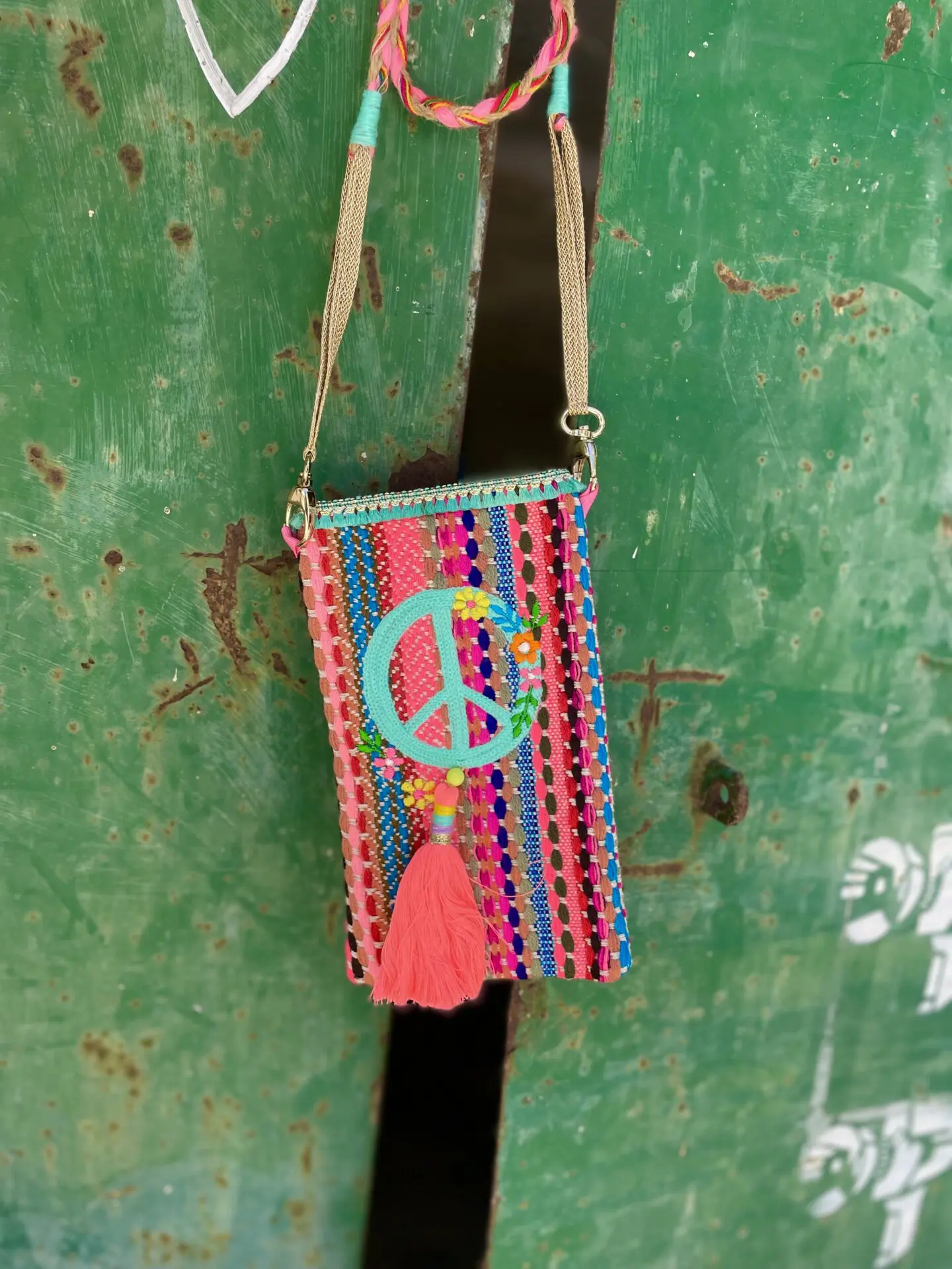 Diese Tasche von NOI schützt nicht nur dein Handy, sondern ist ein kleines, aber auffälliges Highlight deines Outfits. Dabei ist sie liebevoll mit kleinen Details verziert und in einem wirklich farbenfrohen auffallend schönen Webstoff gefertigt. Ein abnehmbares, super schönes Band mit 2 edlen kleinen Karabinerhaken, ermöglicht dir, die Tasche über die Schulter zu tragen- oder ohne Band, nur als Handyhülle zu verwenden.