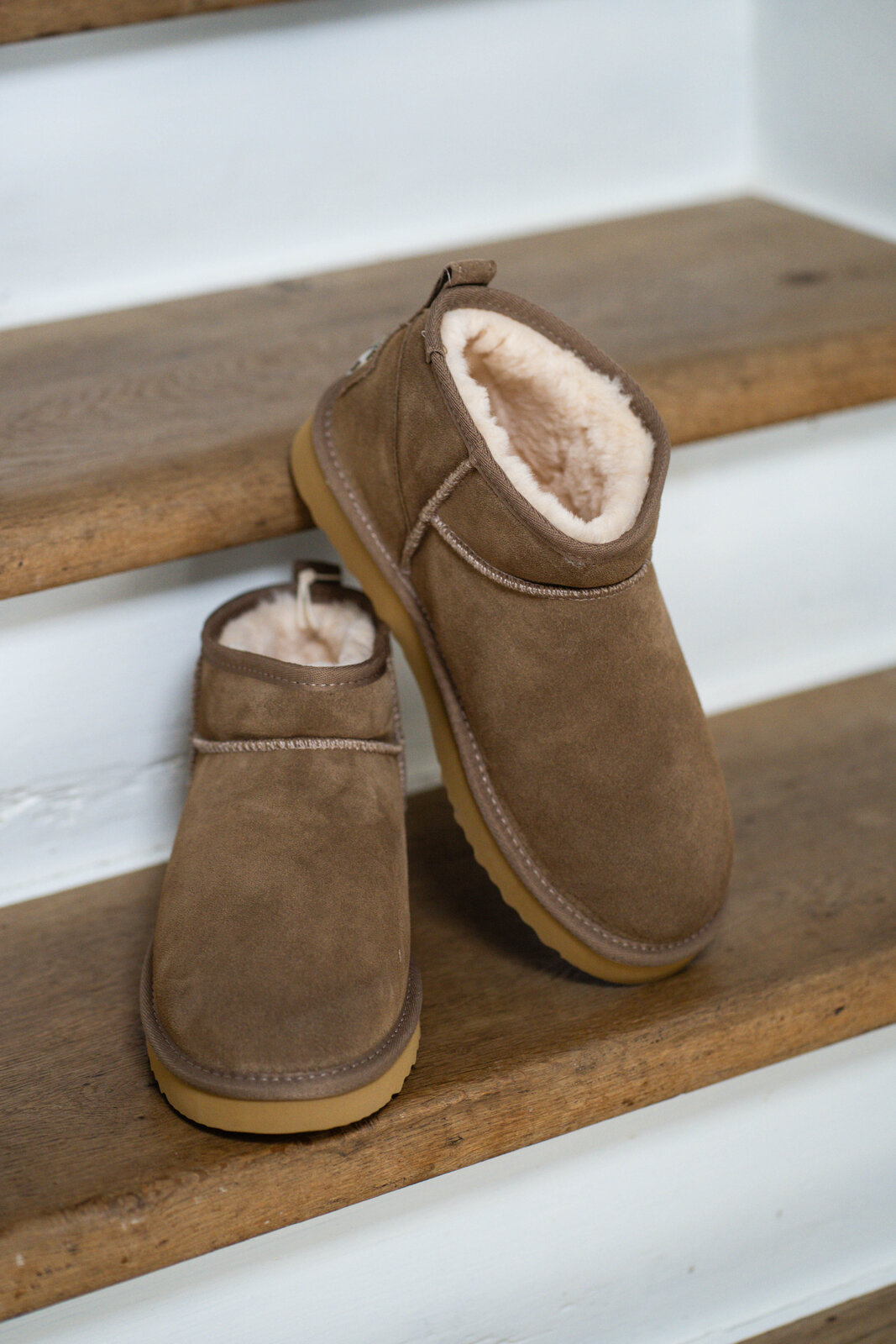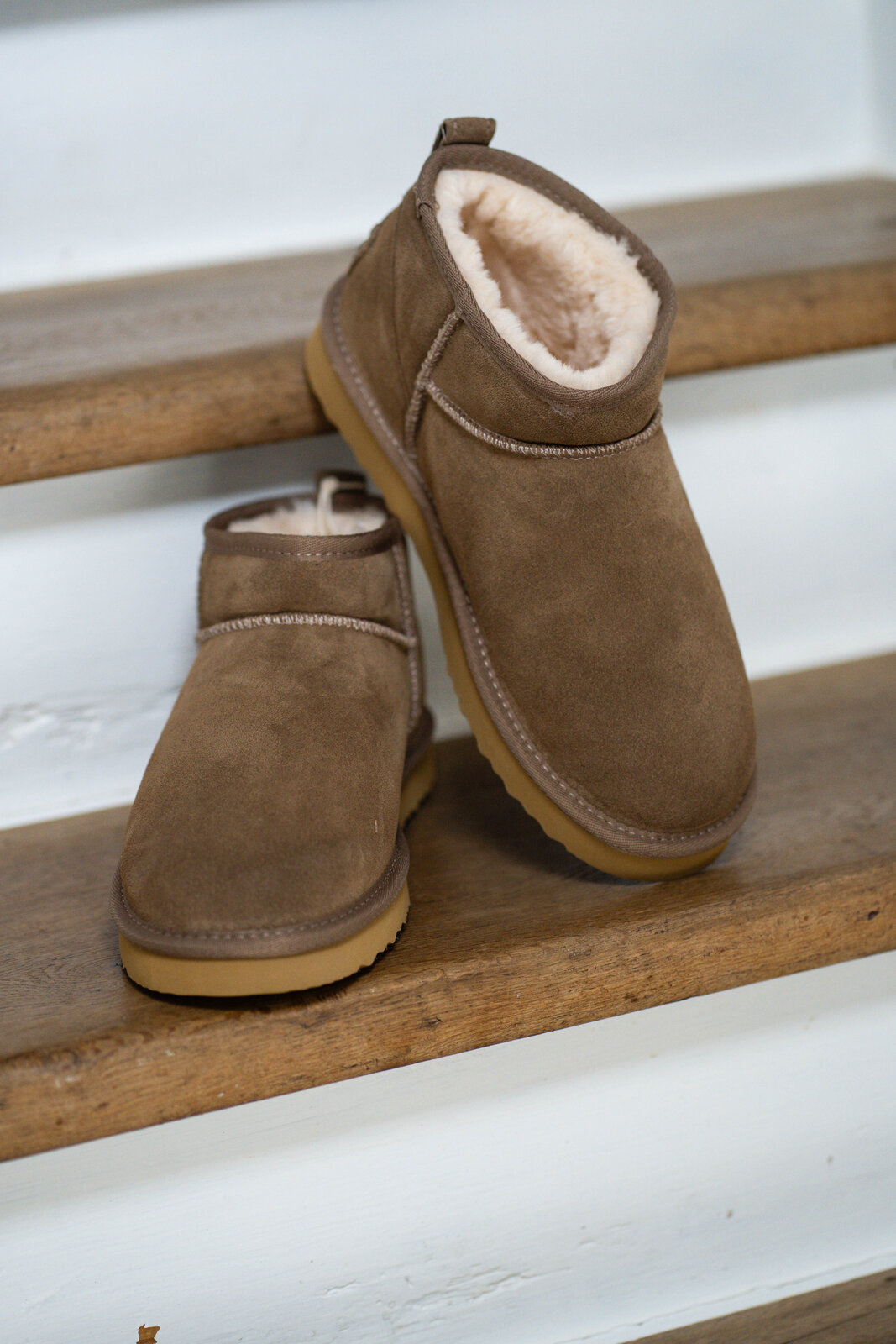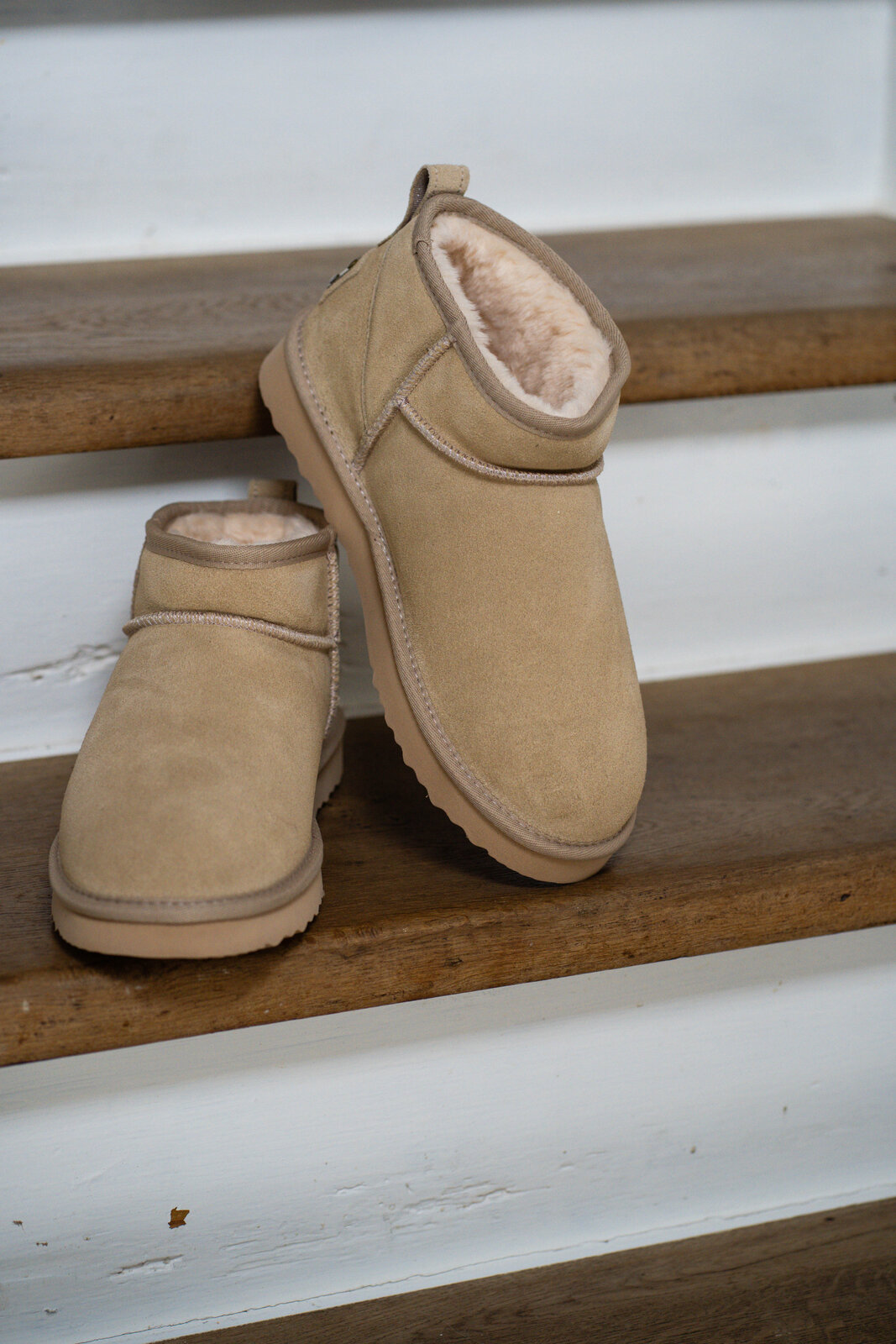 Diese OOG Mini Boots sind dein perfekter Begleiter für kalte Tage! Gefertigt aus hochwertigem Veloursleder überzeugen sie mit ihrem cleanen, modernen Look und ultimativem Tragekomfort. Das weiche Teddyfell-Innenfutter sorgt für wohltuende Wärme und ein kuscheliges Gefühl, selbst bei frostigen Temperaturen. Der charakteristische Mini-Schnitt macht sie zum lässigen Allrounder, der zu jedem Winter-Style passt – ob zur Jeans, Leggings oder einem gemütlichen oversize-Look.