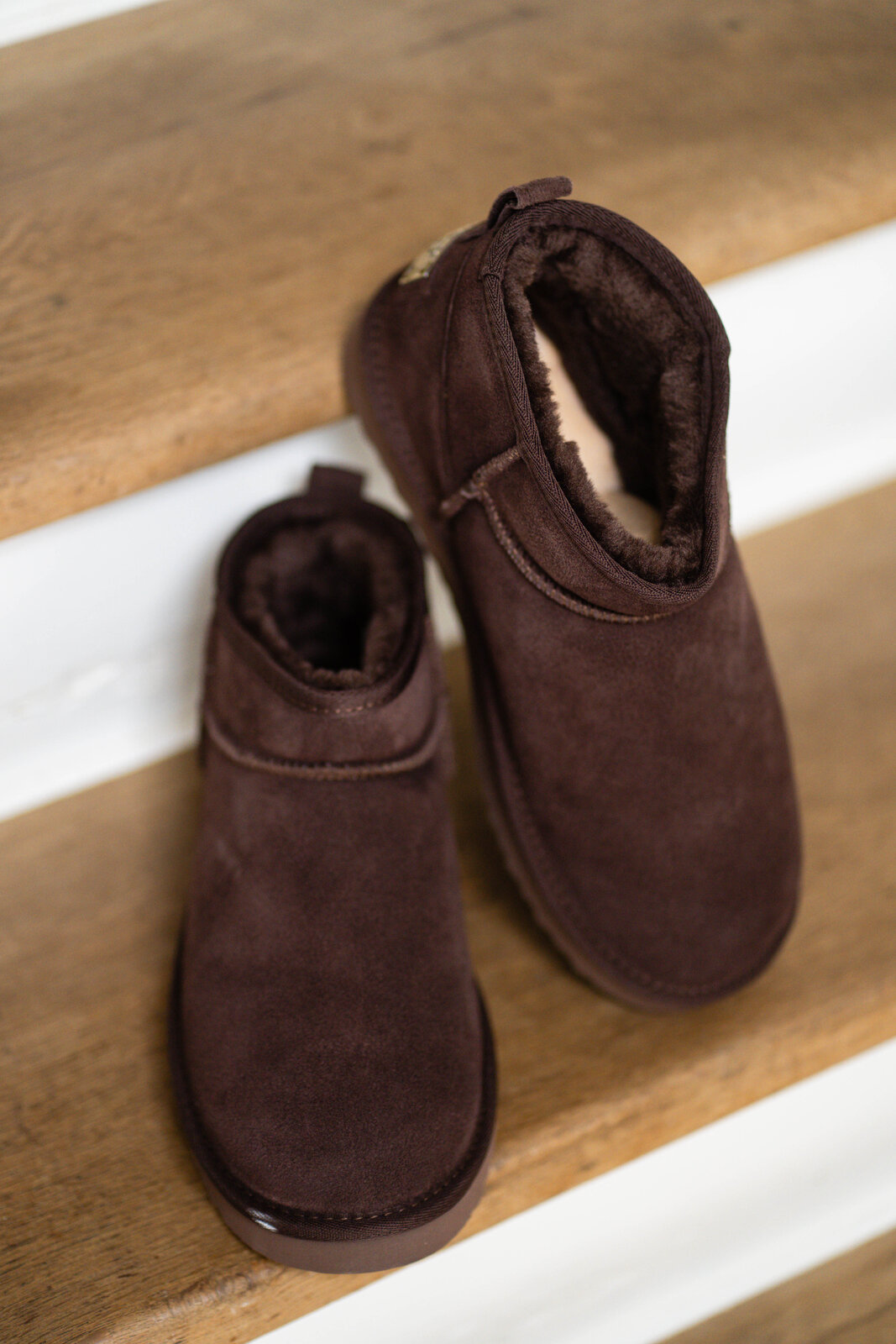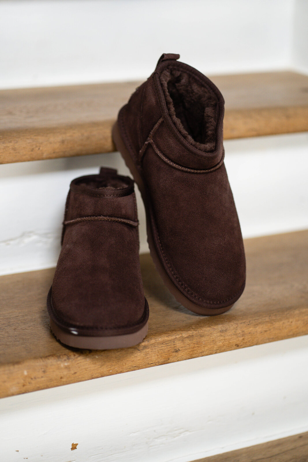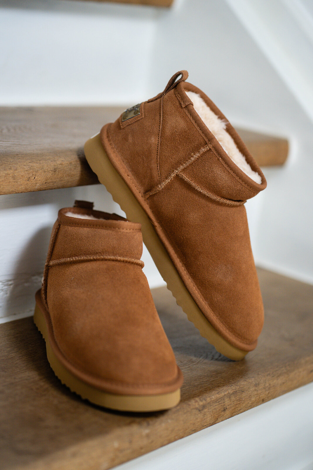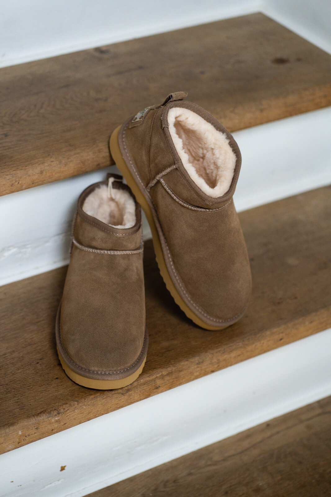 Diese OOG Mini Boots sind dein perfekter Begleiter für kalte Tage! Gefertigt aus hochwertigem Veloursleder überzeugen sie mit ihrem cleanen, modernen Look und ultimativem Tragekomfort. Das weiche Teddyfell-Innenfutter sorgt für wohltuende Wärme und ein kuscheliges Gefühl, selbst bei frostigen Temperaturen. Der charakteristische Mini-Schnitt macht sie zum lässigen Allrounder, der zu jedem Winter-Style passt – ob zur Jeans, Leggings oder einem gemütlichen oversize-Look.