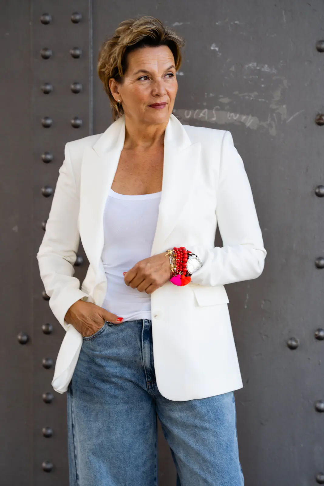 - geschlossen wird der Blazer mit zwei Knöpfen