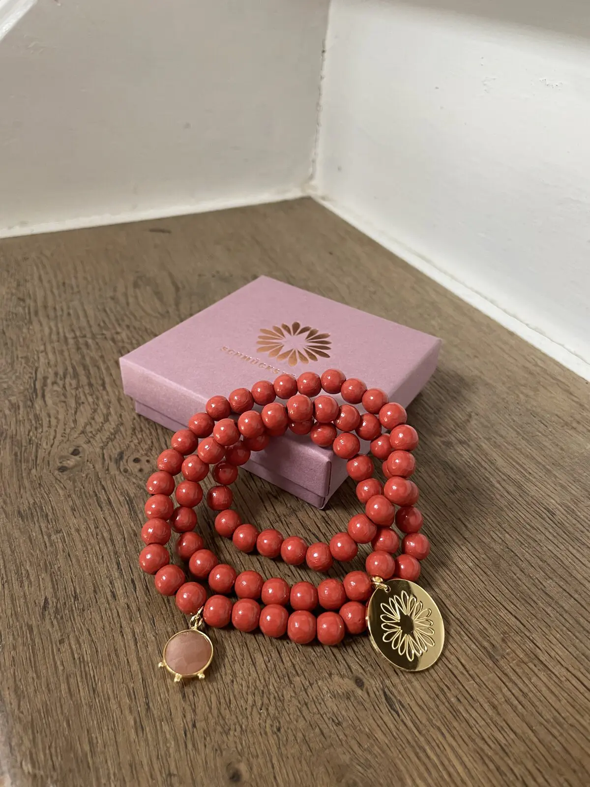 - Holzperlen 8mm, lachsorange