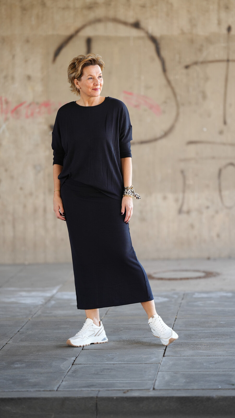 Dieser Maxirock von SENSES.THE LABEL vereint Stil und Komfort auf perfekte Weise. Der elastische Bund sorgt für eine angenehme Passform und hohen Tragekomfort. Die leichte Struktur des Stoffes verleiht dem Rock eine besondere Optik, während der Schlitz auf der Rückseite für Bewegungsfreiheit und einen femininen Akzent sorgt. Ein vielseitiges Lieblingsstück – super bequem und ideal für Alltag und Freizeit.
