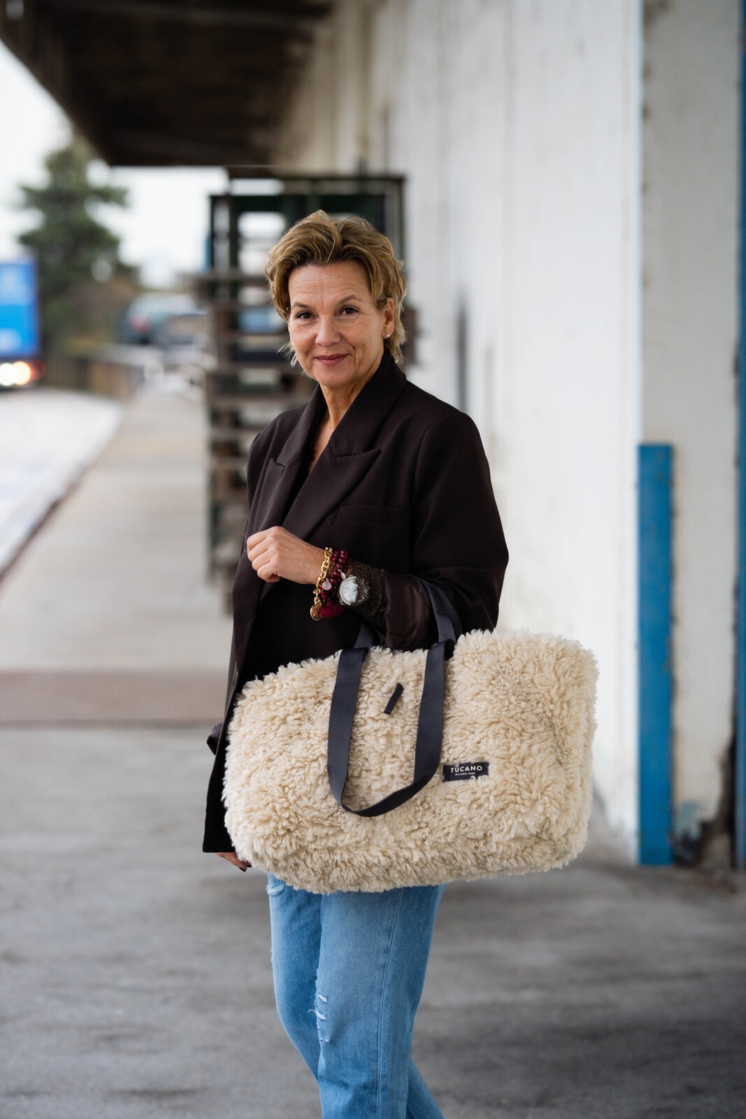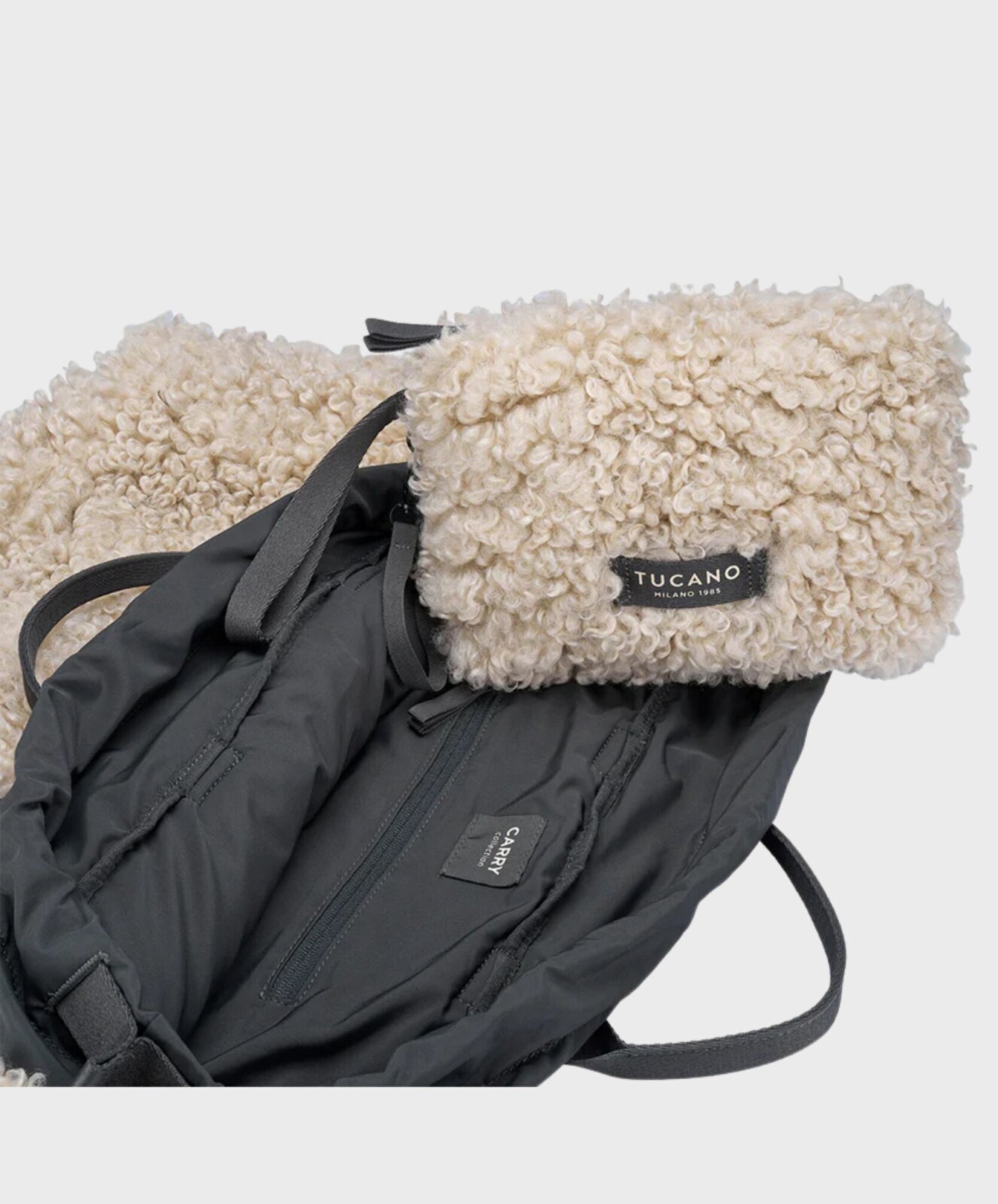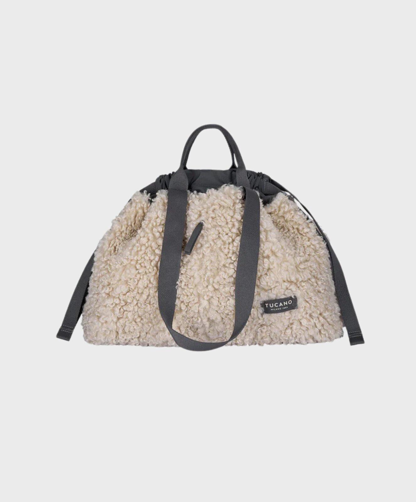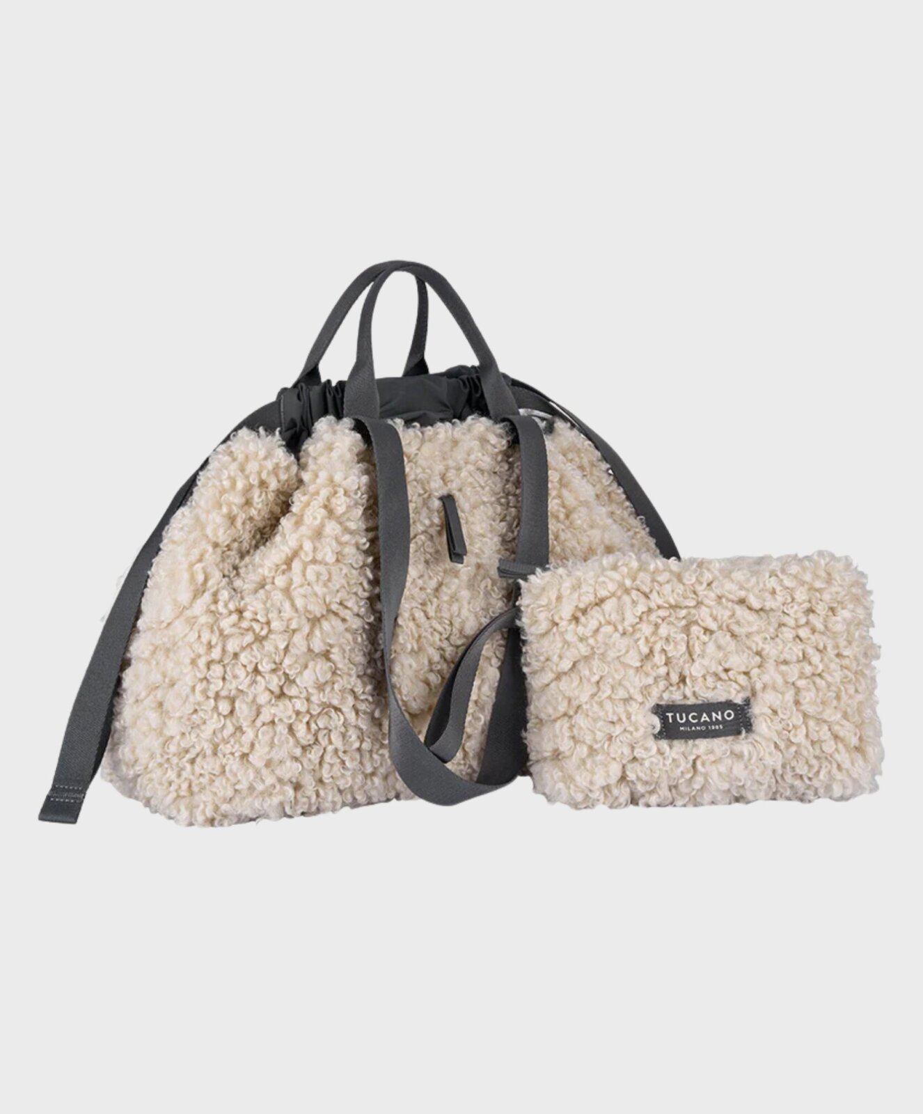 Dieser moderne Shopper von TUCANO vereint kuschelweiche Optik mit praktischer Funktionalität und ist damit der ideale Begleiter für Alltag, Arbeit oder Freizeit. Der hochwertige Kunstpelz mit Schafspelz-Effekt sorgt für eine besonders weiche Haptik und verleiht der Tasche einen warmen, stylischen Look. Für maximalen Tragekomfort ist der Shopper mit zwei kurzen und zwei langen Tragegriffen aus robustem Gurtband ausgestattet – so kann er bequem in der Hand, oder über der Schulter getragen werden. Der Kordelzugverschluss ermöglicht ein schnelles und sicheres Verschließen der Tasche und setzt zugleich einen modischen Akzent. Das große Hauptfach bietet reichlich Platz für alle wichtigen Alltagsbegleiter, während ein kleines Innenfach mit Reißverschluss Ordnung und Sicherheit für Schlüssel, Handy oder andere Wertsachen schafft. Ein besonderes Highlight ist die herausnehmbare innere Clutch, die separat verwendet werden kann – perfekt für kleine Essentials oder als eigenständige Mini-Tasche.
