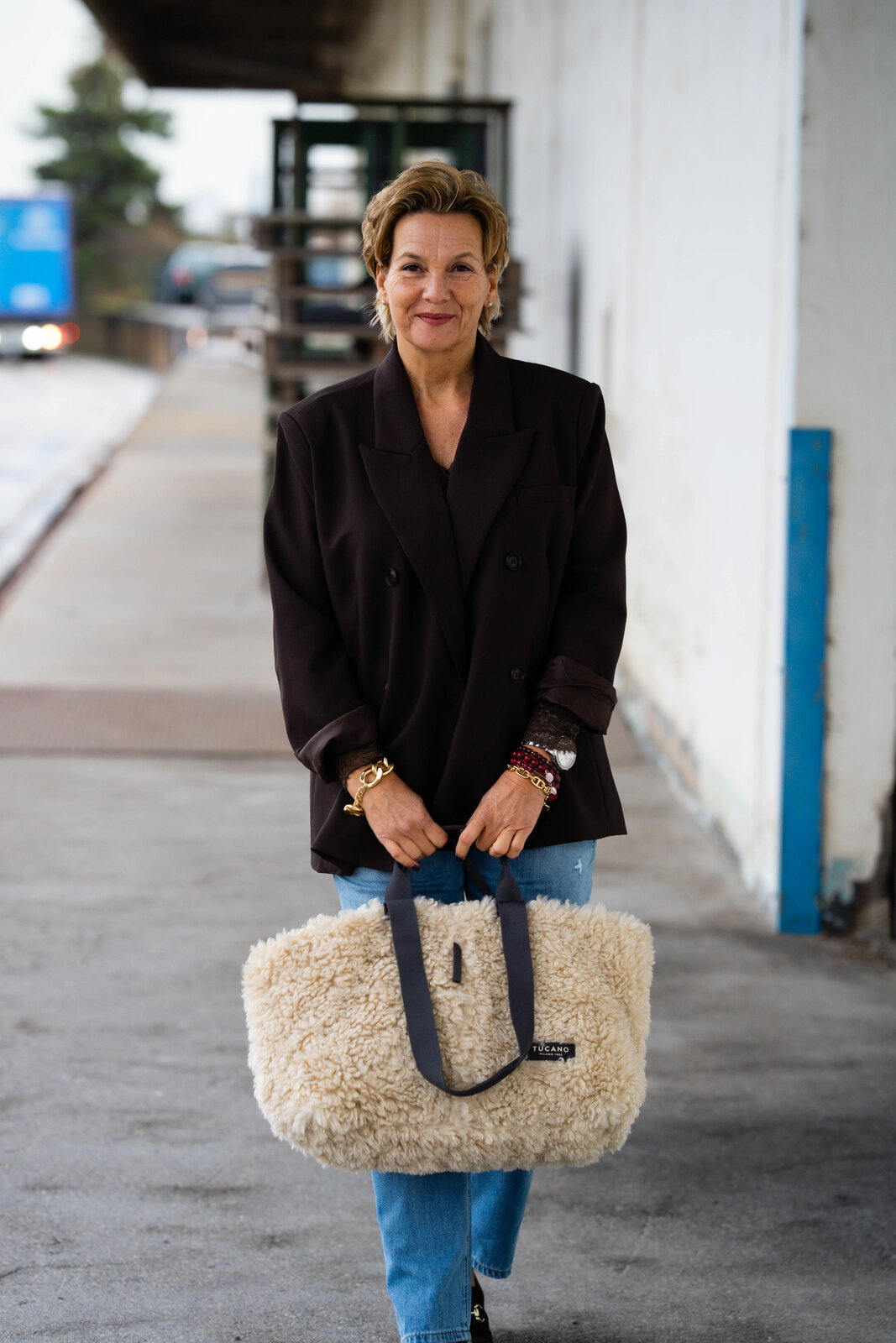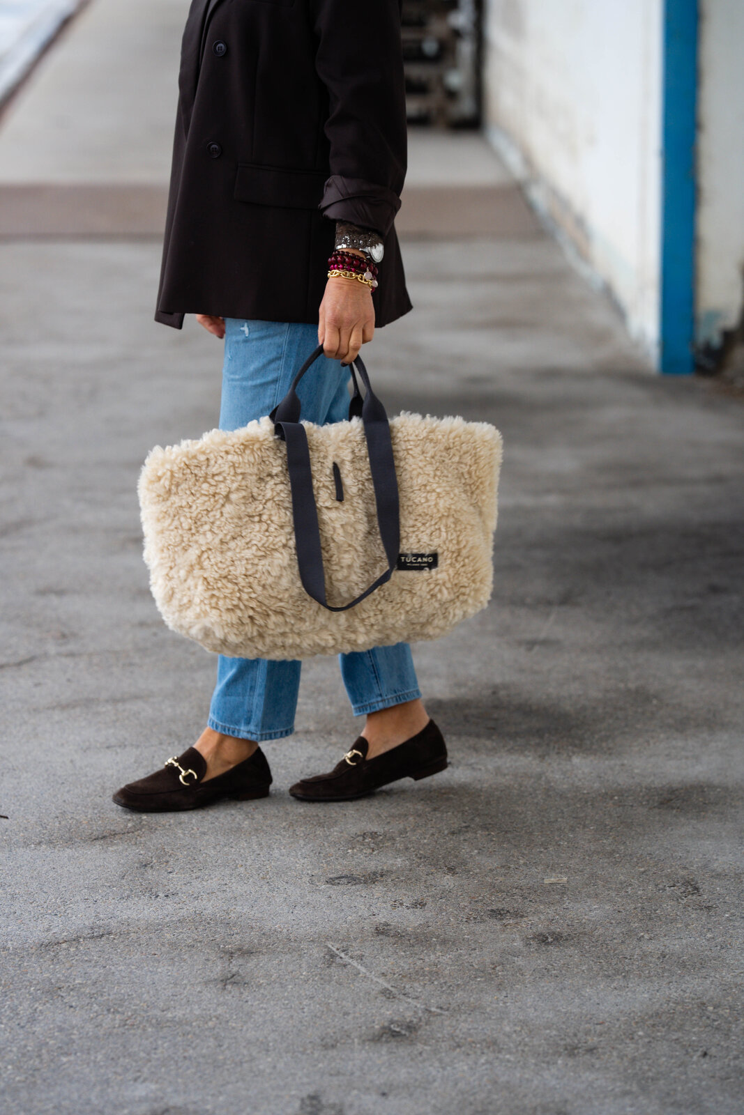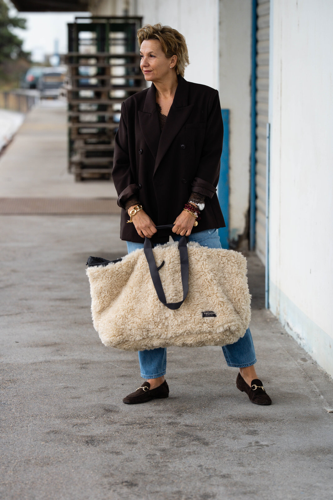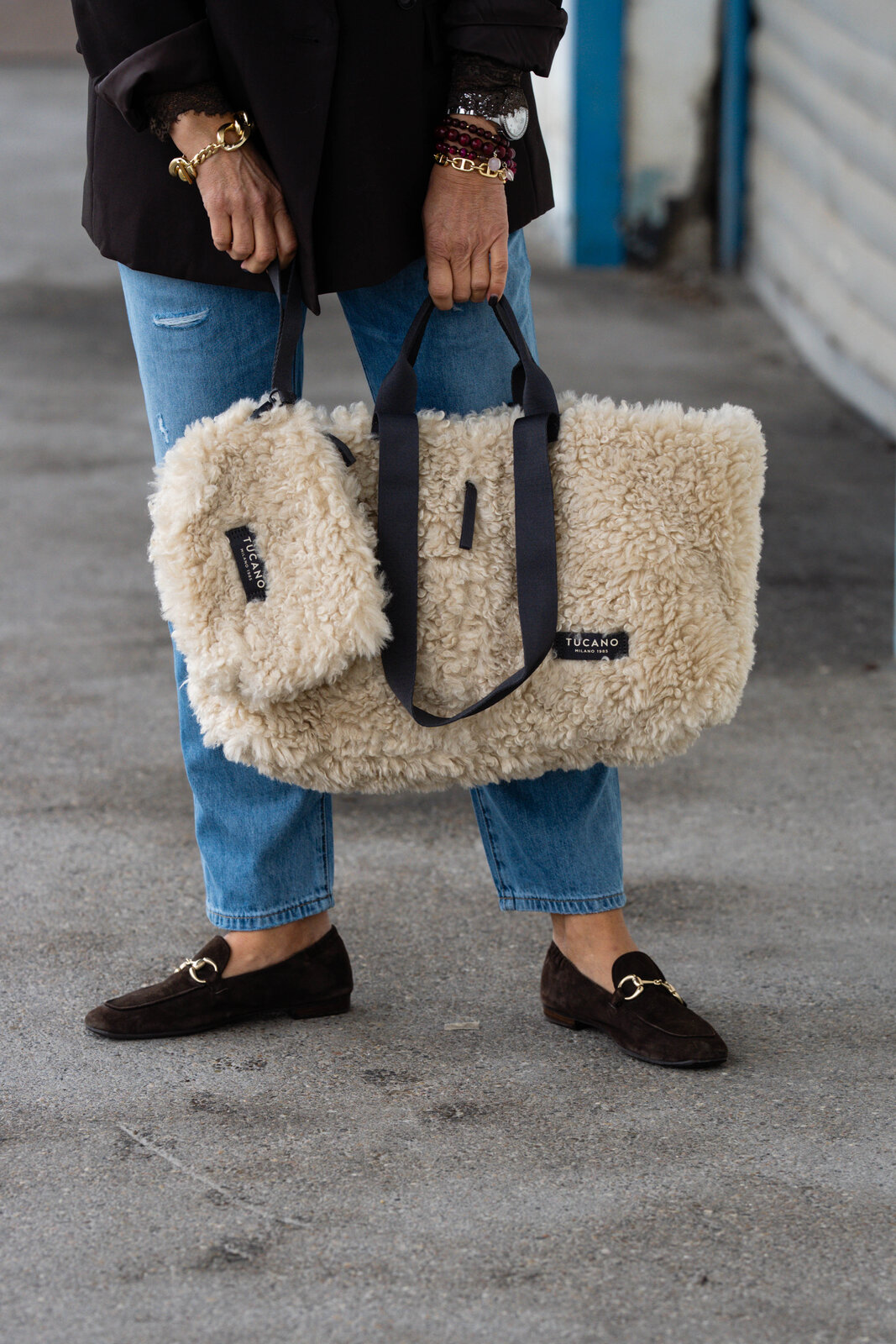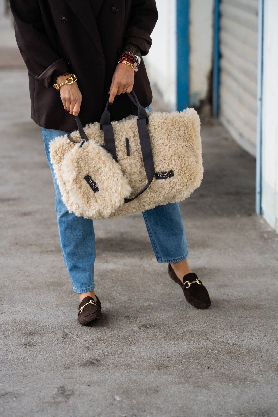 Dieser moderne Shopper von TUCANO vereint kuschelweiche Optik mit praktischer Funktionalität und ist damit der ideale Begleiter für Alltag, Arbeit oder Freizeit. Der hochwertige Kunstpelz mit Schafspelz-Effekt sorgt für eine besonders weiche Haptik und verleiht der Tasche einen warmen, stylischen Look. Für maximalen Tragekomfort ist der Shopper mit zwei kurzen und zwei langen Tragegriffen aus robustem Gurtband ausgestattet – so kann er bequem in der Hand, oder über der Schulter getragen werden. Der Kordelzugverschluss ermöglicht ein schnelles und sicheres Verschließen der Tasche und setzt zugleich einen modischen Akzent. Das große Hauptfach bietet reichlich Platz für alle wichtigen Alltagsbegleiter, während ein kleines Innenfach mit Reißverschluss Ordnung und Sicherheit für Schlüssel, Handy oder andere Wertsachen schafft. Ein besonderes Highlight ist die herausnehmbare innere Clutch, die separat verwendet werden kann – perfekt für kleine Essentials oder als eigenständige Mini-Tasche.