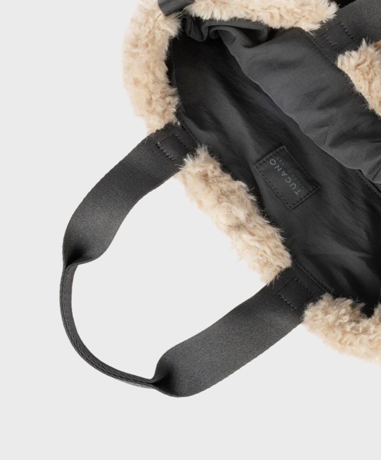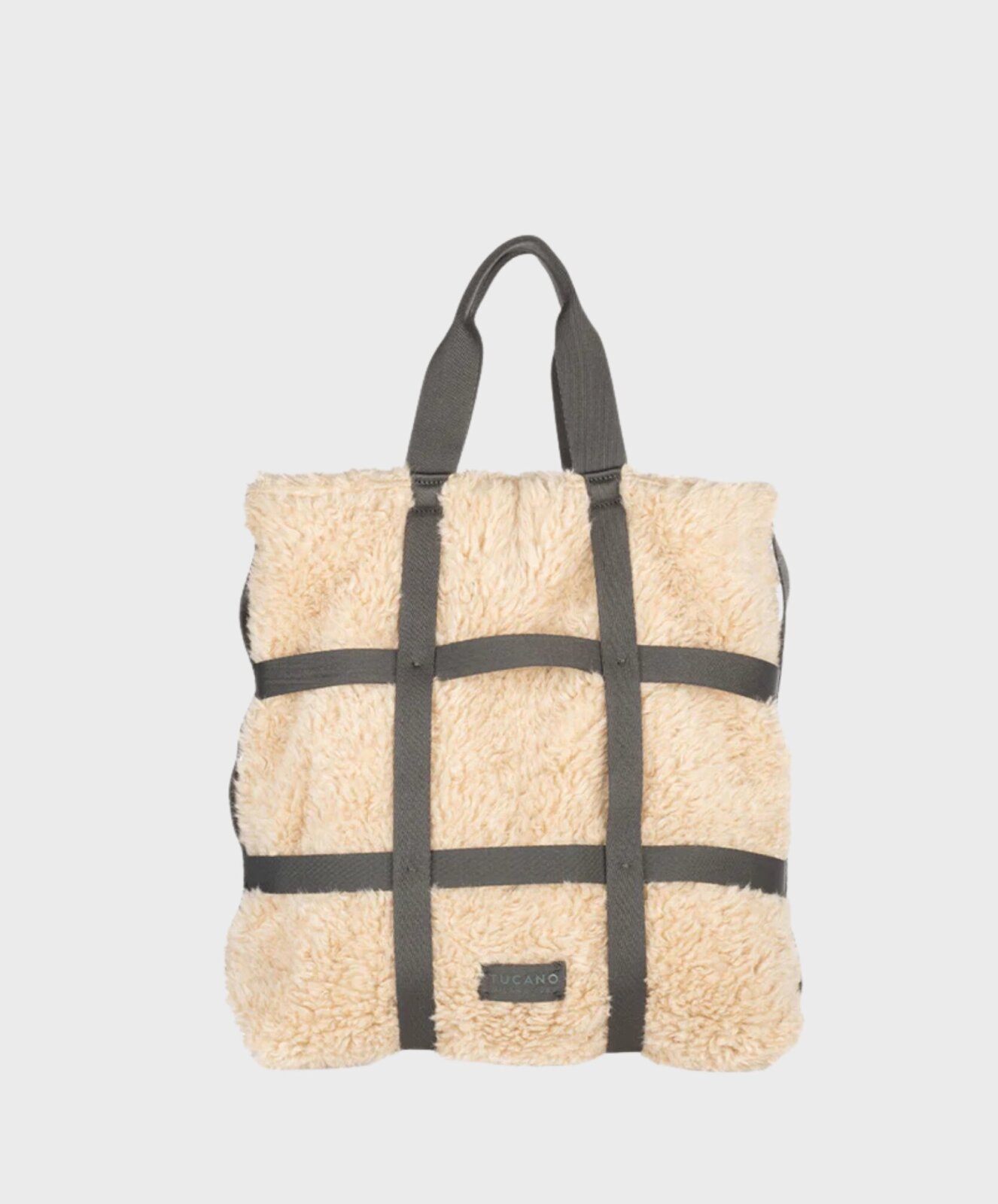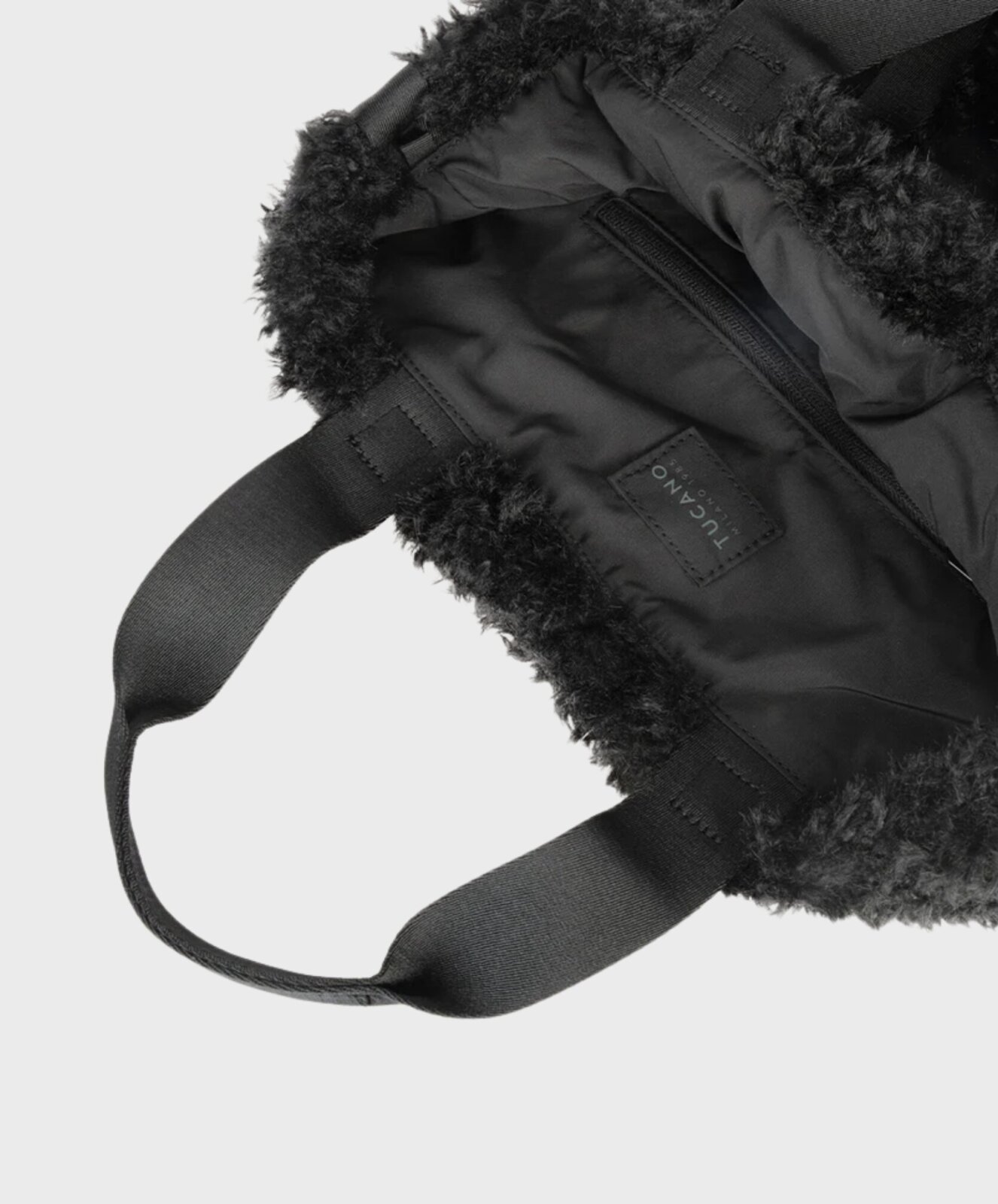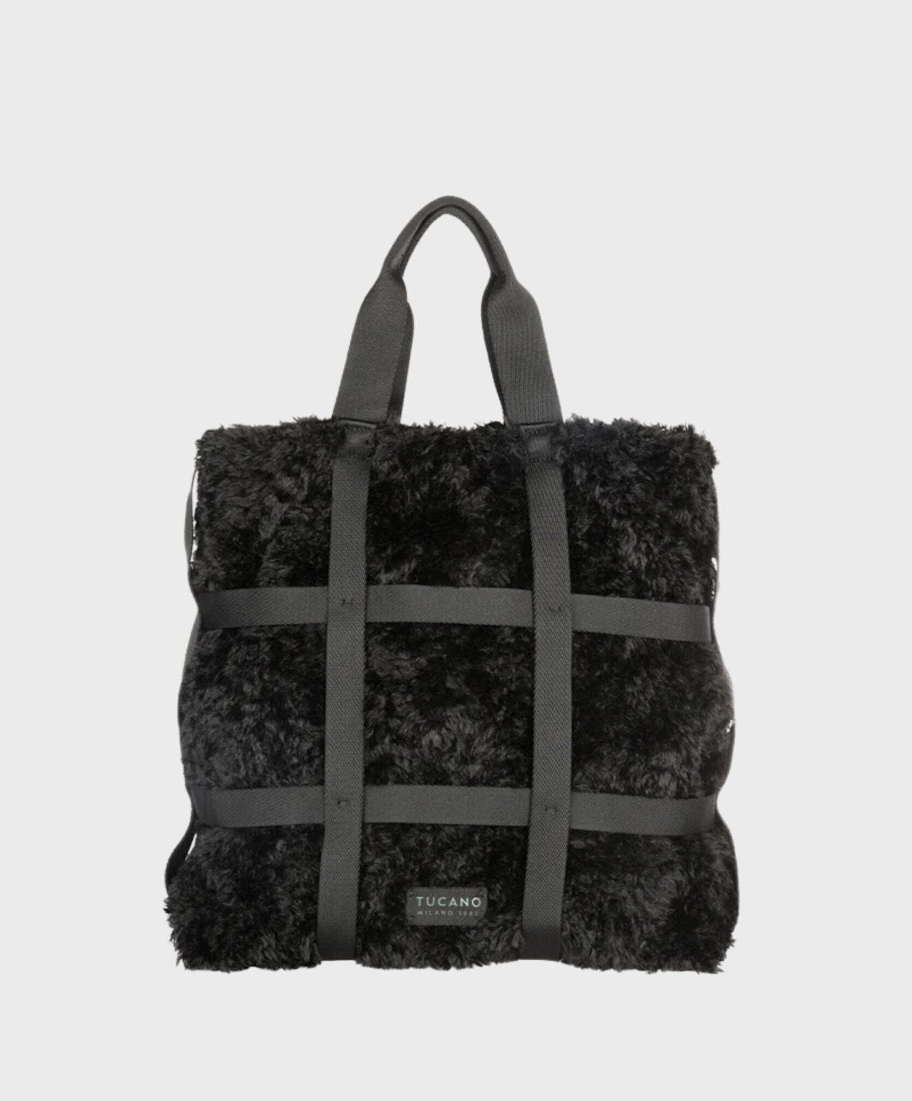 Diese stylische Kunstpelztasche von TUCANO kombiniert weiche Haptik mit raffinierter Detailarbeit und wird damit zum stilvollen Statement-Piece für jeden Anlass. Der flauschige Kunstpelz wird von einem dekorativen Gitter aus Bändern überzogen, das der Tasche eine moderne, strukturierte Optik verleiht.
