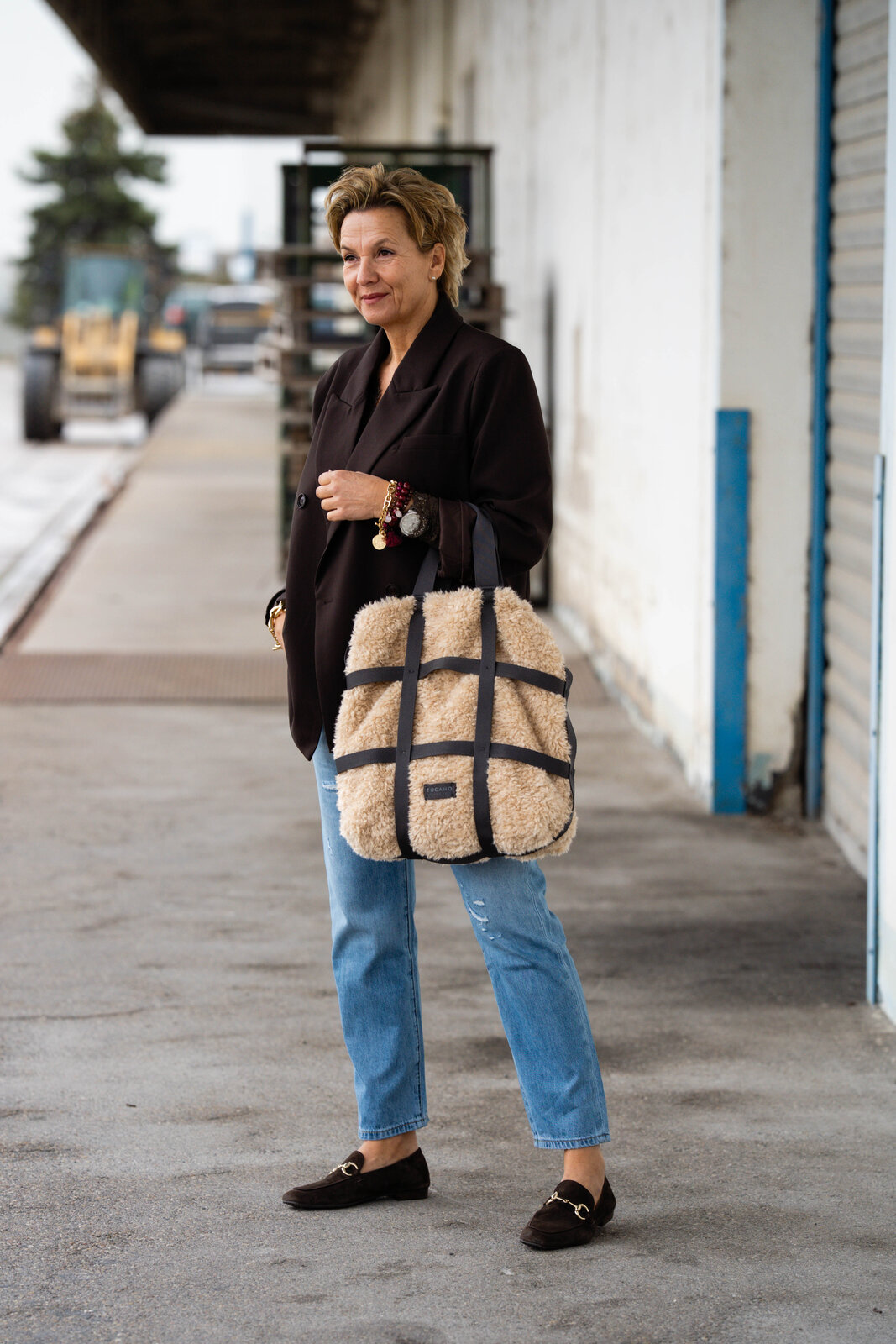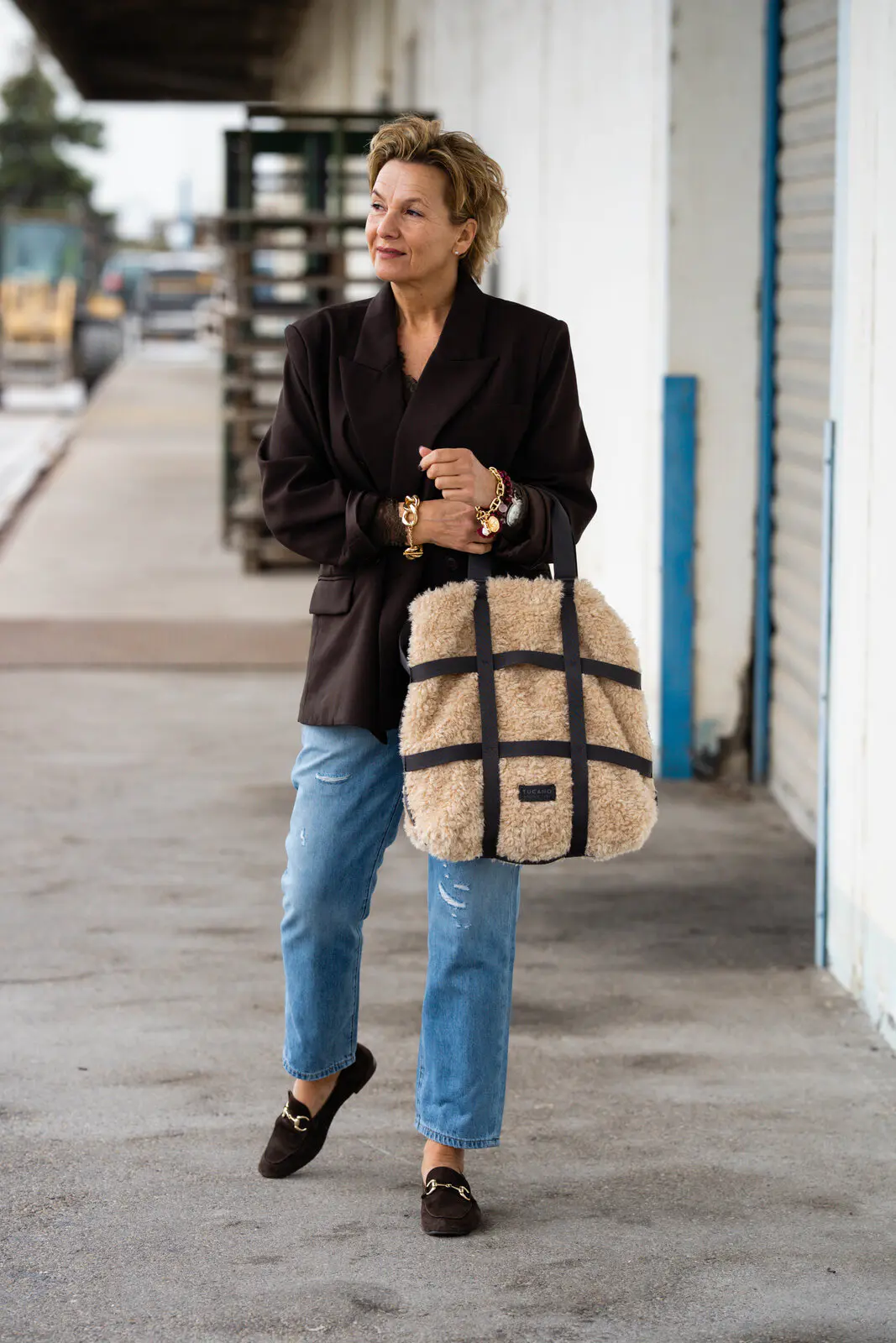 Die Tasche bietet flexible Tragemöglichkeiten: Sie verfügt über zwei stabile Henkel sowie einen abnehmbaren Schultergurt, der sich je nach Look und Anlass leicht anbringen oder entfernen lässt. Innen sorgt ein hochwertiges Innenfutter für ein angenehmes Handling, während das geräumige Hauptfach genügend Platz für deine täglichen Essentials bietet. Ein hochwertiges Labelpatch rundet das Design stilvoll ab und macht die Tasche zu einem besonderen Hingucker – modisch, vielseitig und alltagstauglich.