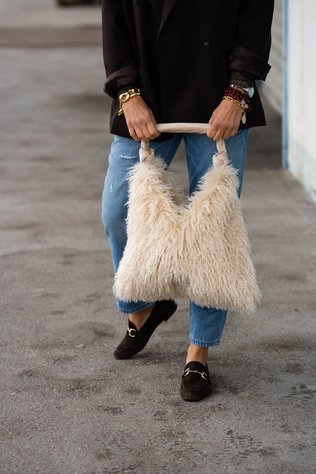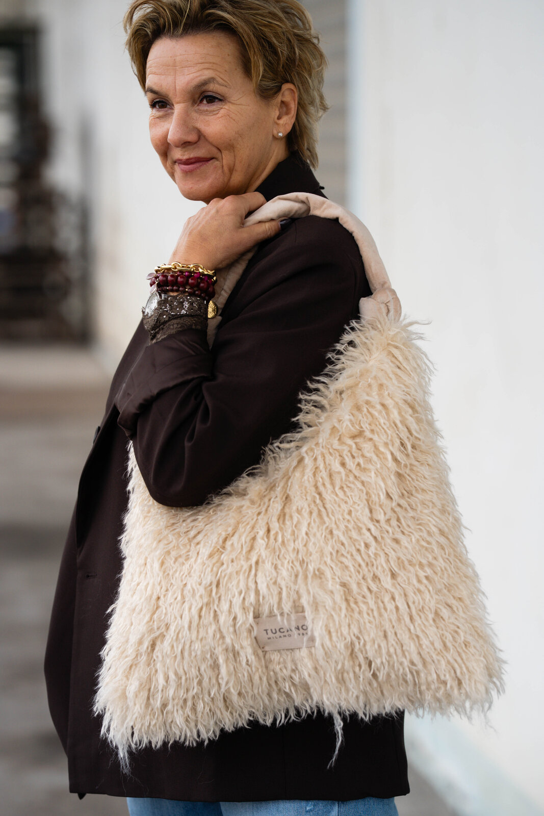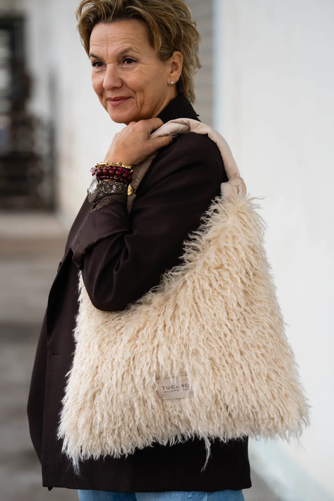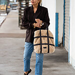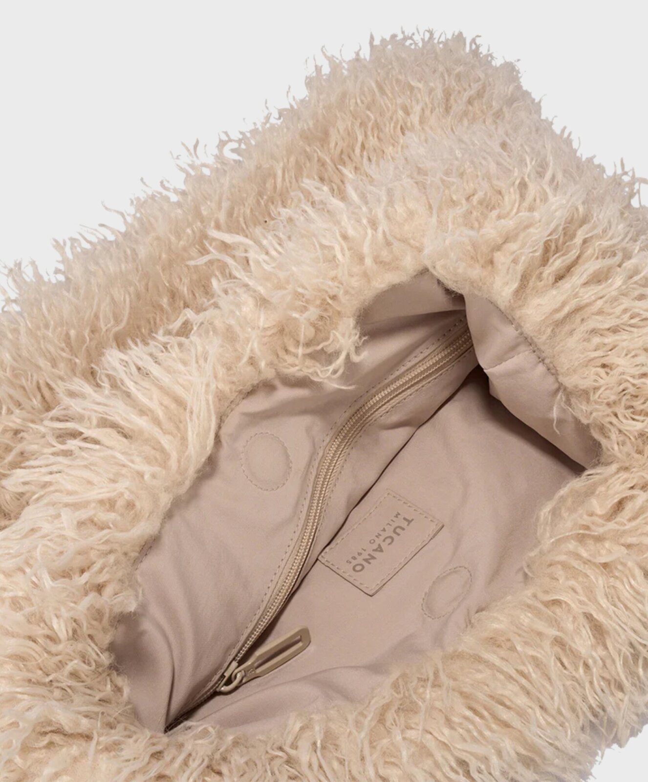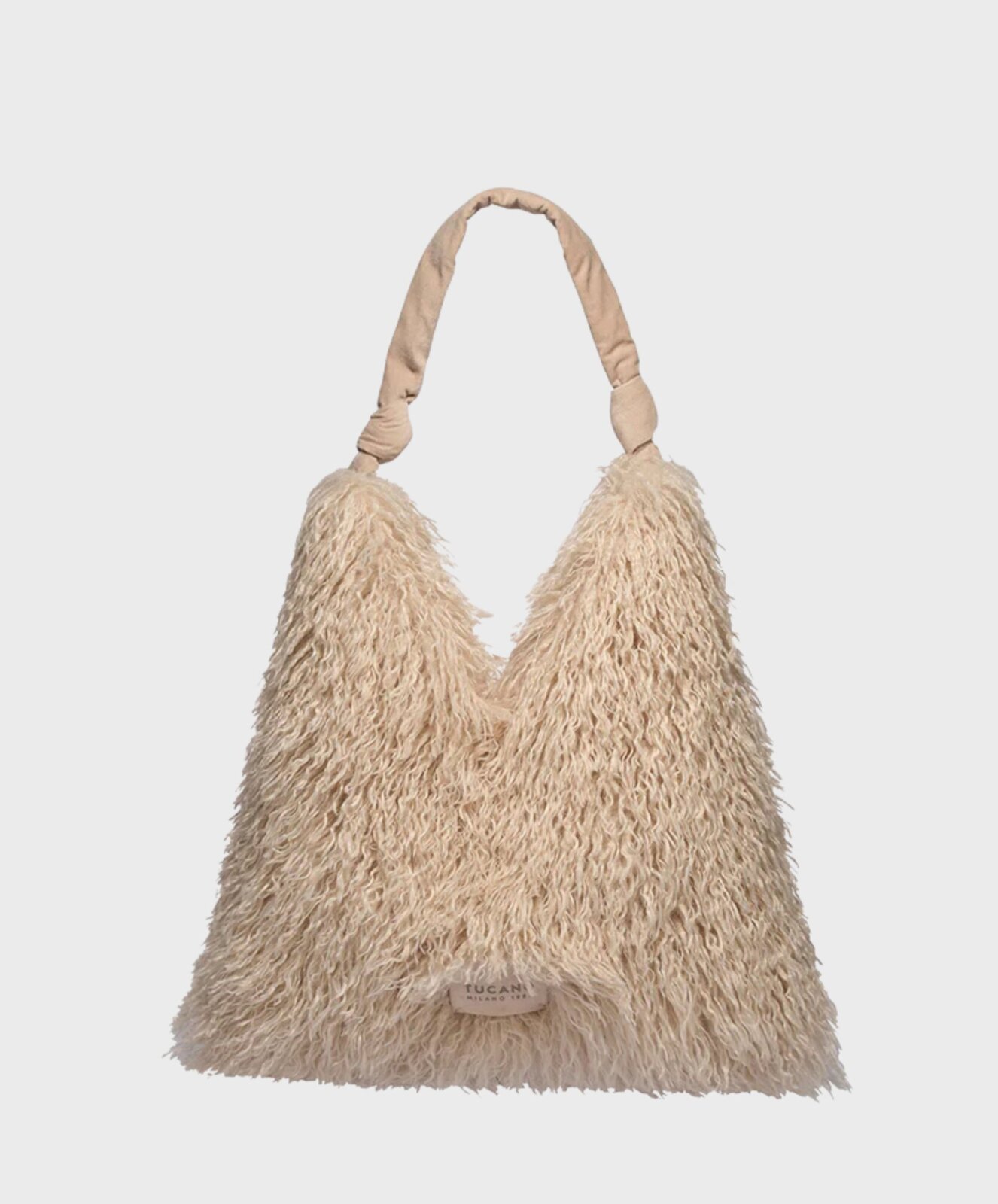 Ein dezentes Labelpatch rundet das Design ab und macht die Tasche zu einem besonderen Eyecatcher – kuschelig, chic und absolut alltagstauglich.