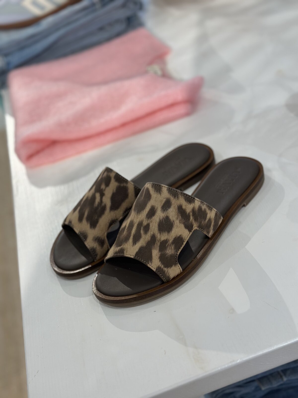 Setze ein modisches Statement mit den Slippers von VIA VAI im angesagten Leopardenprint. Der breite Riemen mit modernen Ausschnitten sorgt nicht nur für einen trendigen Look, sondern auch für einen optimalen Halt. Das weich gepolsterte Fußbett bietet dir maximalen Komfort – perfekt für den ganzen Tag. Hochwertiges Leder und ein angenehmes Lederfutter machen die Slippers besonders langlebig und bequem. Mit viel Liebe zum Detail handgefertigt in Portugal, vereinen die Leo Slippers Qualität, Stil und Tragekomfort auf höchstem Niveau.